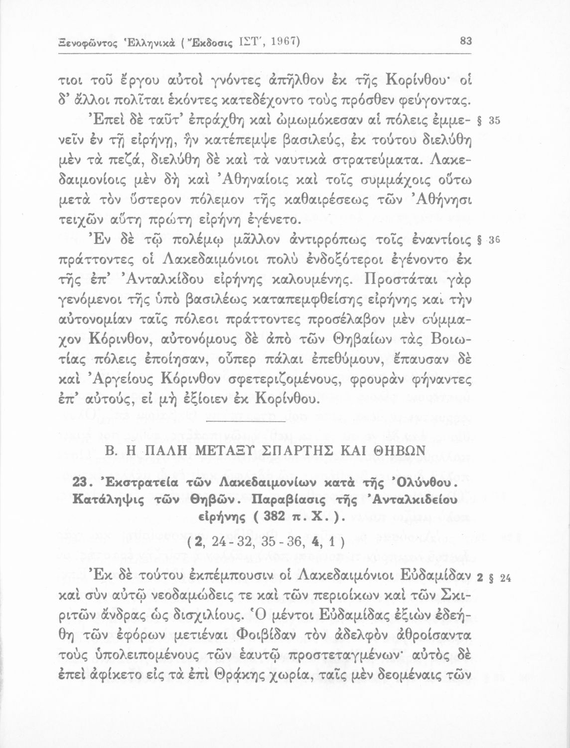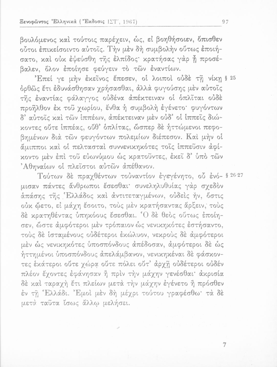 Σχολικό εγχειρίδιο Αρχαίων ελληνικών Α΄ Λυκείου που περιλαμβάνει αποσπάσματα από τα Ελληνικά του Ξενοφώντα, εισαγωγή στη ζωή και το έργο του, ερμηνευτικές σημειώσεις, τοπογραφικούς πίνακες και σχεδιαγράμματα μαχών.