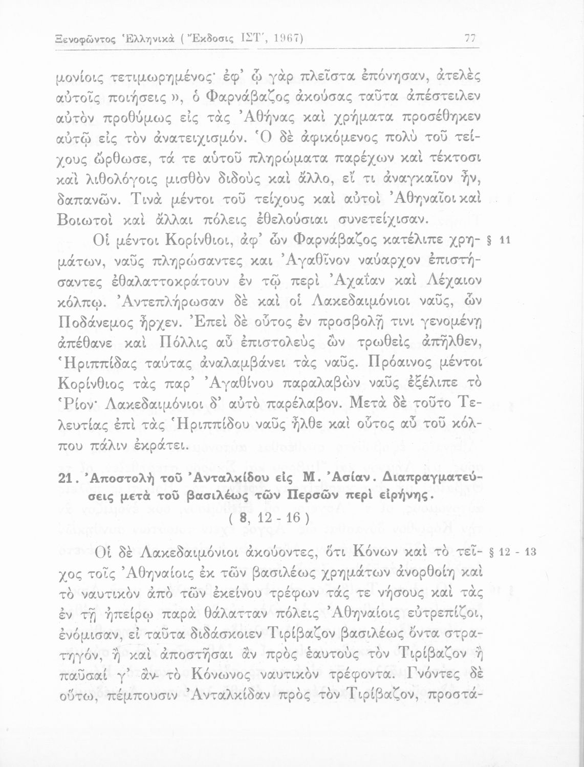 Σχολικό εγχειρίδιο Αρχαίων Ελληνικών το οποίο περιλαμβάνει το έργο του Ξενοφώντα 'Ελληνικά' συνοδευόμενο από εισαγωγικά σχόλια για τη ζωή και το έργο του καθώς και ερμηνευτικές και γραμματικές σημειώσεις.