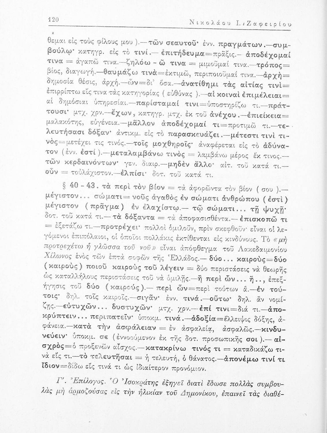 Λυσίας, Ισοκράτης, Κυριάκος Κοσμάς, Νικόλαος Ζαφειρίου (σχόλια)