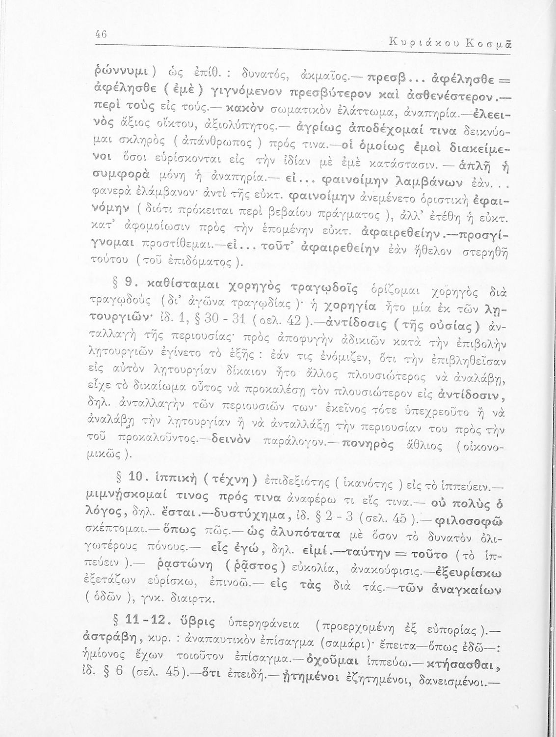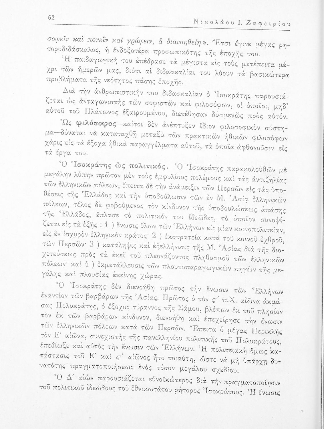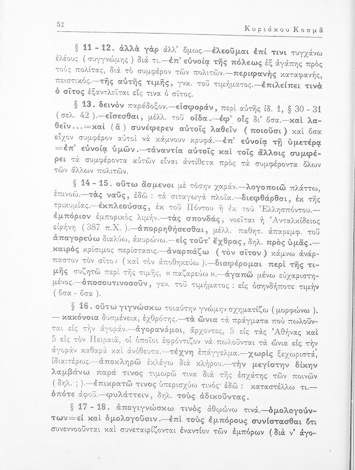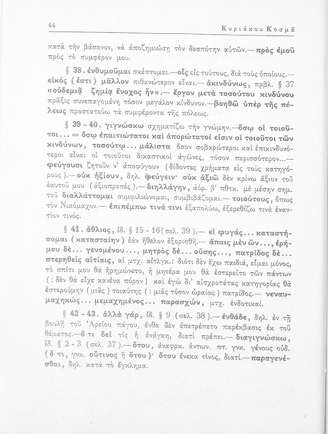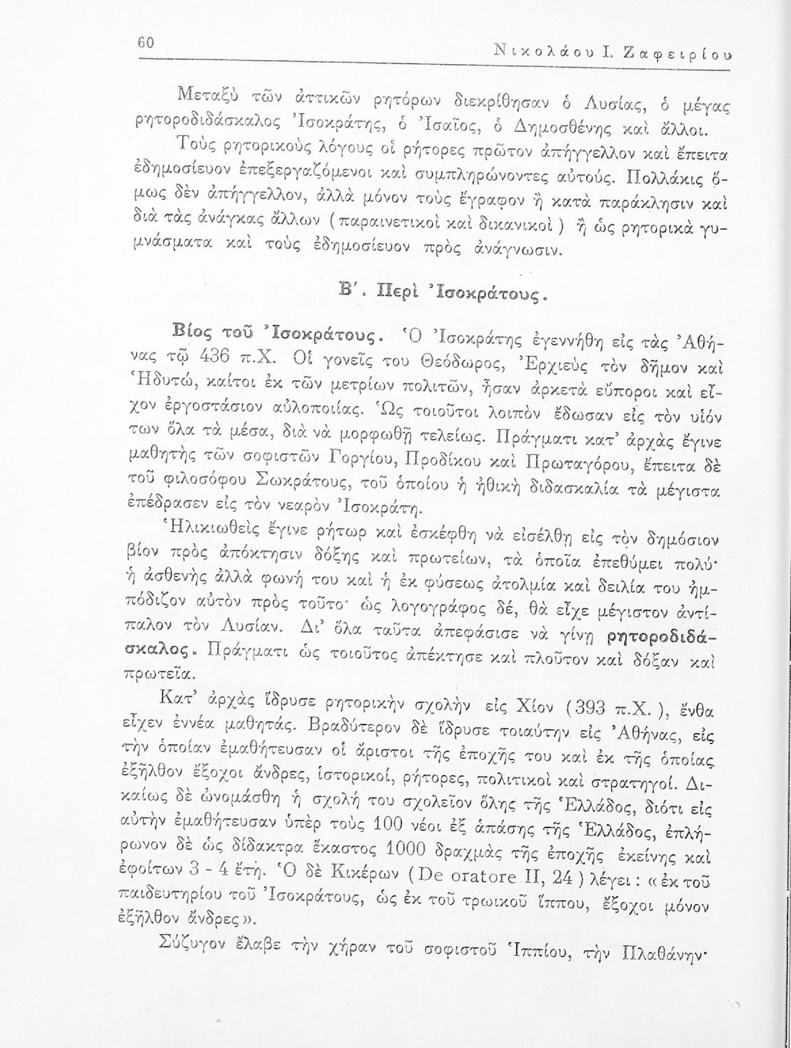 Σχολικό εγχειρίδιο Αρχαίων Ελληνικών που περιλαμβάνει τους Λόγους του Λυσία Περί του σηκού απολογία, Υπέρ του αδυνάτου, και Κατά των σιτοπωλών και του Ισοκράτη Προς Δημόνικον, Προς Νικοκλέα και Ευαγόρας, εισαγωγή στους Λόγους και ερμηνευτικά σχόλια. Φέρει το σύμβολο της δικτατορίας.