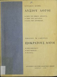 Συγγραφέας: Λυσίας, Ισοκράτης, Κυριάκος Κοσμάς, Νικόλαος Ζαφειρίου (σχόλια)