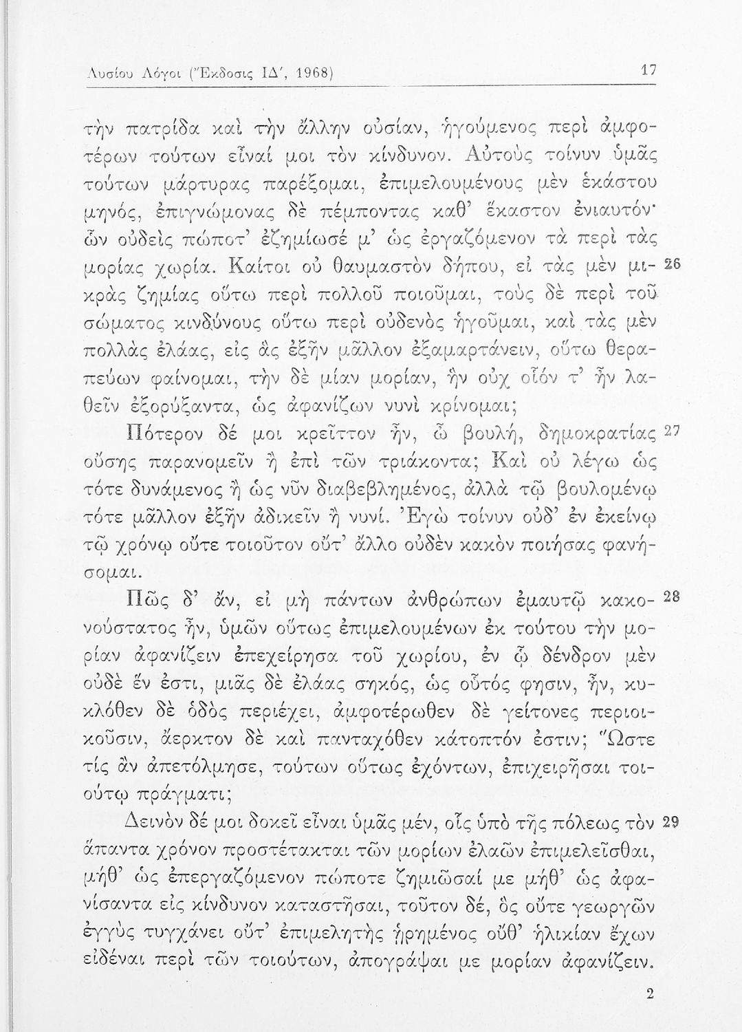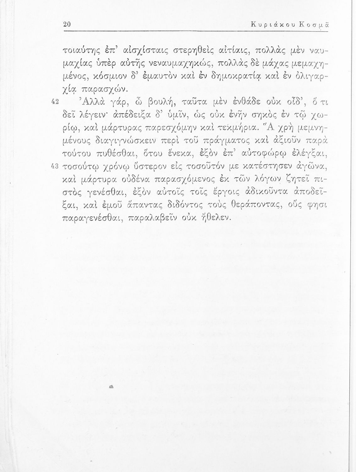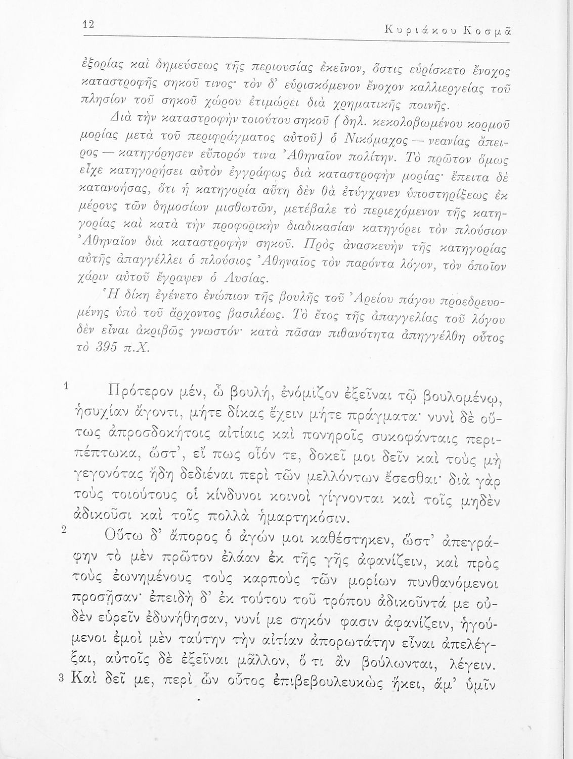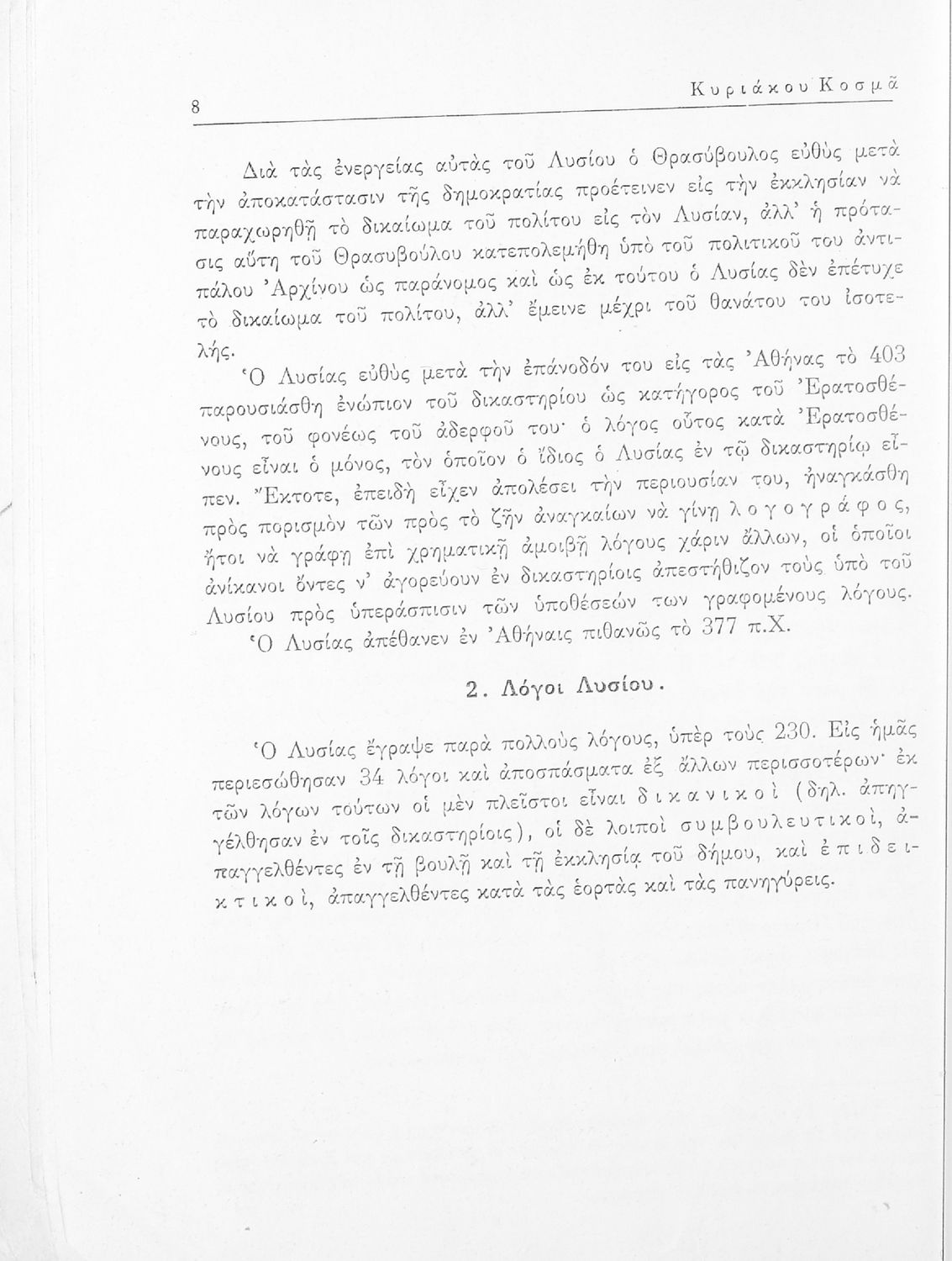 Λυσίας, Ισοκράτης, Κυριάκος Κοσμάς, Νικόλαος Ζαφειρίου (σχόλια)