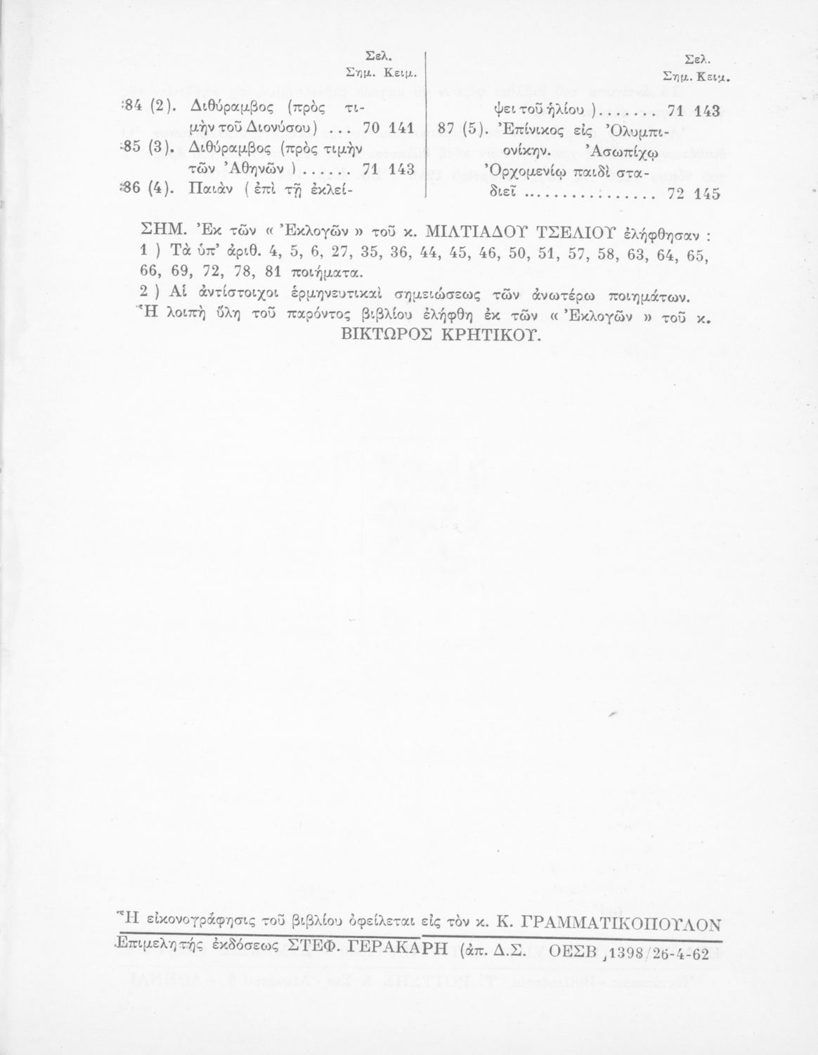 Συγγραφέας: Βίκτωρας Δ. Κρητικός, Μιλτιάδης Τσέλιος (σχόλια)