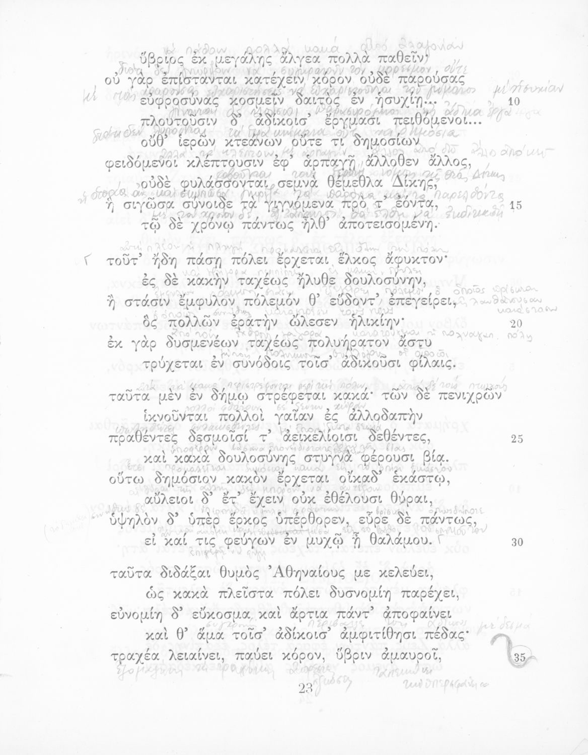 Σχολικό εγχειρίδιο Αρχαίων Ελληνικών Ε΄ Γυμνασίου που περιλαμβάνει αποσπάσματα από έργα αρχαίων Ελλήνων και χριστιανών ποιητών, και λεξιλόγιο