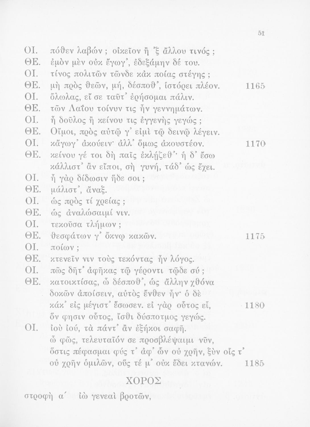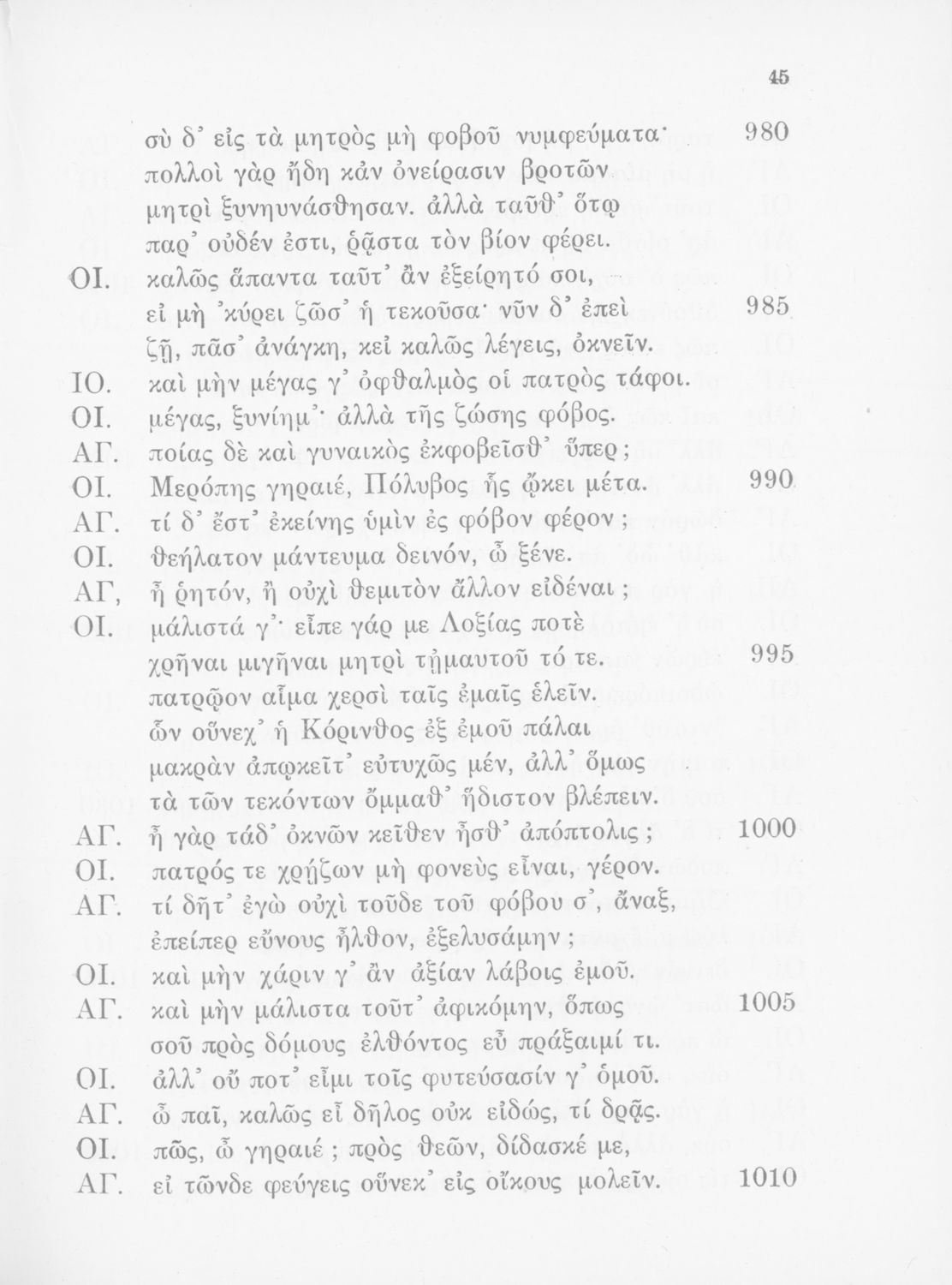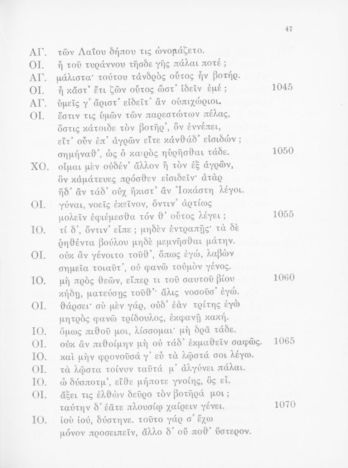 Σχολικό εγχειρίδιο του Γυμνασίου για το μάθημα των Αρχαίων Ελληνικών που περιέχει την τραγωδία του Σοφοκλή Οιδίπους Τύραννος, ερμηνευτικά και πραγματολογικά σχόλια και λεξιλογικές παρατηρήσεις.