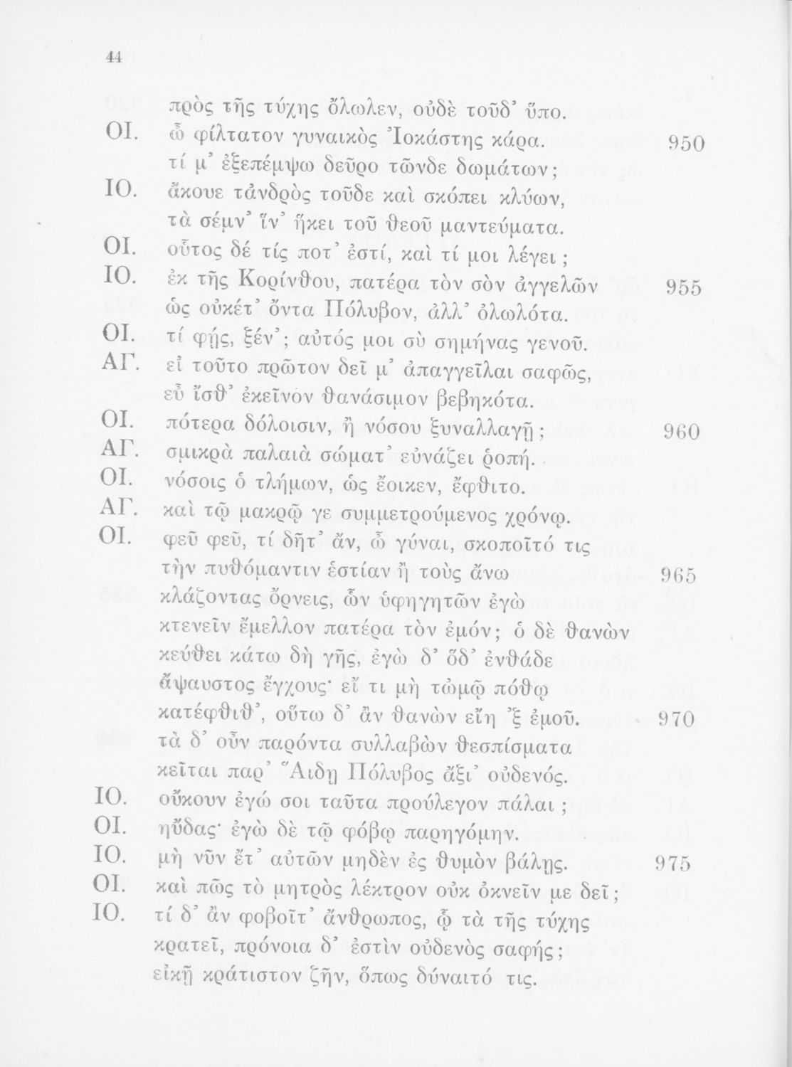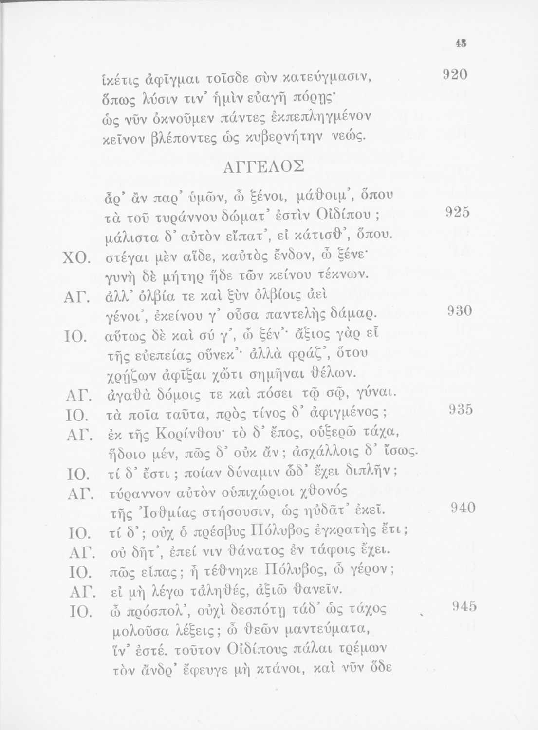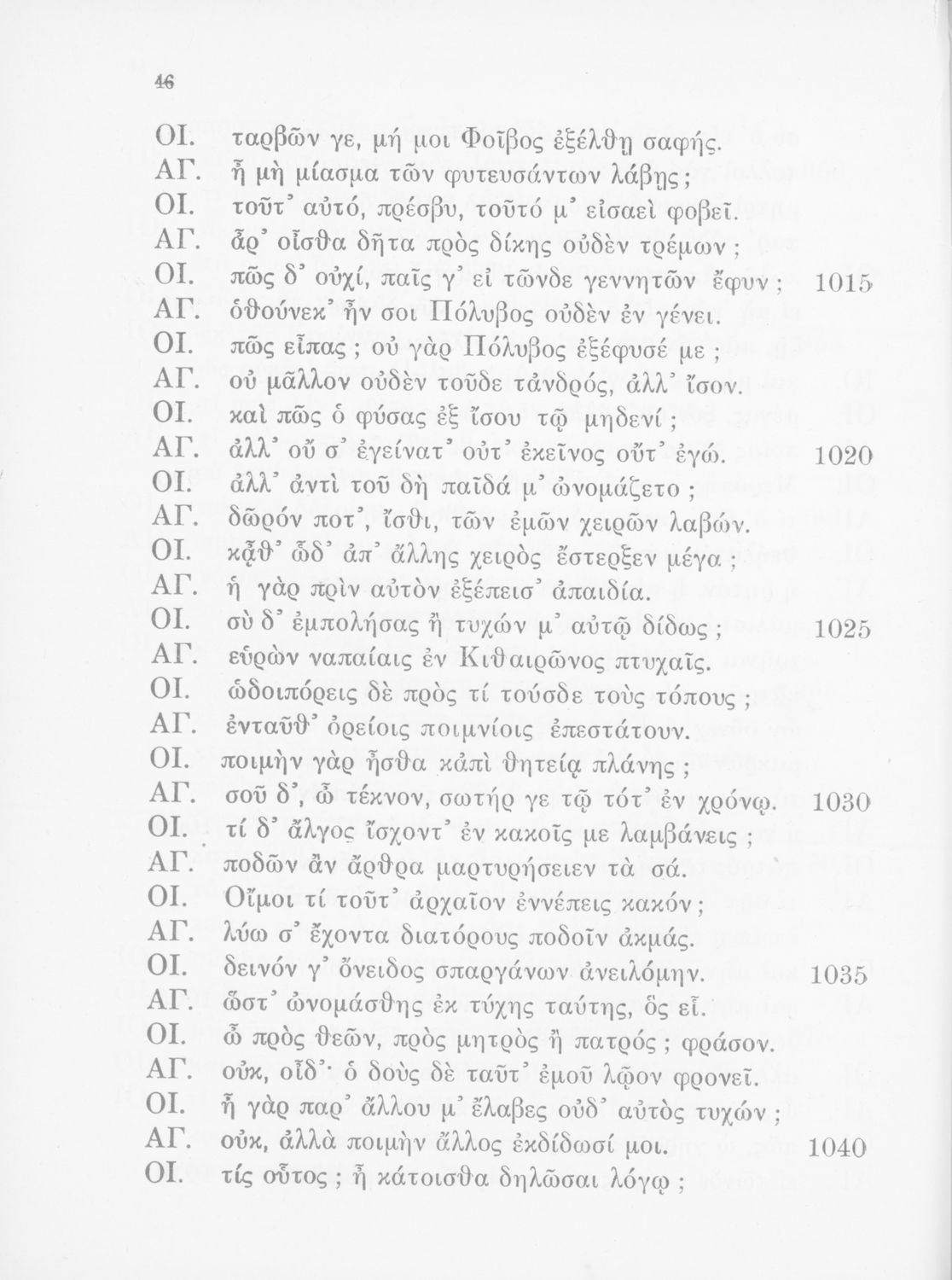 Σχολικό εγχειρίδιο του Γυμνασίου για το μάθημα των Αρχαίων Ελληνικών που περιέχει την τραγωδία του Σοφοκλή Οιδίπους Τύραννος, ερμηνευτικά και πραγματολογικά σχόλια και λεξιλογικές παρατηρήσεις.