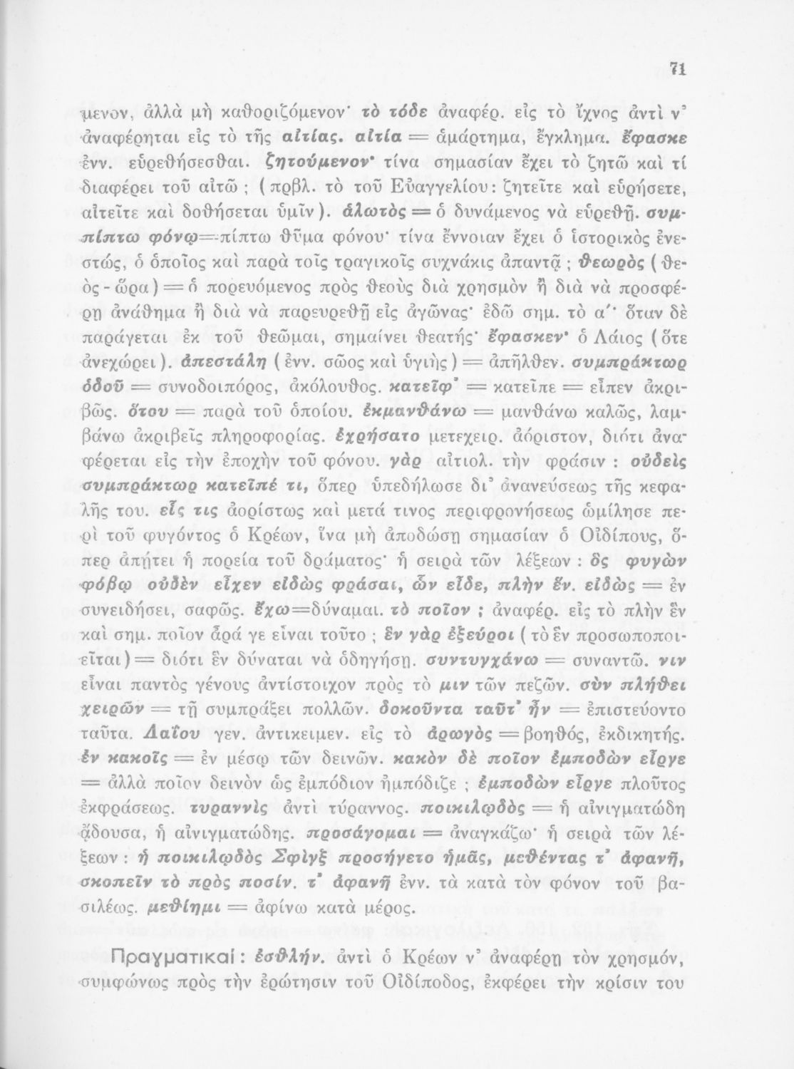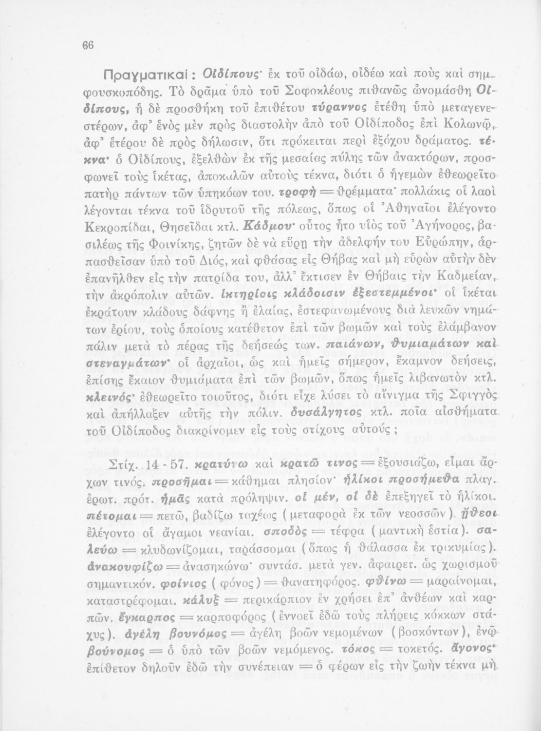Σχολικό εγχειρίδιο του Γυμνασίου για το μάθημα των Αρχαίων Ελληνικών που περιέχει την τραγωδία του Σοφοκλή Οιδίπους Τύραννος, ερμηνευτικά και πραγματολογικά σχόλια και λεξιλογικές παρατηρήσεις.
