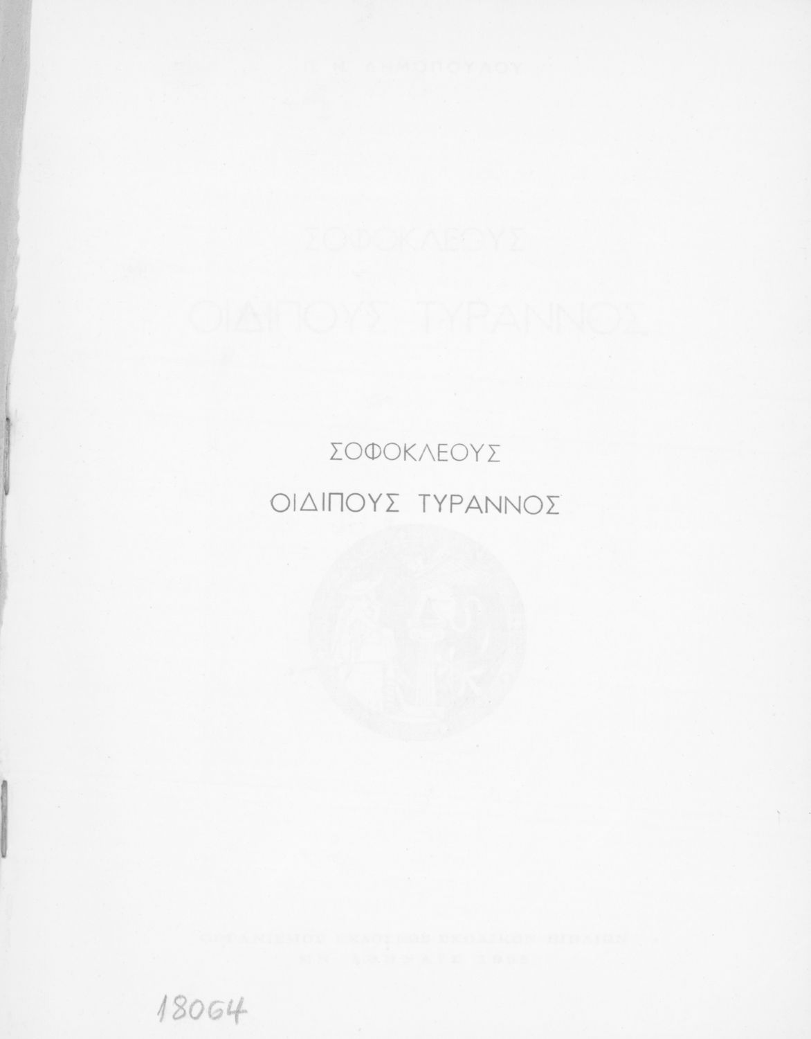 Τίτλος: Σοφοκλέους Οιδίπους Τύραννος