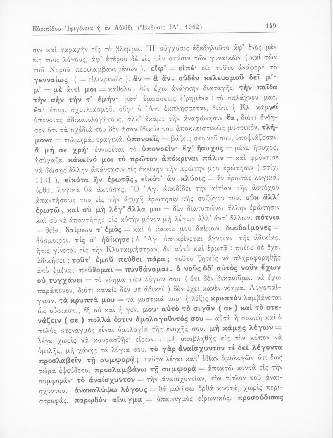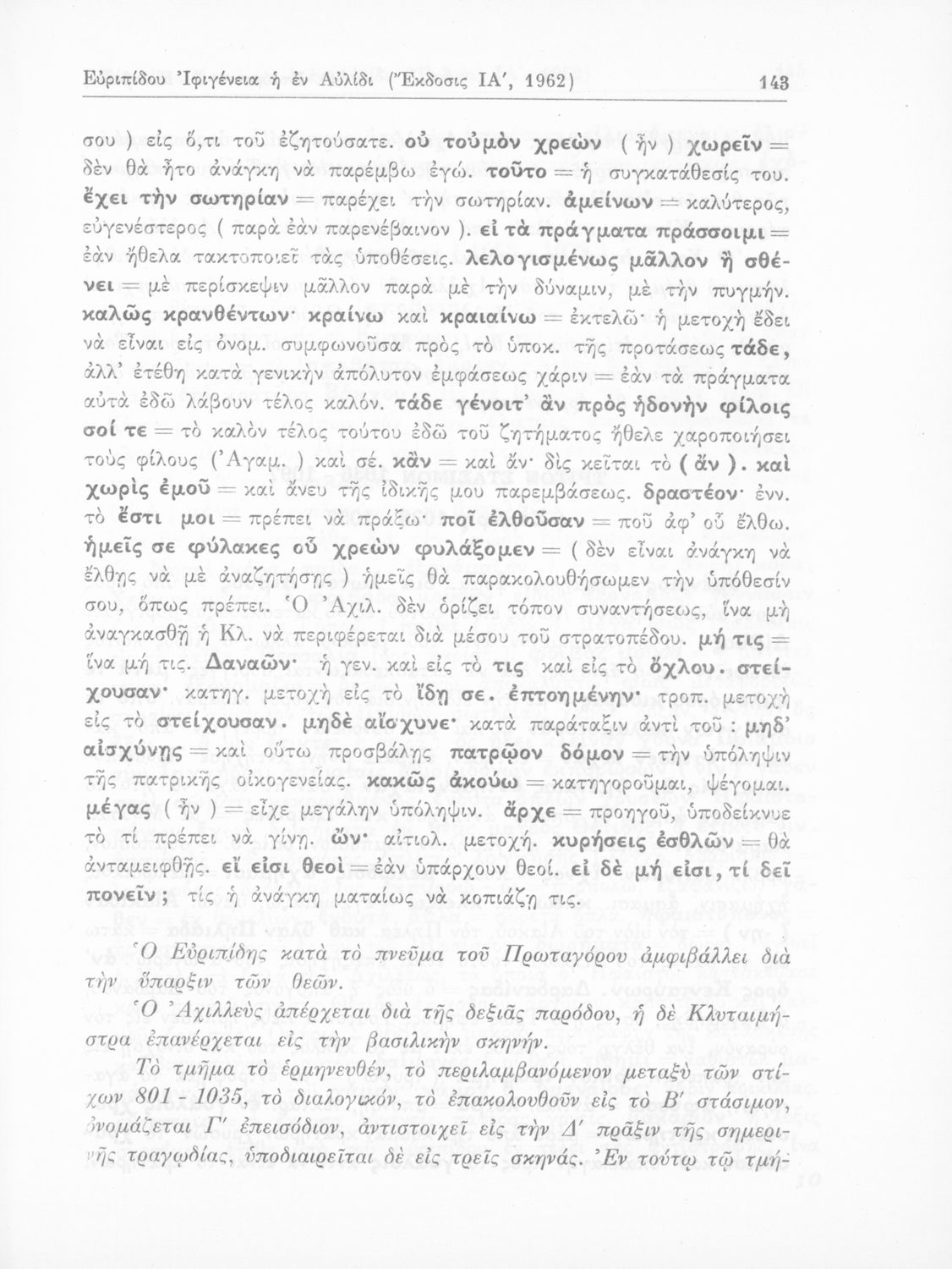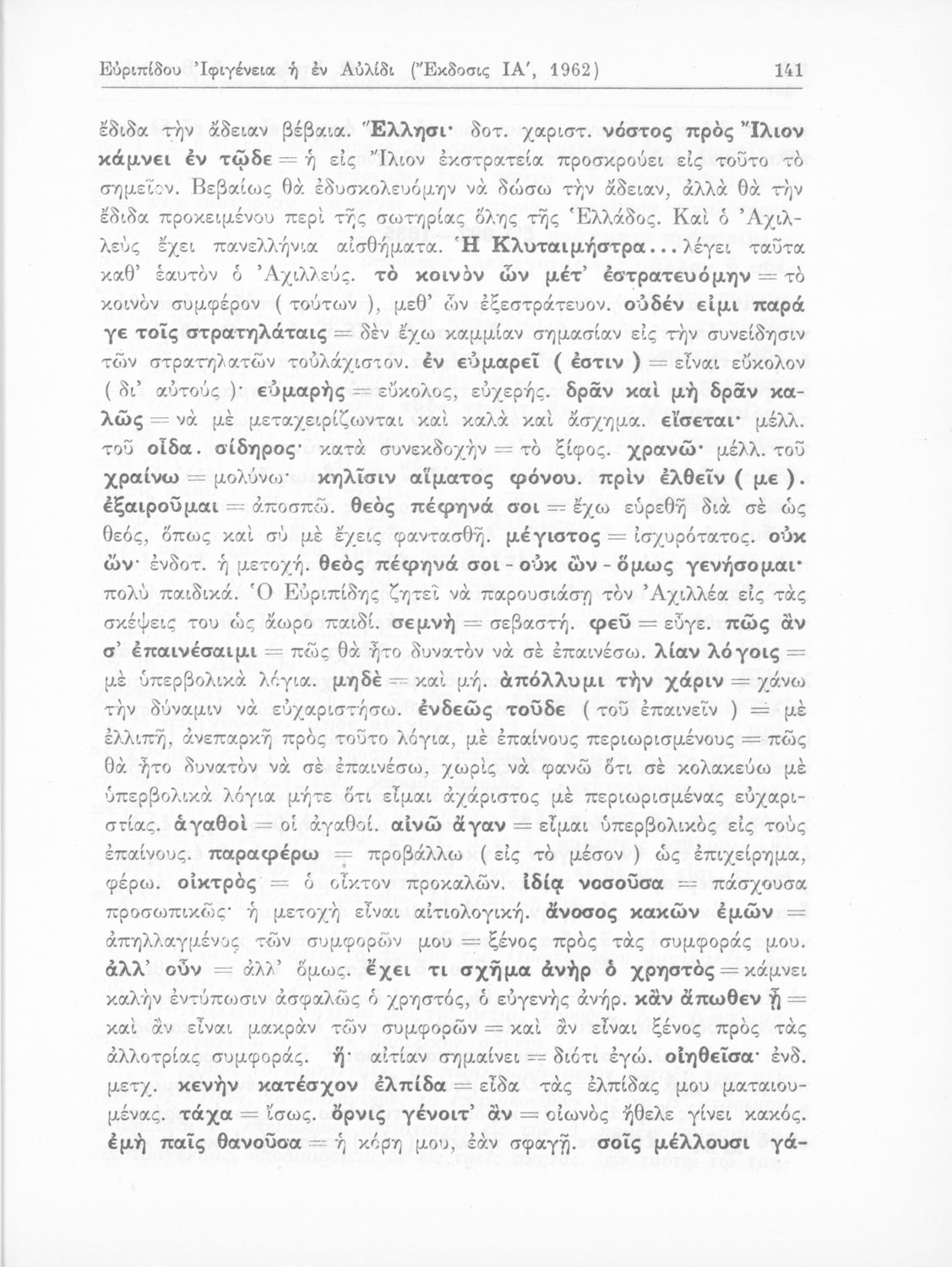 Σχολικό εγχειρίδιο Αρχαίων Ελληνικών Γυμνασίου που περιλαμβάνει αποσπάσματα από τις τραγωδίες του Ευριπίδη Ιφιγένεια η εν Αυλίδι και Ιφιγένεια η εν Ταύροις, ερμηνευτικά και πραγματολογικά σχόλια και λεξιλογικές παρατηρήσεις.