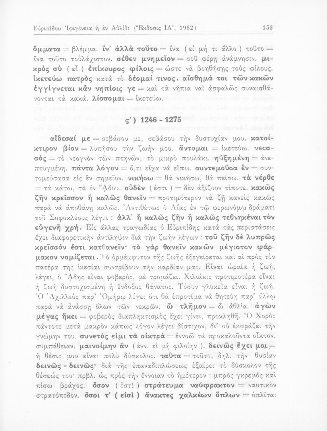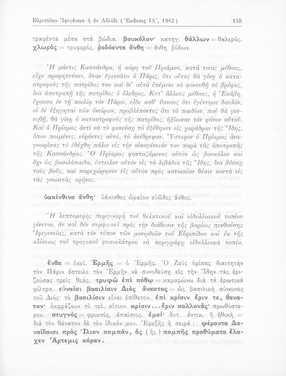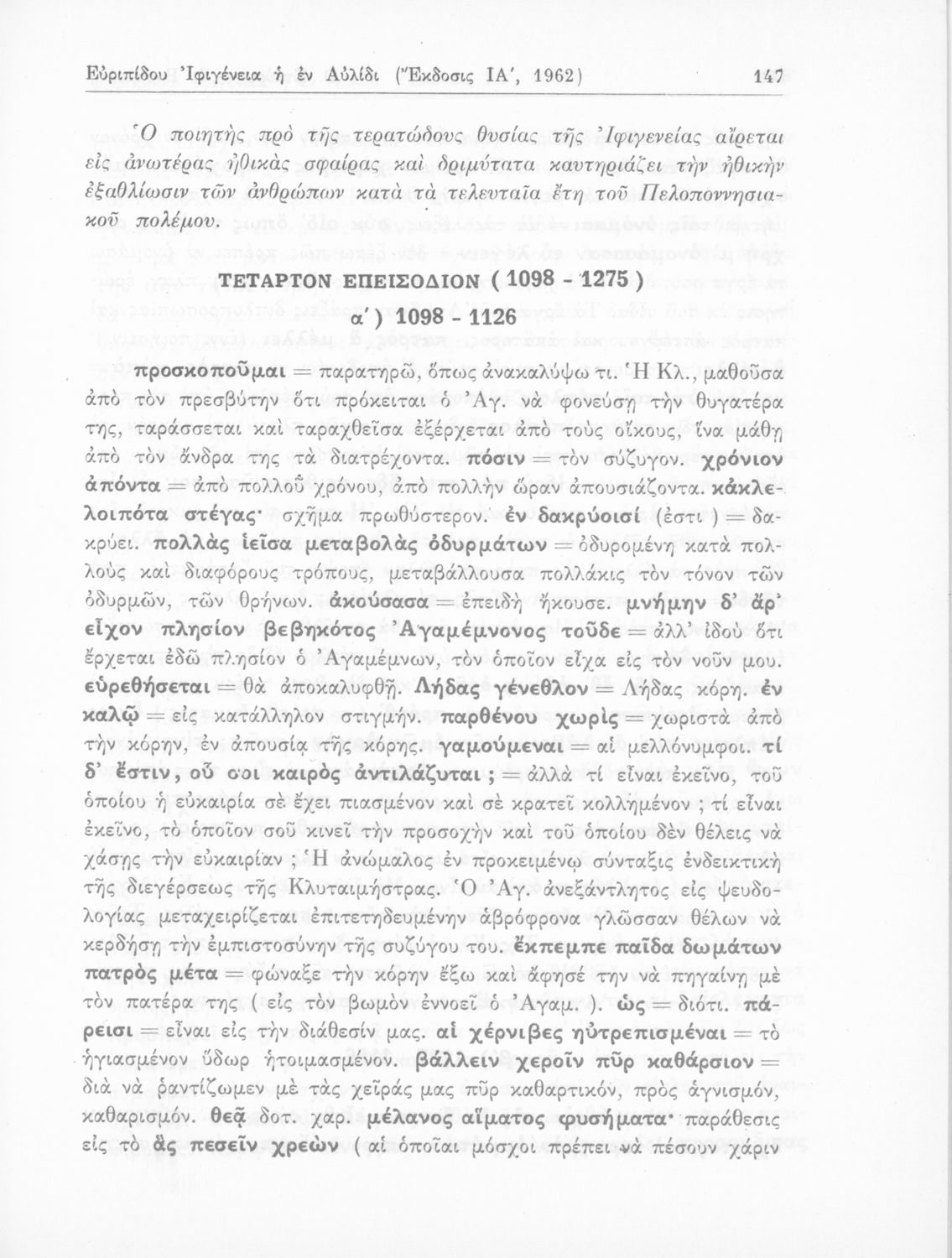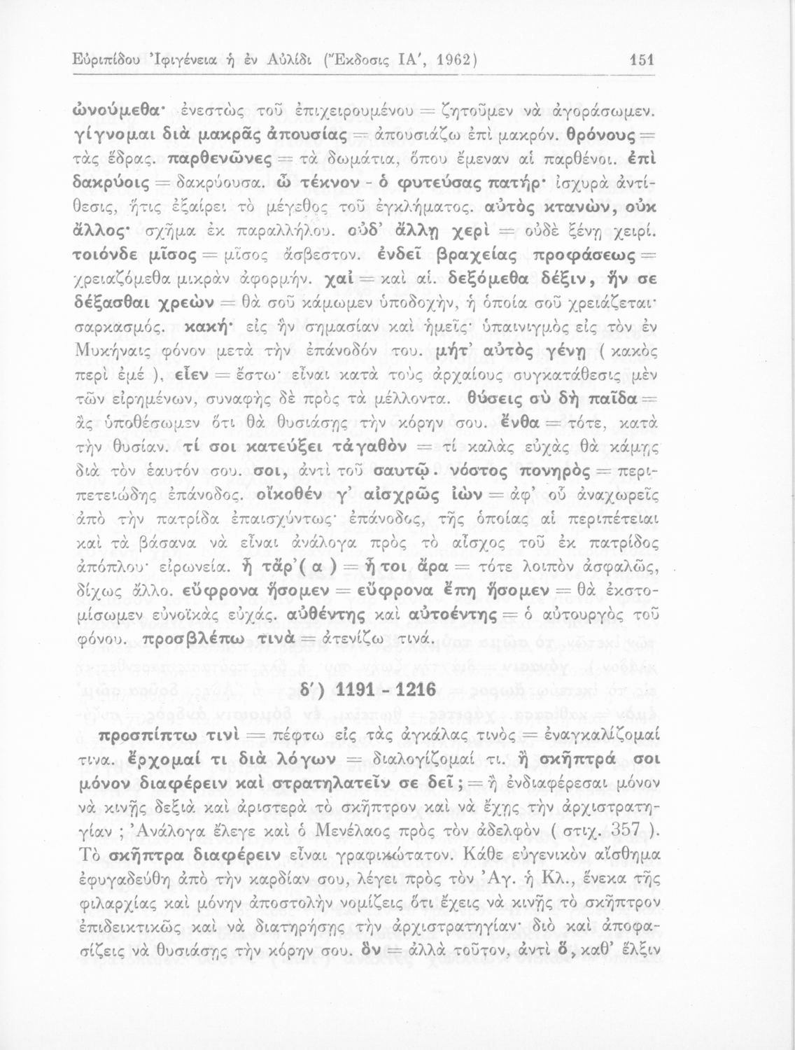 Σχολικό εγχειρίδιο Αρχαίων Ελληνικών Γυμνασίου που περιλαμβάνει αποσπάσματα από τις τραγωδίες του Ευριπίδη Ιφιγένεια η εν Αυλίδι και Ιφιγένεια η εν Ταύροις, ερμηνευτικά και πραγματολογικά σχόλια και λεξιλογικές παρατηρήσεις.
