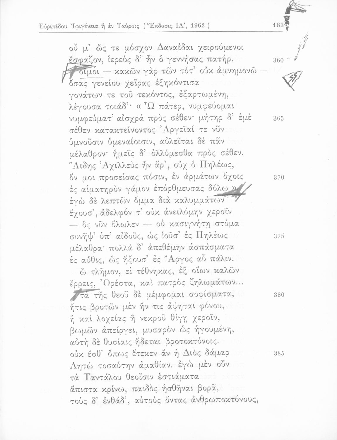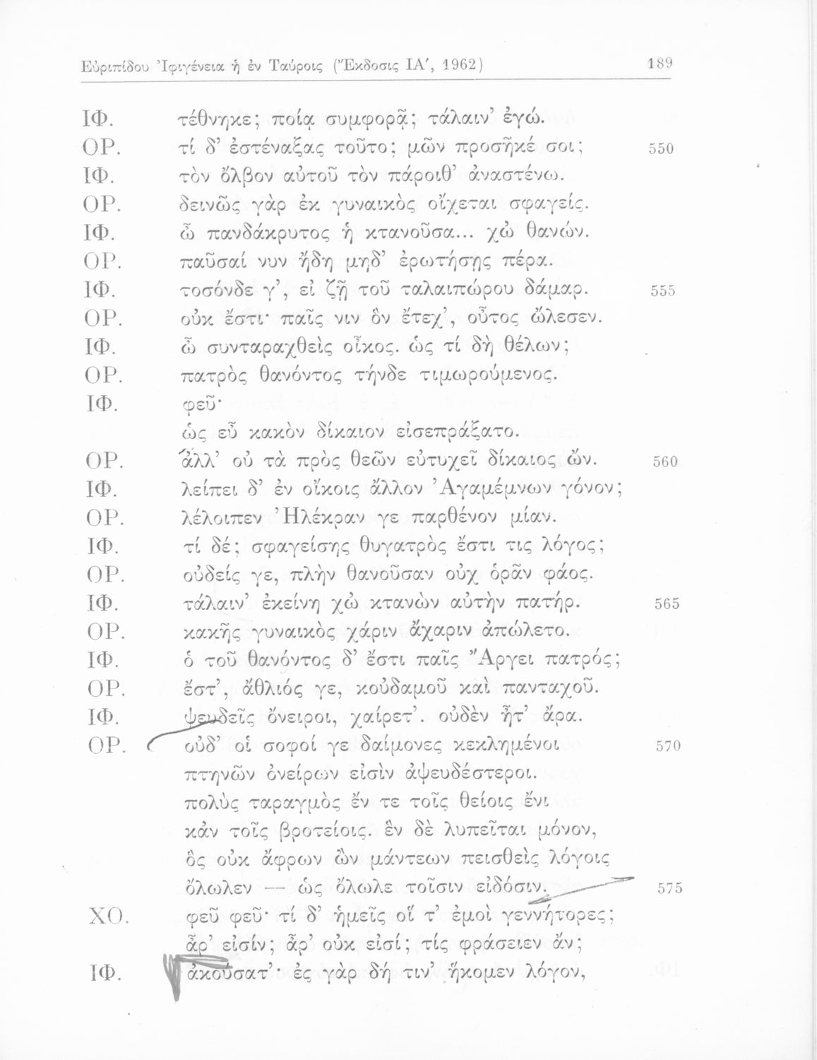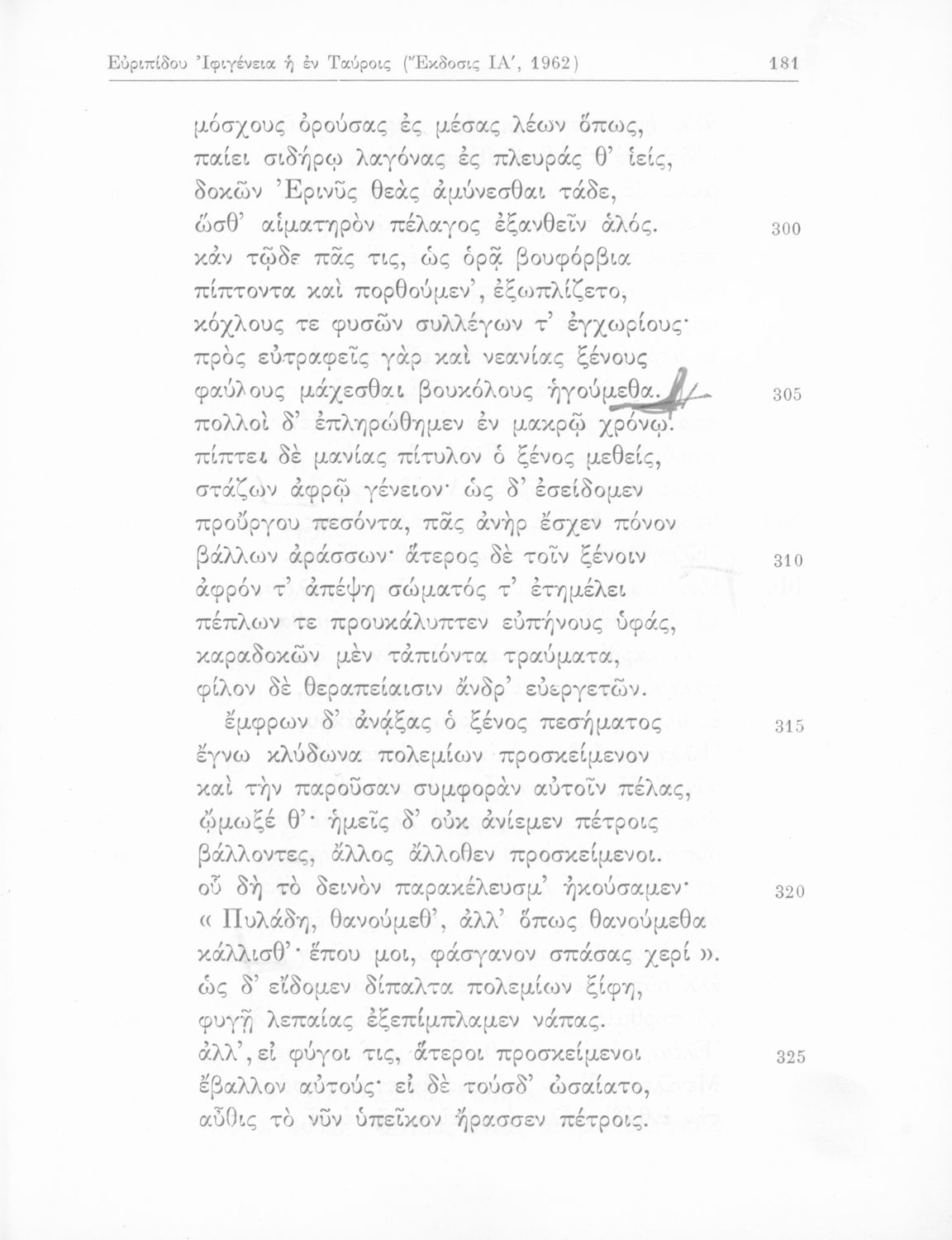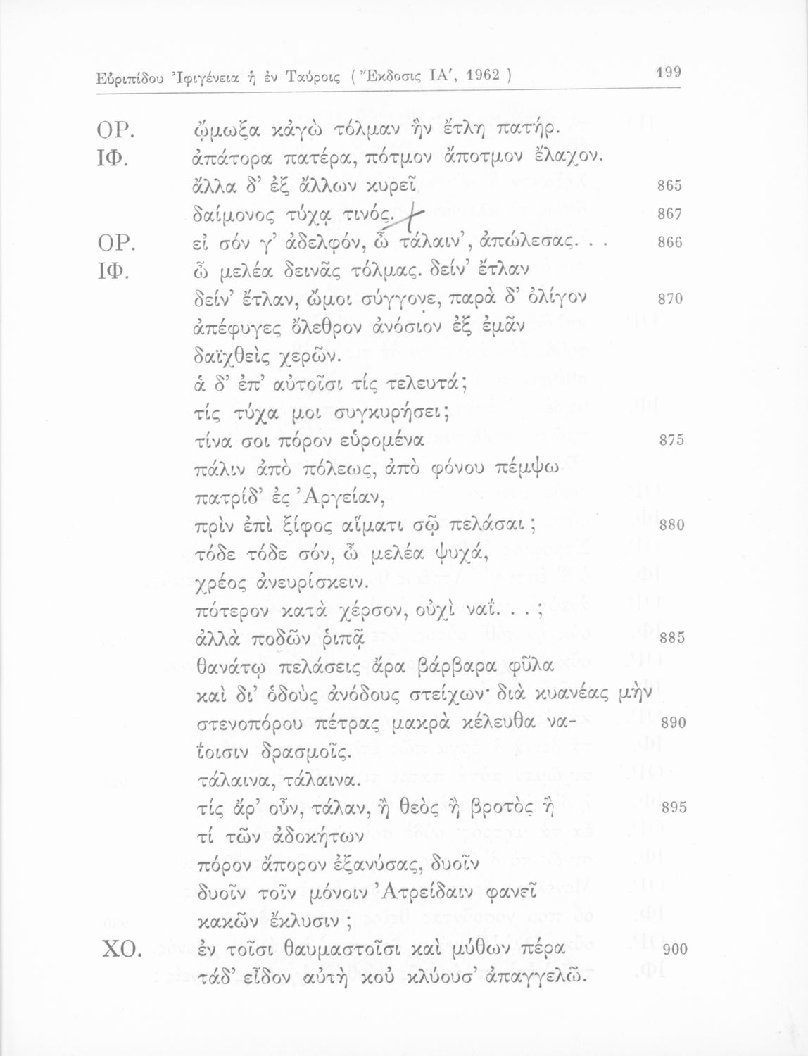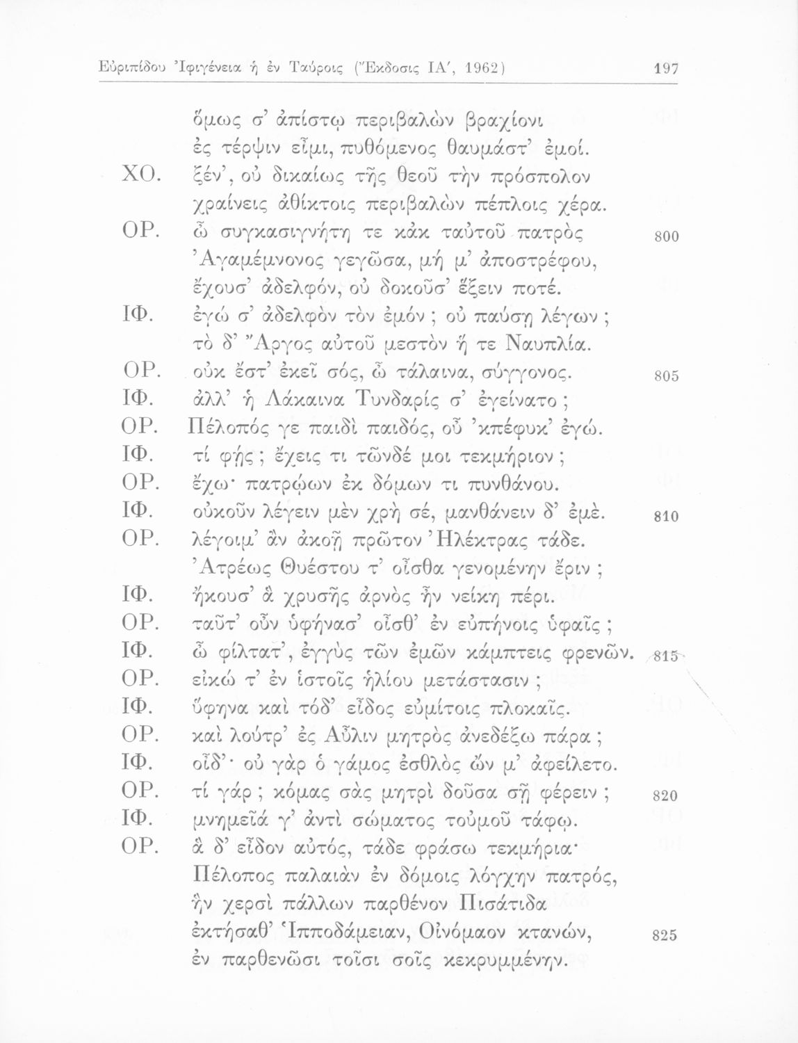 Σχολικό εγχειρίδιο Αρχαίων Ελληνικών Γυμνασίου που περιλαμβάνει αποσπάσματα από τις τραγωδίες του Ευριπίδη Ιφιγένεια η εν Αυλίδι και Ιφιγένεια η εν Ταύροις, ερμηνευτικά και πραγματολογικά σχόλια και λεξιλογικές παρατηρήσεις.