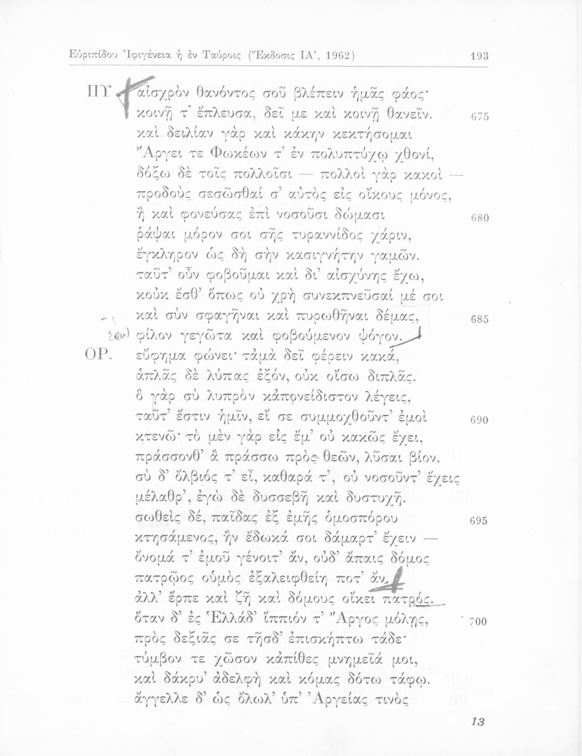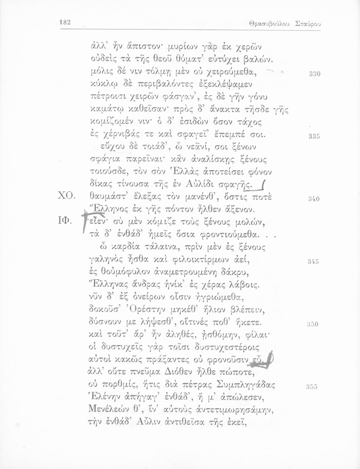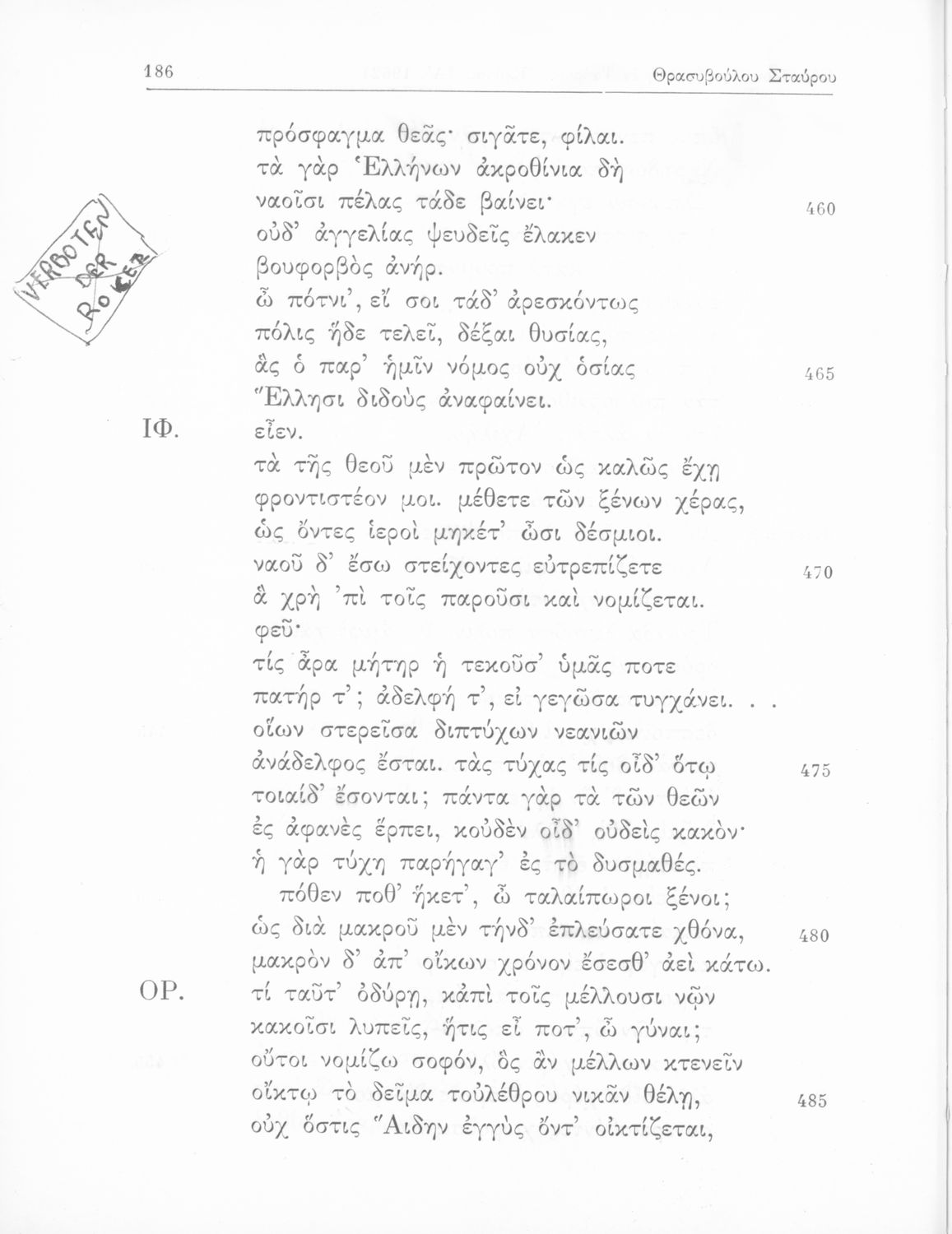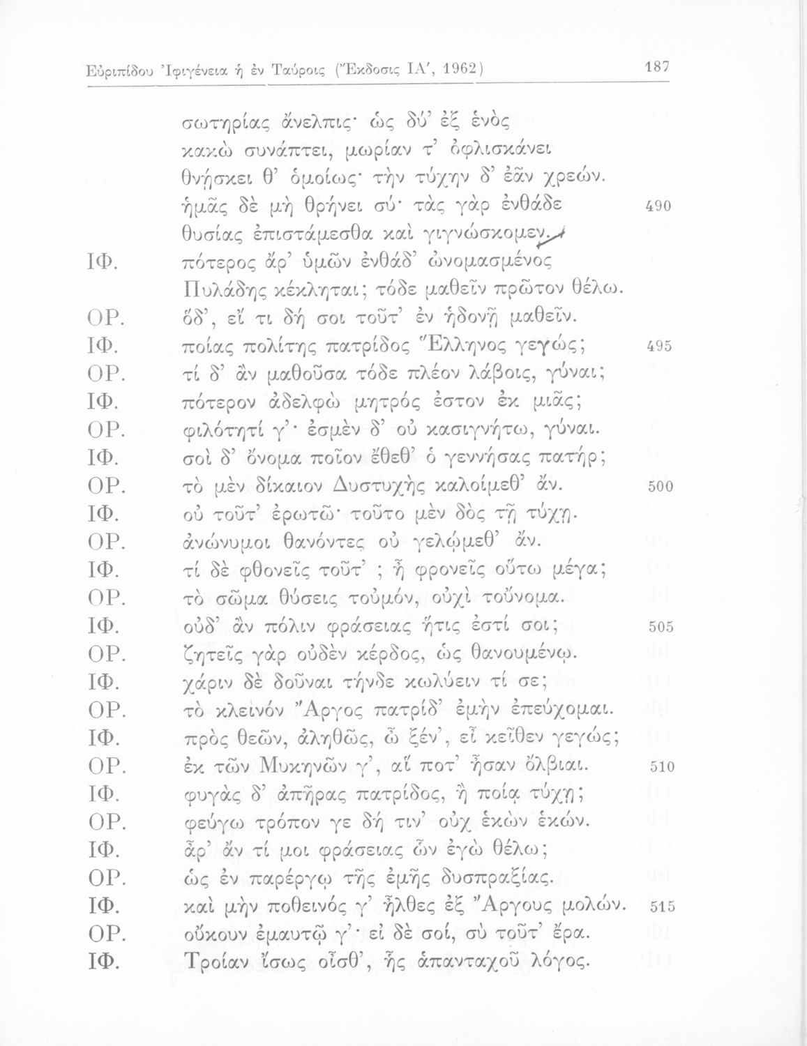 LDR 01476 2200217 4500 035 ## _a01-18065 040 ## _aΙνστιτούτο Εκπαιδευτικής Πολιτικής 041 ## _ael 100 ## _aΕυριπίδης _aΘ. Σταύρου _aΦ Βουσβούνης (σχόλια) 110 ## _a18065 245 0# _aΕυριπίδου Τραγωδίαι Ιφιγένεια η εν Αυλίδι Ιφιγένεια η εν Ταύροις δια την Ε΄ τάξιν των Γυμνασίων 250 ## _a11η Έκδοση 260 ## _aΑθήνα _bΟργανισμός Εκδόσεως Σχολικών Βιβλίων _c1962 300 ## _a284 _bΣκίτσα, σχεδιαγράμματα και χάρτης (ασπρόμαυρα) 520 ## _aΣχολικό εγχειρίδιο Αρχαίων Ελληνικών Γυμνασίου που περιλαμβάνει αποσπάσματα από τις τραγωδίες του Ευριπίδη Ιφιγένεια η εν Αυλίδι και Ιφιγένεια η εν Ταύροις, ερμηνευτικά και πραγματολογικά σχόλια και λεξιλογικές παρατηρήσεις. 521 ## _aΓυμνάσιο 522 ## _aΕλλάδα 546 ## _aΑπλή καθαρεύουσα 563 ## _aΣκληρό Εξώφυλλο 583 ## _a1112/23-10-1962 _c1962 650 #4 _aΑγαμέμνονας _aΔράμα _aΘυσία _aΙφιγένεια _aΚάθαρση _aΣτάσιμο _aΤραγωδία