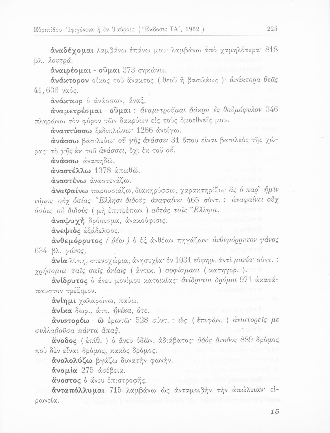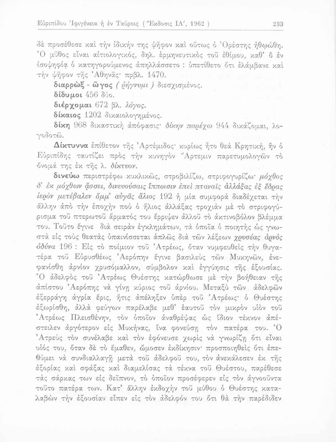 Σχολικό εγχειρίδιο Αρχαίων Ελληνικών Ε΄ Γυμνασίου που περιέχει αποσπάσματα από την τραγωδία του Ευριπίδη Ιφιγένεια η εν Ταύροις, ερμηνευτικά και πραγματολογικά σχόλια και λεξιλογικές παρατηρήσεις.