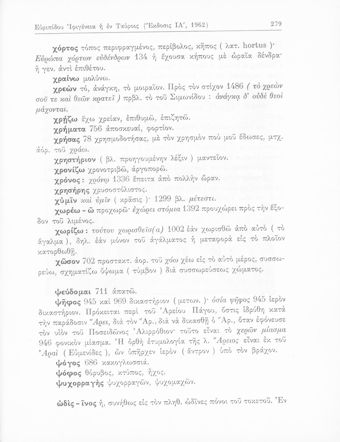 Σχολικό εγχειρίδιο Αρχαίων Ελληνικών Ε΄ Γυμνασίου που περιέχει αποσπάσματα από την τραγωδία του Ευριπίδη Ιφιγένεια η εν Ταύροις, ερμηνευτικά και πραγματολογικά σχόλια και λεξιλογικές παρατηρήσεις.