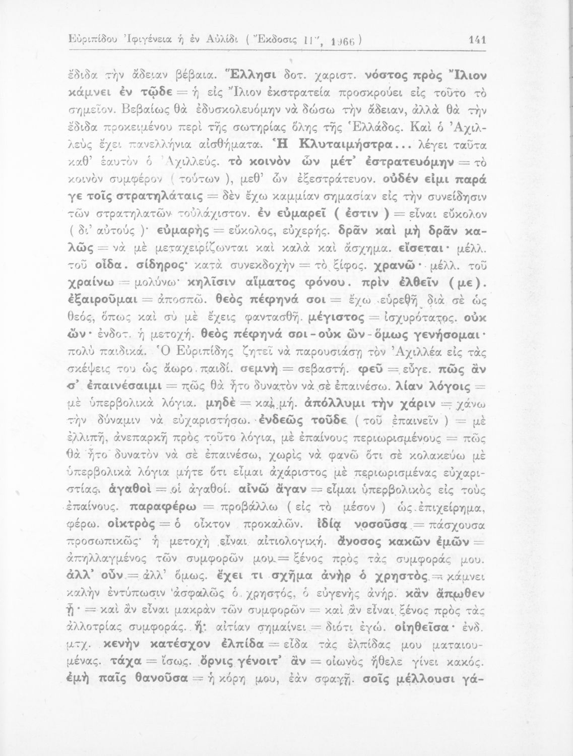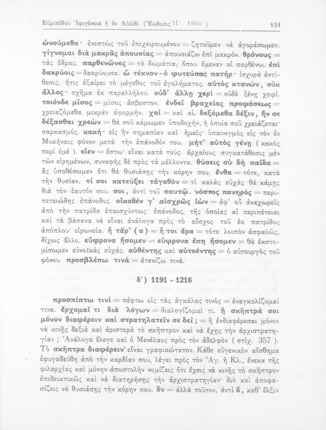 Σχολικό εγχειρίδιο Αρχαίων Ελληνικών Β΄ Λυκείου που περιέχει εισαγωγή στο αρχαίο δράμα και στη ζωή και το έργο του Ευριπίδη, αποσπάσματα από την Ιφιγένεια η εν Αυλίδι και την Ιφιγένεια η εν Ταύροις και ερμηνευτικά σχόλια.