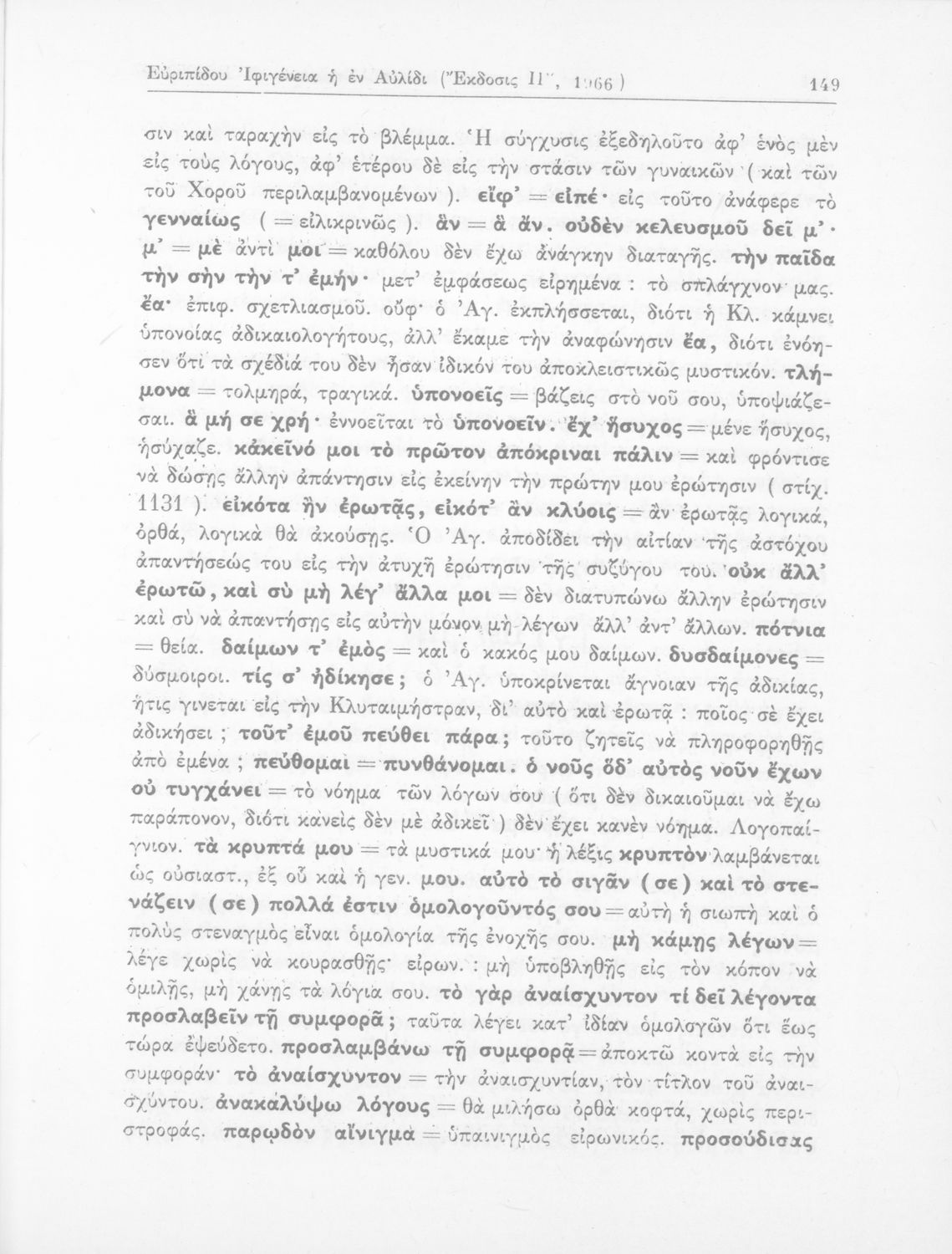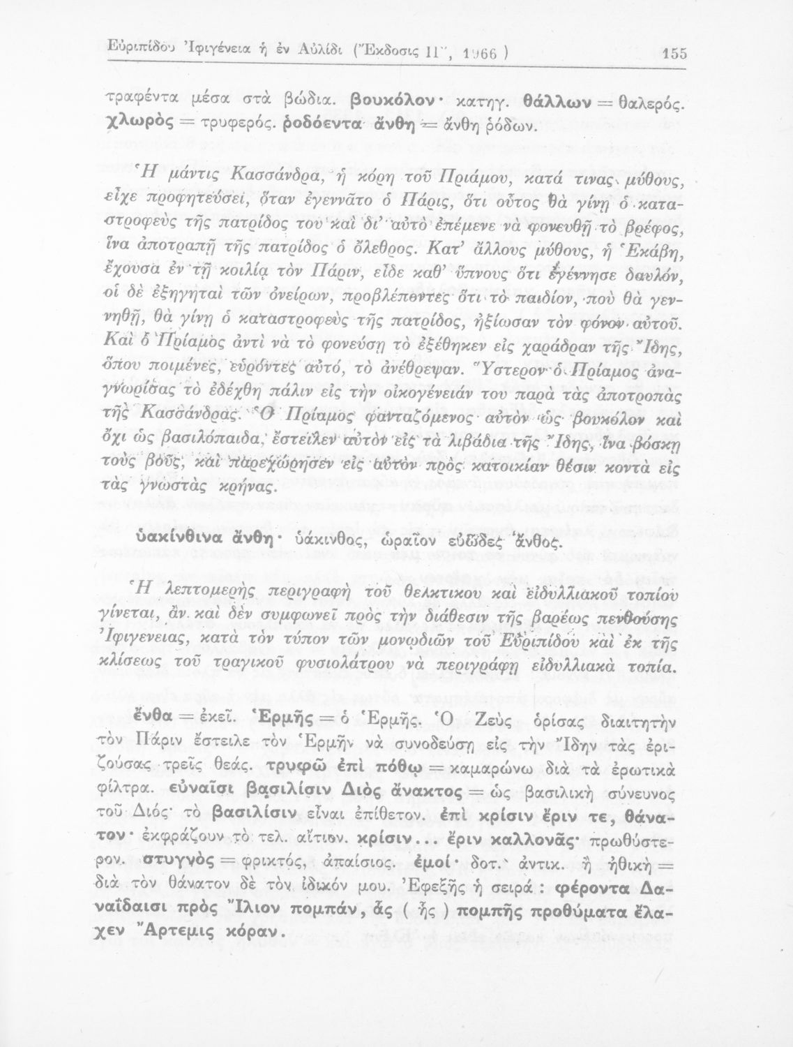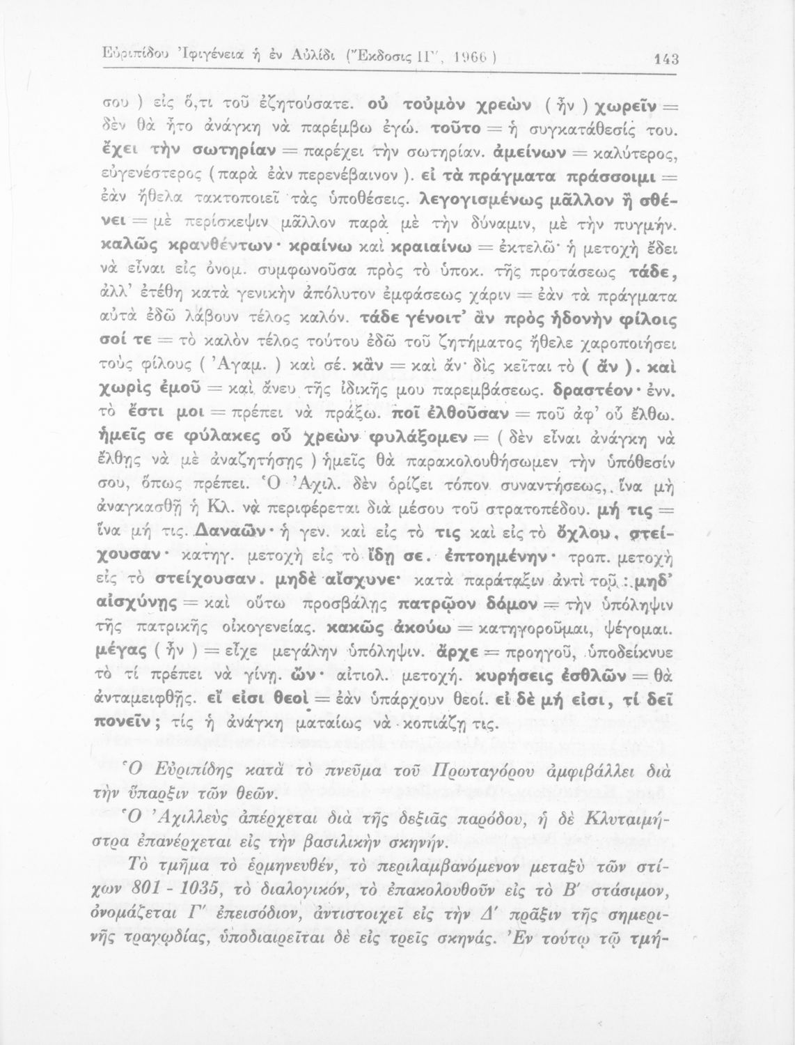 Σχολικό εγχειρίδιο Αρχαίων Ελληνικών Γυμνασίου που περιλαμβάνει αποσπάσματα τις τραγωδίες του Ευριπίδη Ιφιγένεια η εν Αυλίδι και Ιφιγένεια η εν Ταύροις, ερμηνευτικά και πραγματολογικά σχόλια και λεξιλογικές ...