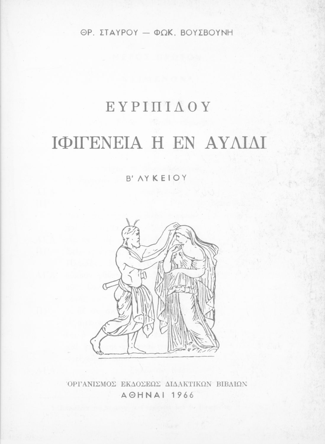 Σχολικό εγχειρίδιο Αρχαίων Ελληνικών που περιέχει εισαγωγή στο αρχαίο δράμα και στη ζωή και το έργο του Ευριπίδη, αποσπάσματα από την Ιφιγένεια η εν Αυλίδι και την Ιφιγένεια η εν Ταύροις και ερμηνευτικά σχόλια.