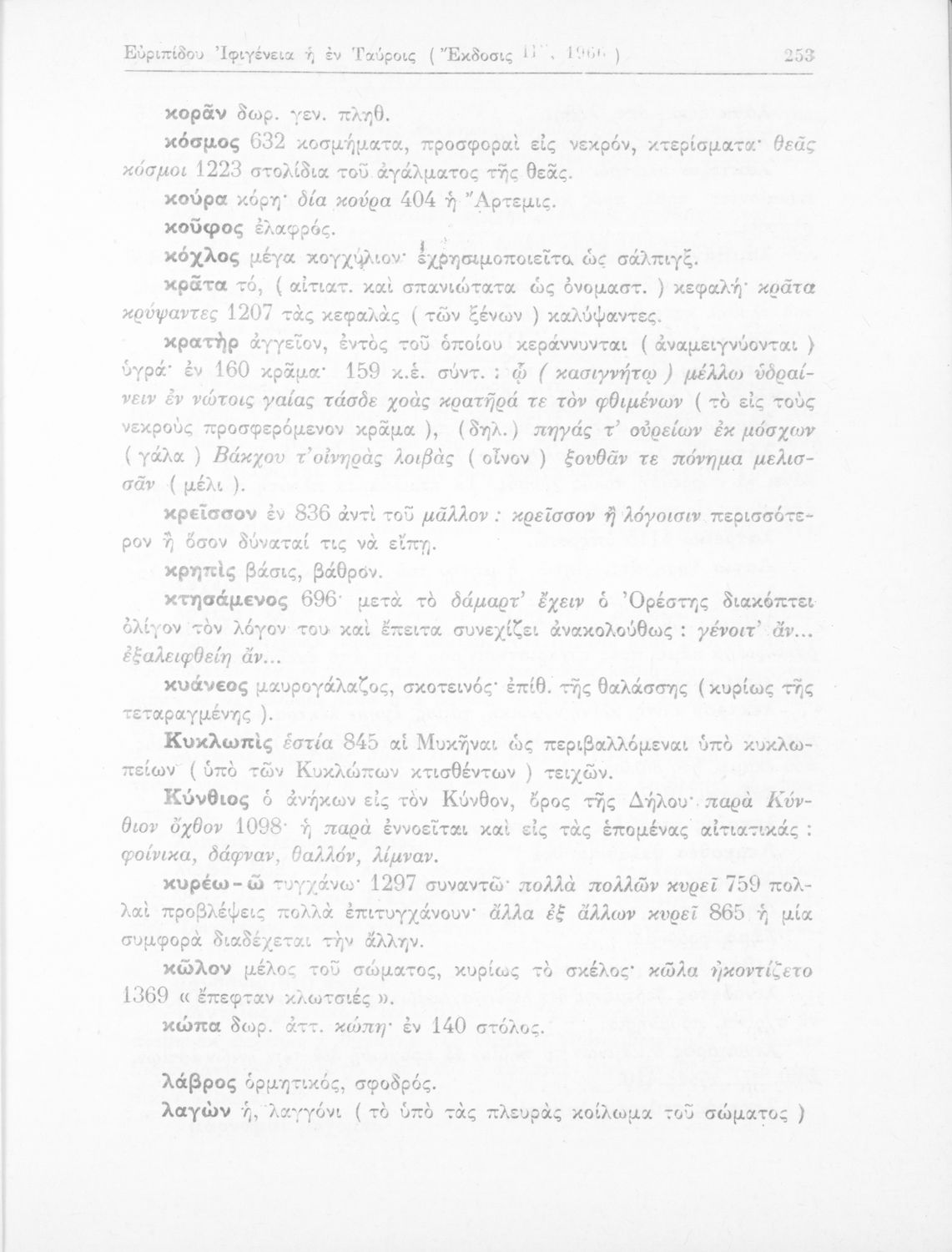 Σχολικό εγχειρίδιο Αρχαίων Ελληνικών Γυμνασίου που περιλαμβάνει αποσπάσματα τις τραγωδίες του Ευριπίδη Ιφιγένεια η εν Αυλίδι και Ιφιγένεια η εν Ταύροις, ερμηνευτικά και πραγματολογικά σχόλια και λεξιλογικές ...