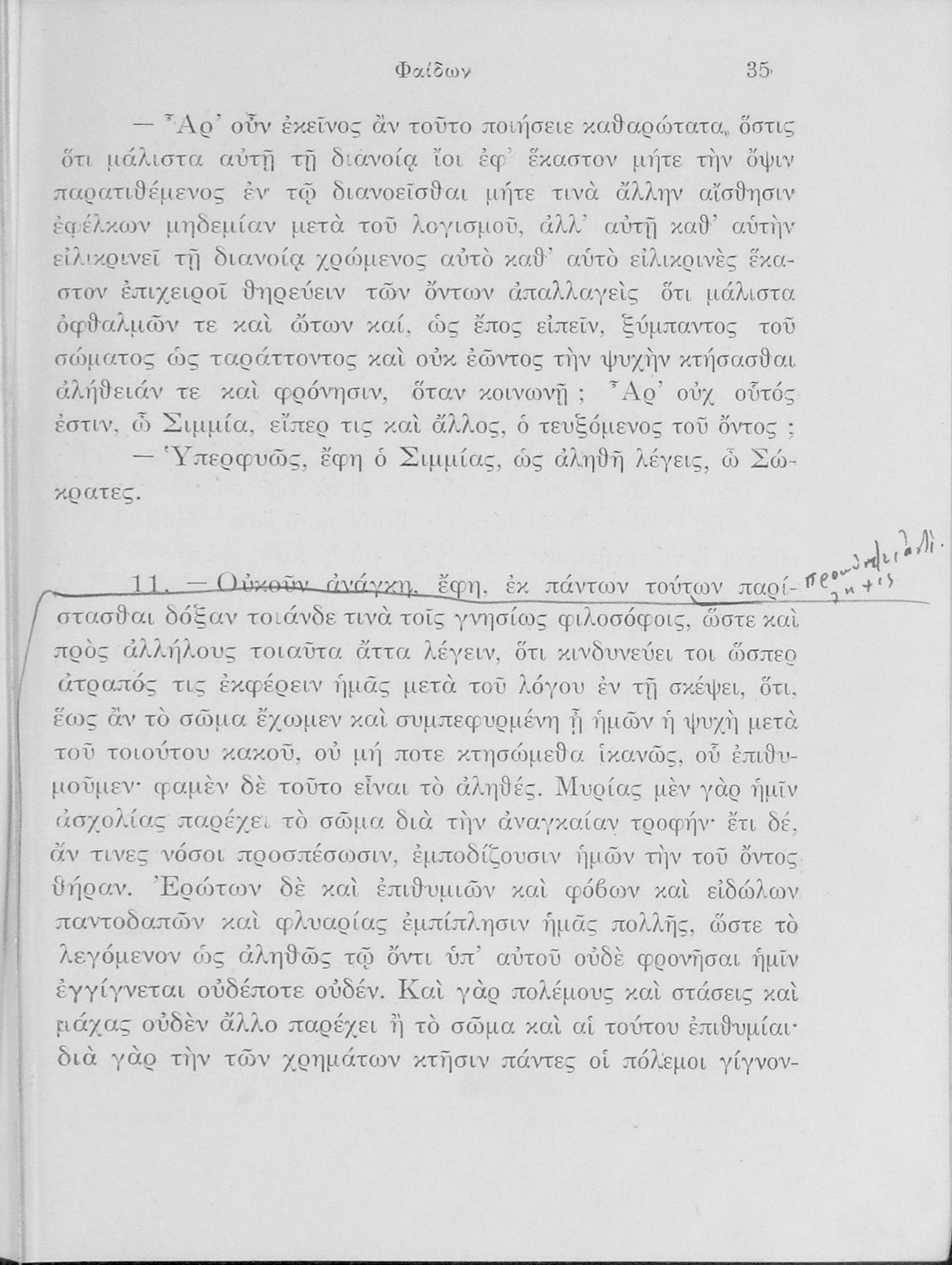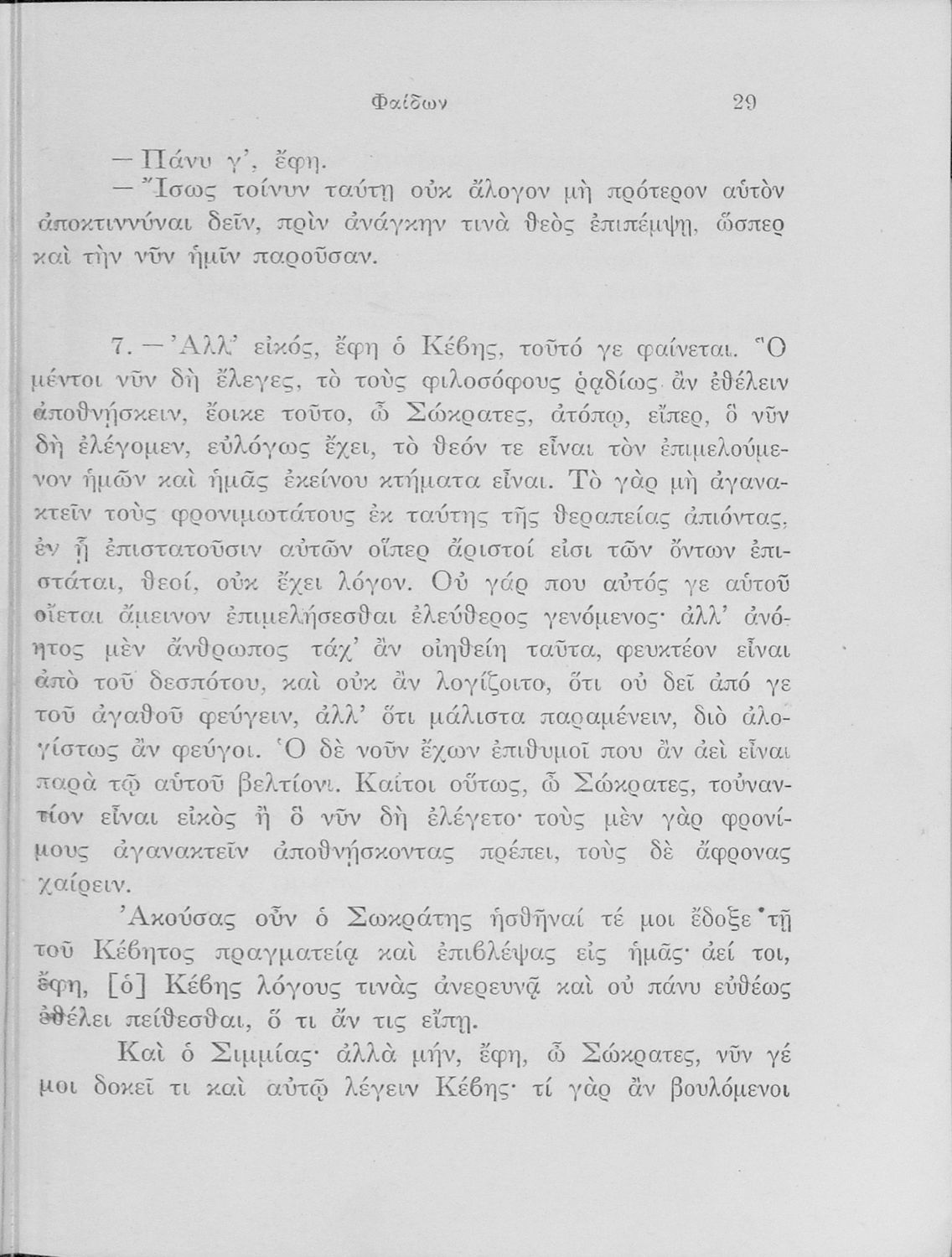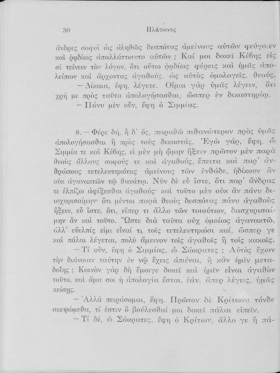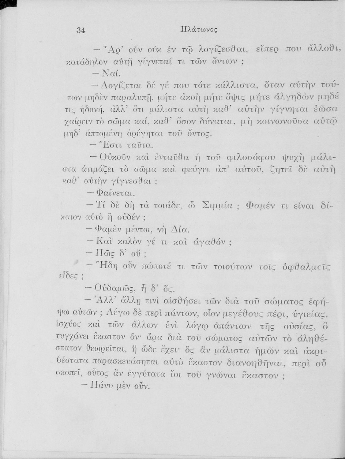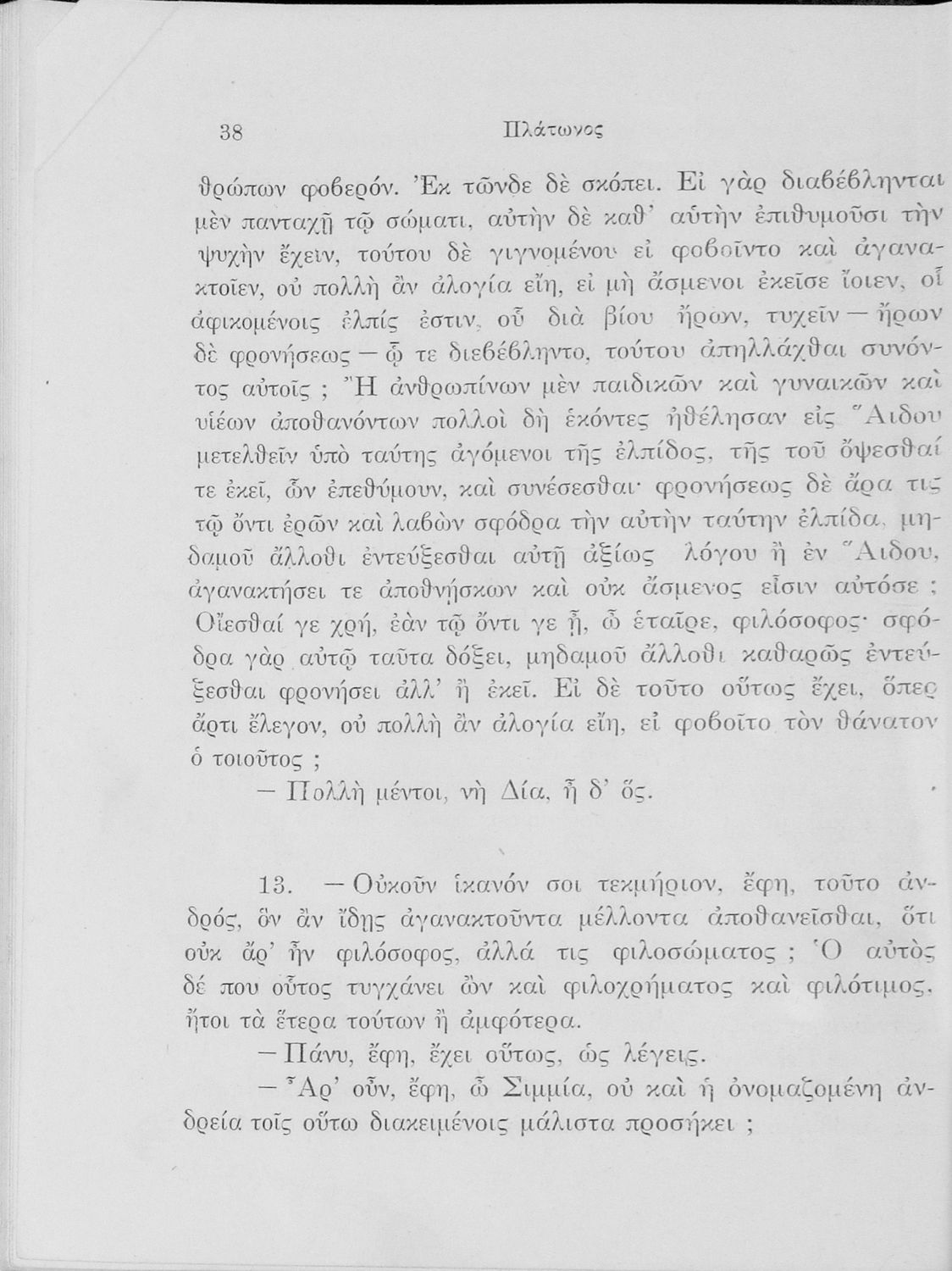 Σχολικό εγχειρίδιο Αρχαίων Ελληνικών. Το βιβλίο περιλαμβάνει εισαγωγή σχετικά με τη ζωή και το έργο του Πλάτωνα και αναφέρεται σε φιλοσόφους της εποχής. Παραθέτεται το κείμενο "Φαίδων : Η περί ψυχής ηθικός" το οποίο περιλαμβάνει τα κεφάλαια από το 1 έως το 34. Ακολουθεί η περίληψη των κεφαλαίων 35 έως 63 και ολοκληρώνεται με τις ερμηνευτικές σημειώσεις.