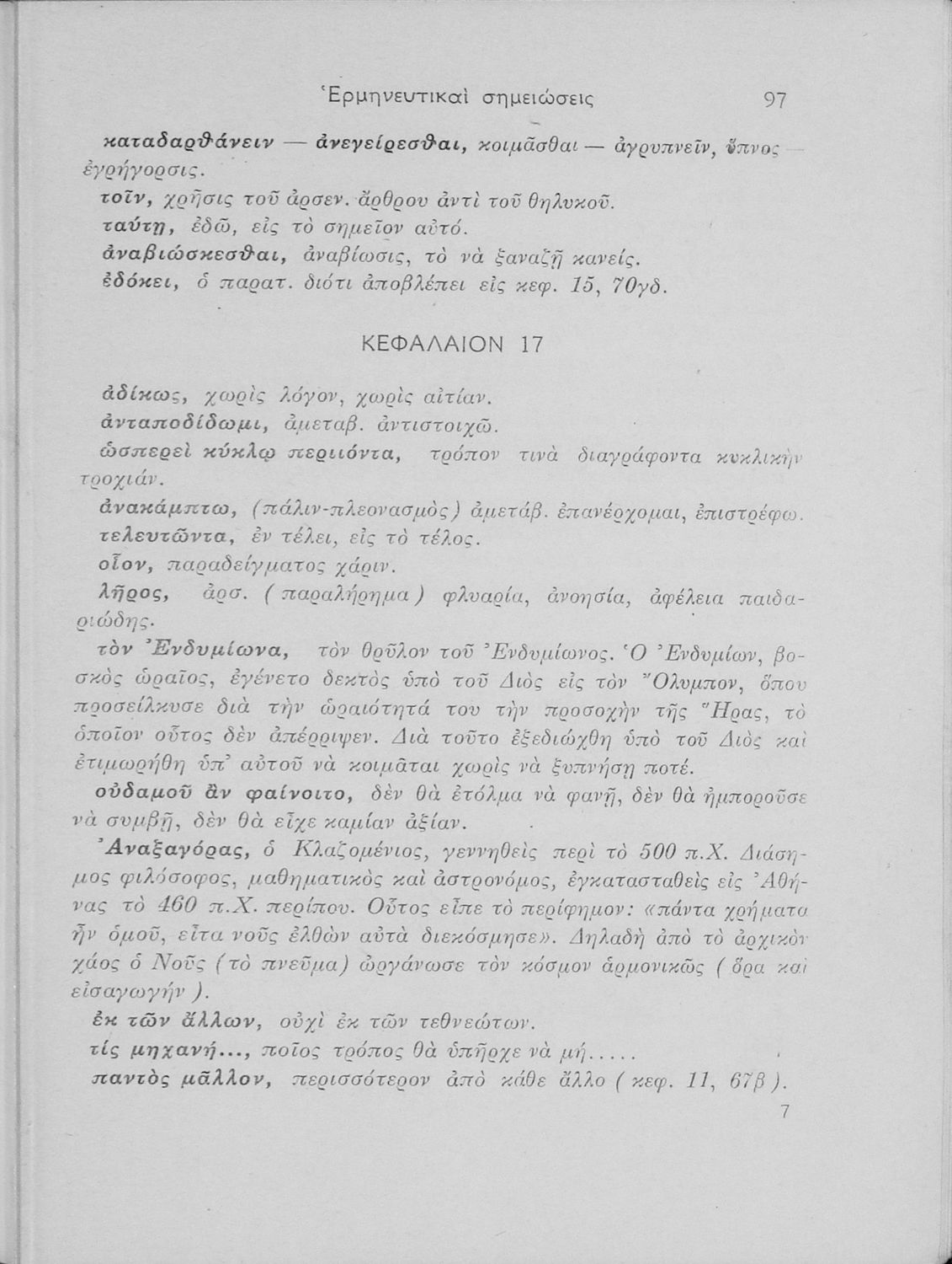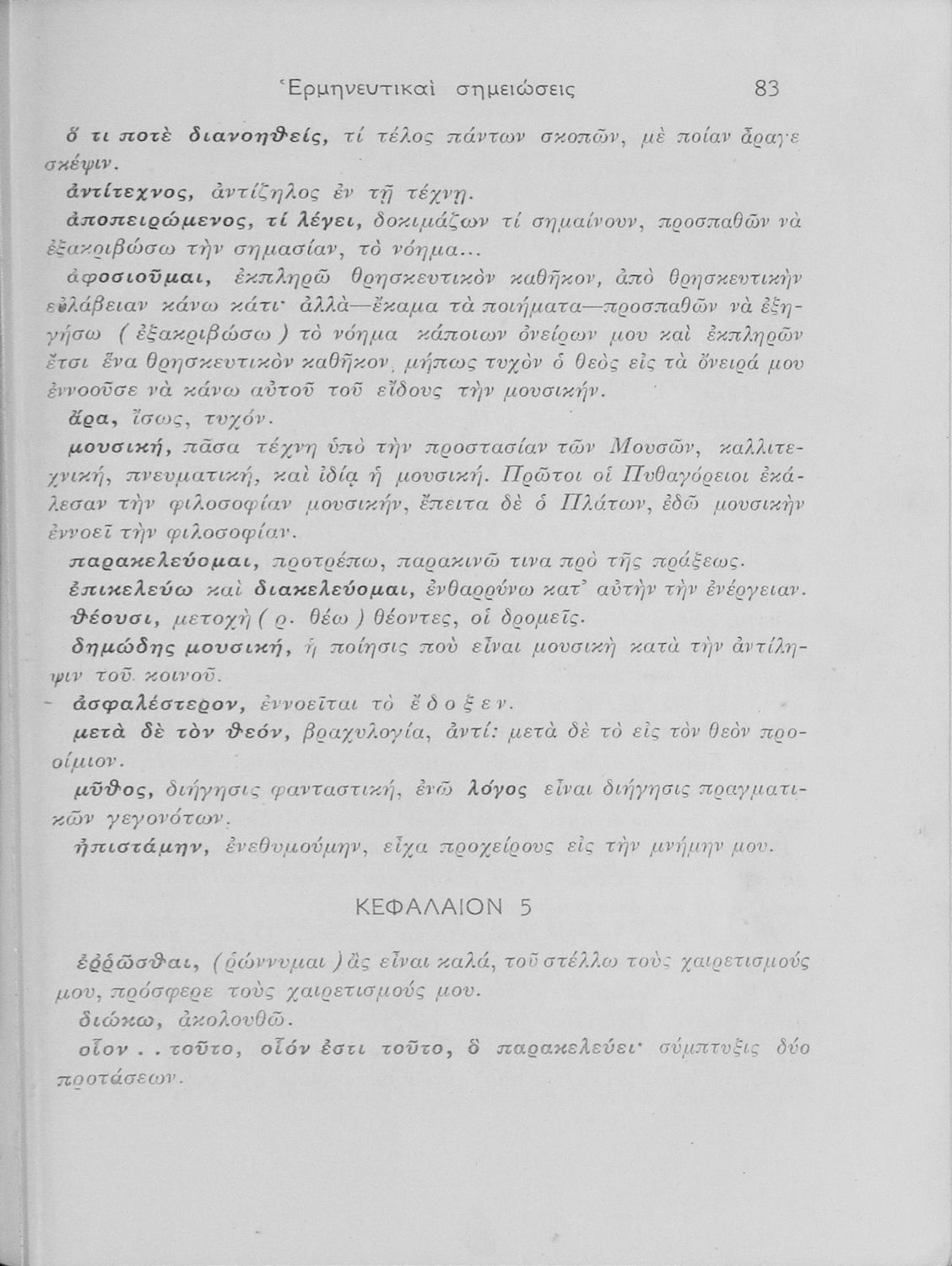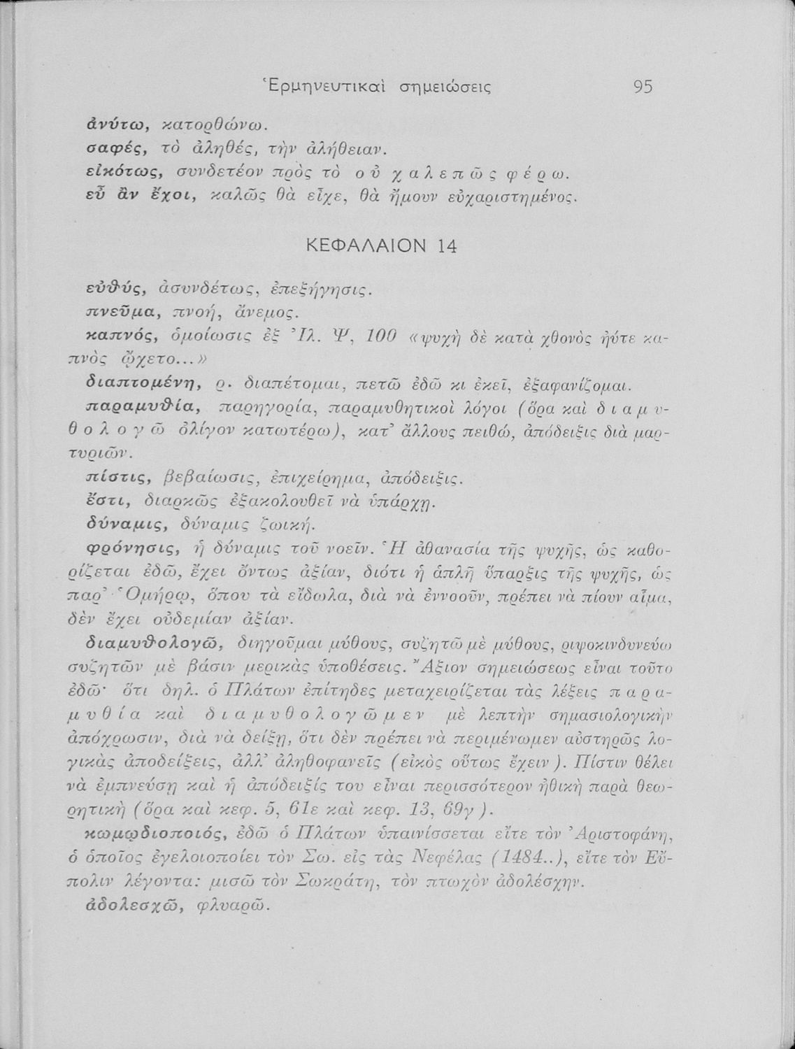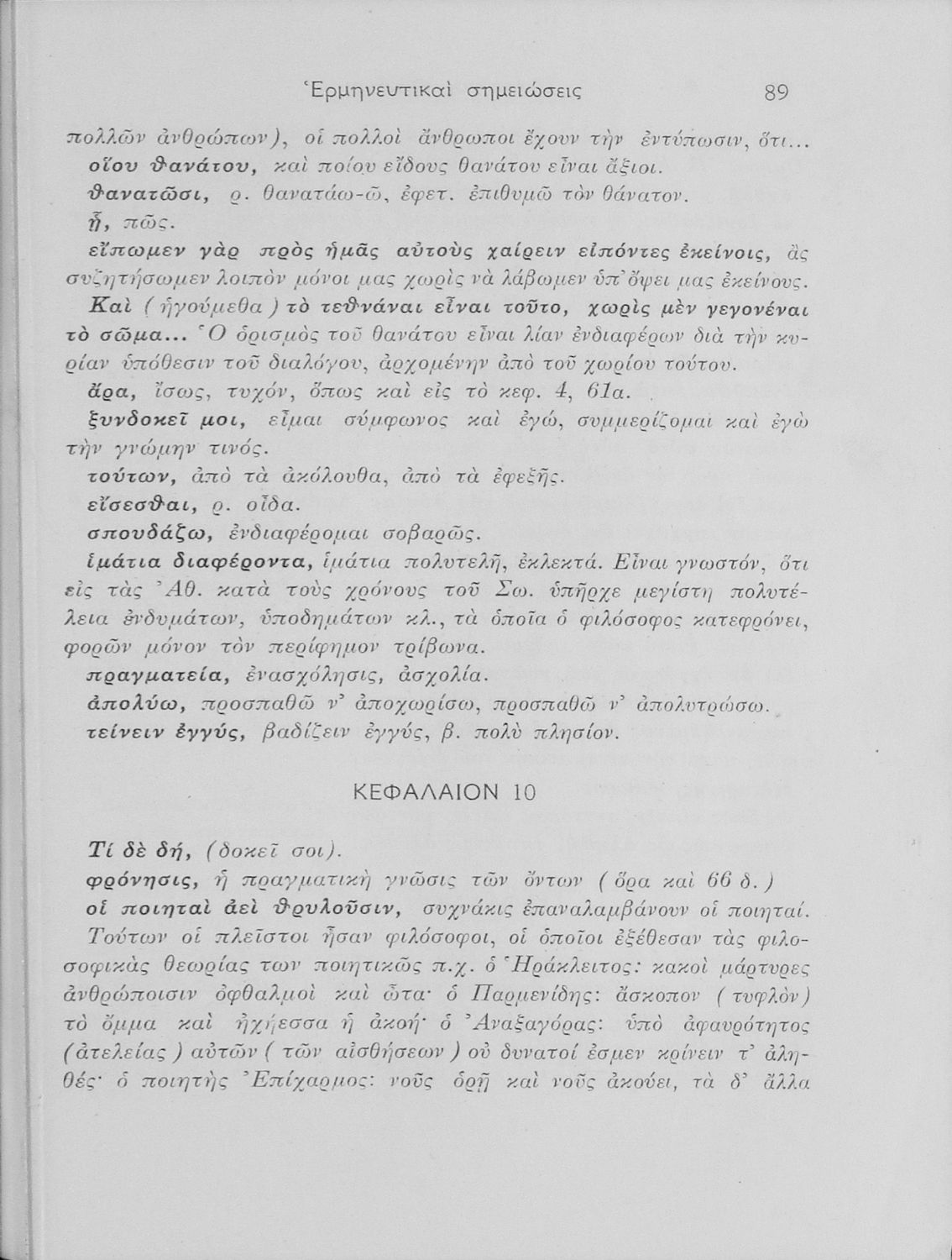 Σχολικό εγχειρίδιο Αρχαίων Ελληνικών. Το βιβλίο περιλαμβάνει εισαγωγή σχετικά με τη ζωή και το έργο του Πλάτωνα και αναφέρεται σε φιλοσόφους της εποχής. Παραθέτεται το κείμενο "Φαίδων : Η περί ψυχής ηθικός" το οποίο περιλαμβάνει τα κεφάλαια από το 1 έως το 34. Ακολουθεί η περίληψη των κεφαλαίων 35 έως 63 και ολοκληρώνεται με τις ερμηνευτικές σημειώσεις.