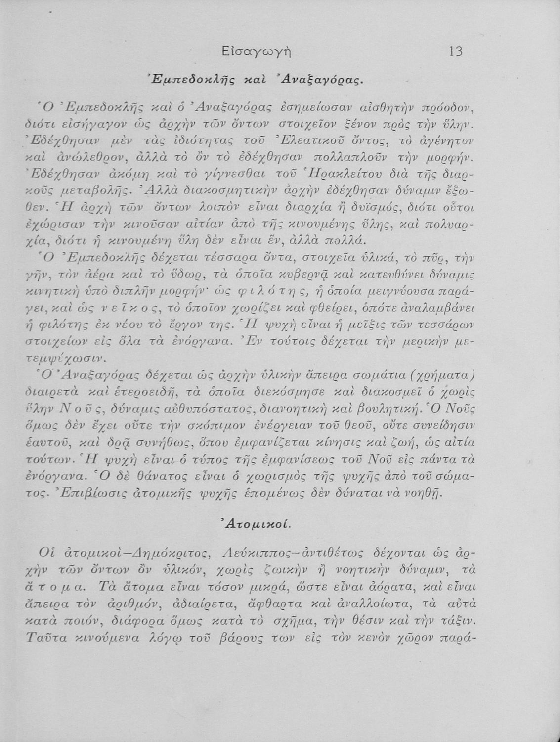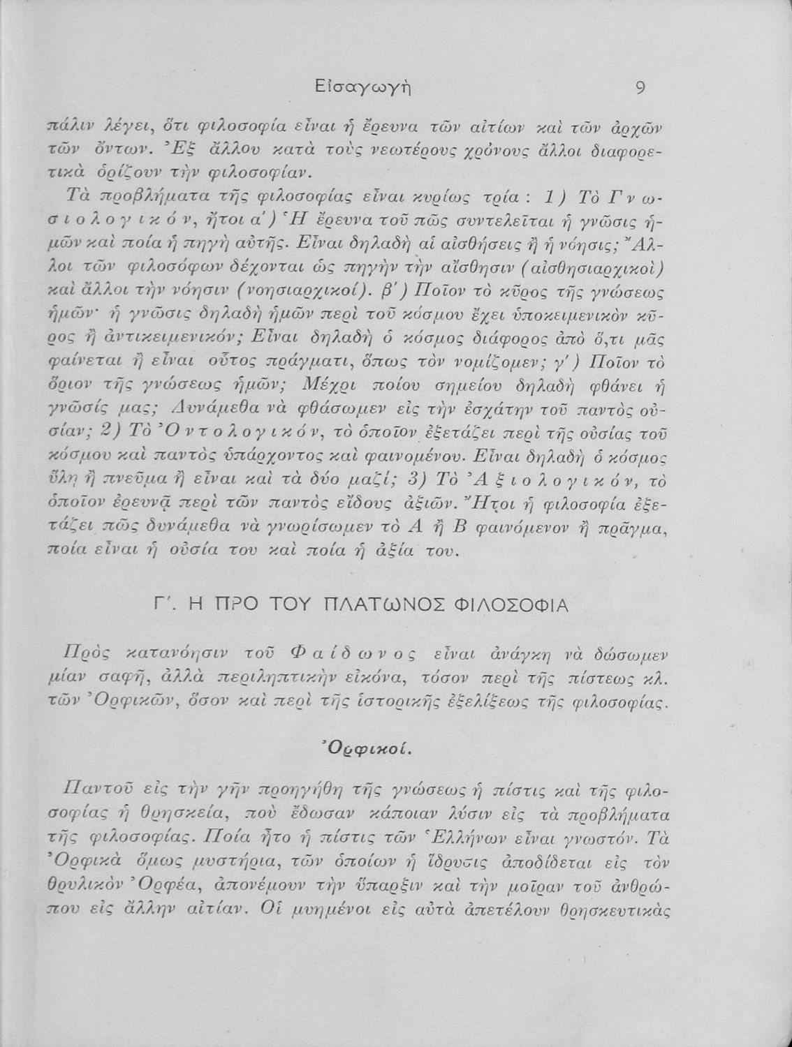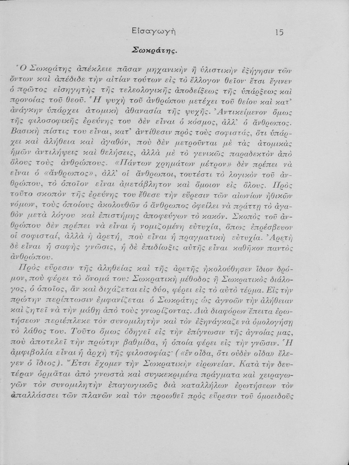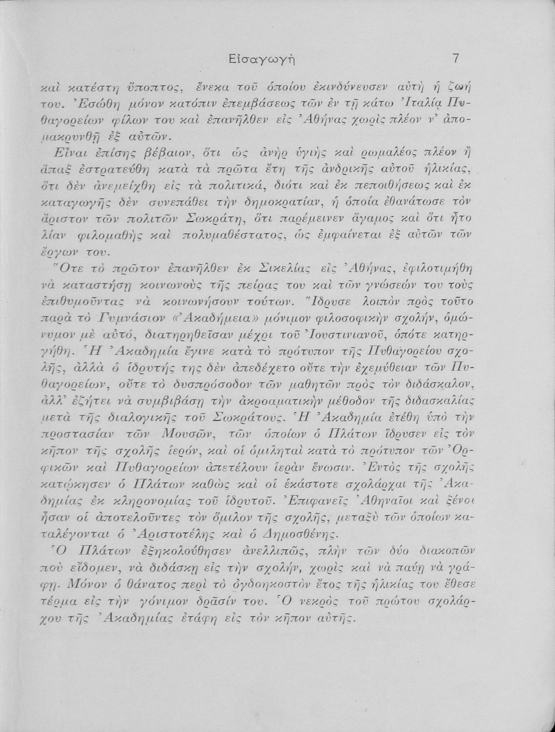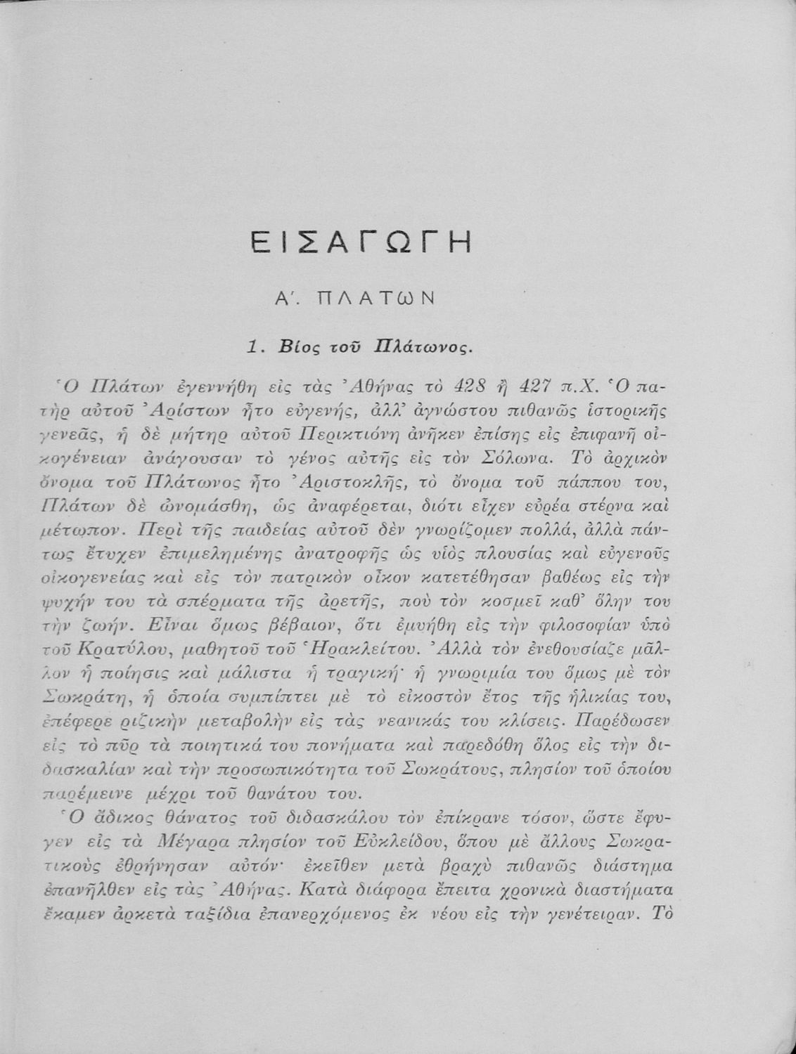 Σχολικό εγχειρίδιο Αρχαίων Ελληνικών για τη ΣΤ΄ τάξη των Εξαταξίων Γυμνασίων που περιλαμβάνει σύντομο βιογραφικό του Πλάτωνα, εισαγωγή στην προσωκρατική φιλοσοφία και στην φιλοσοφία του Πλάτωνα, αποσπάσματα ...