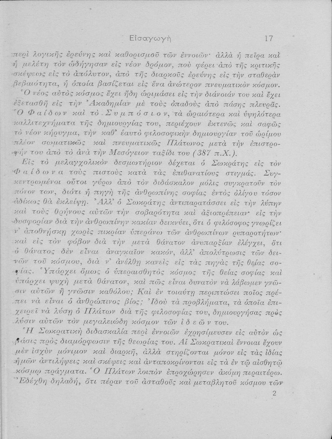Πλάτων, Νικ. Αθ. Κοντόπουλος (σχόλια)