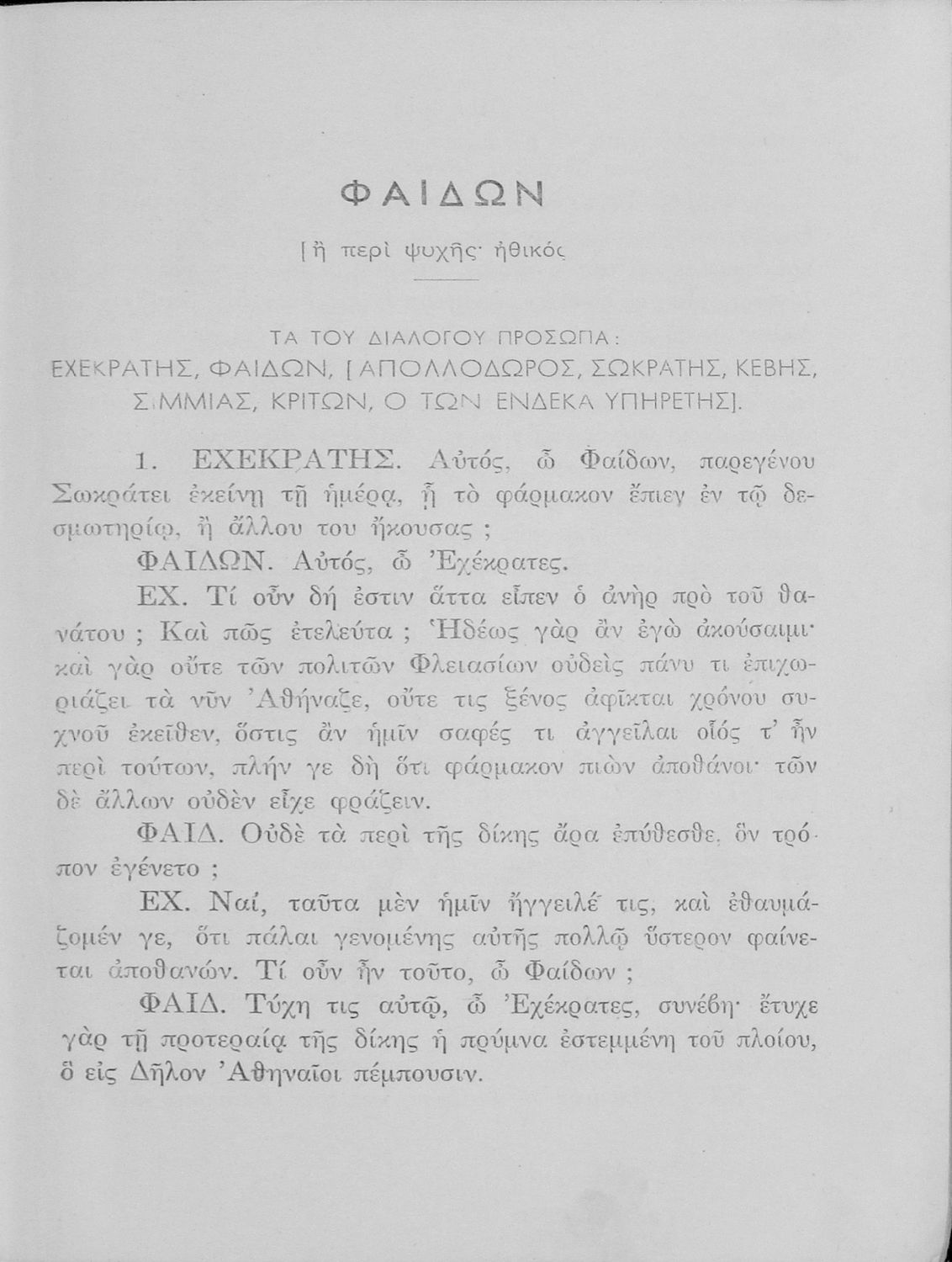 Πλάτωνος Φαίδων δια την ΣΤ΄ τάξιν των Γυμνασίων παλαιού τύπου
