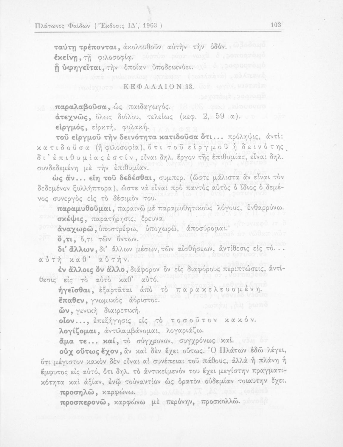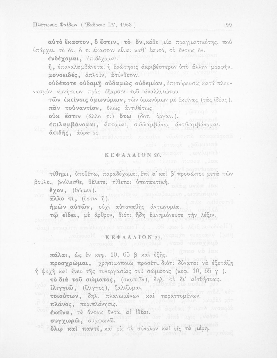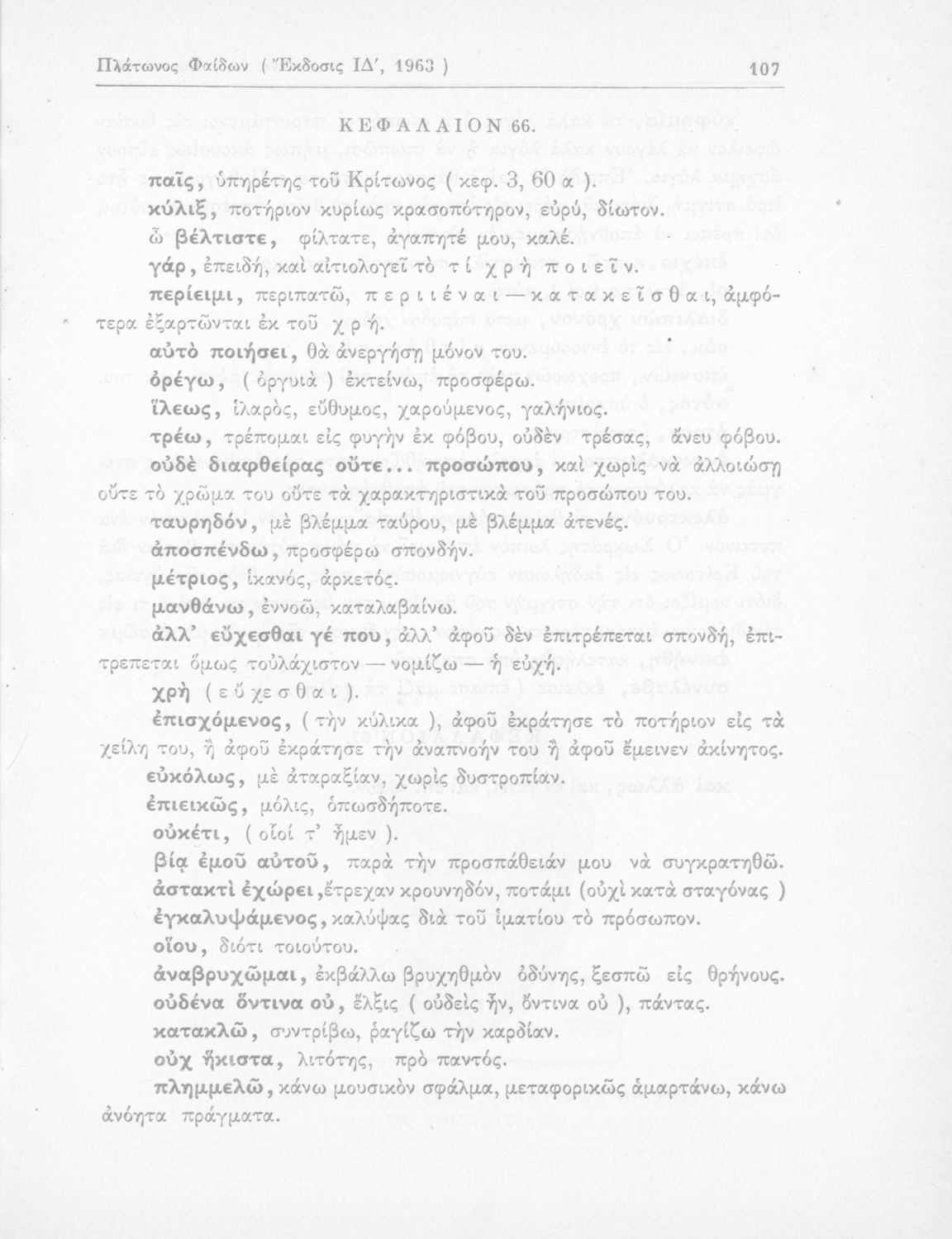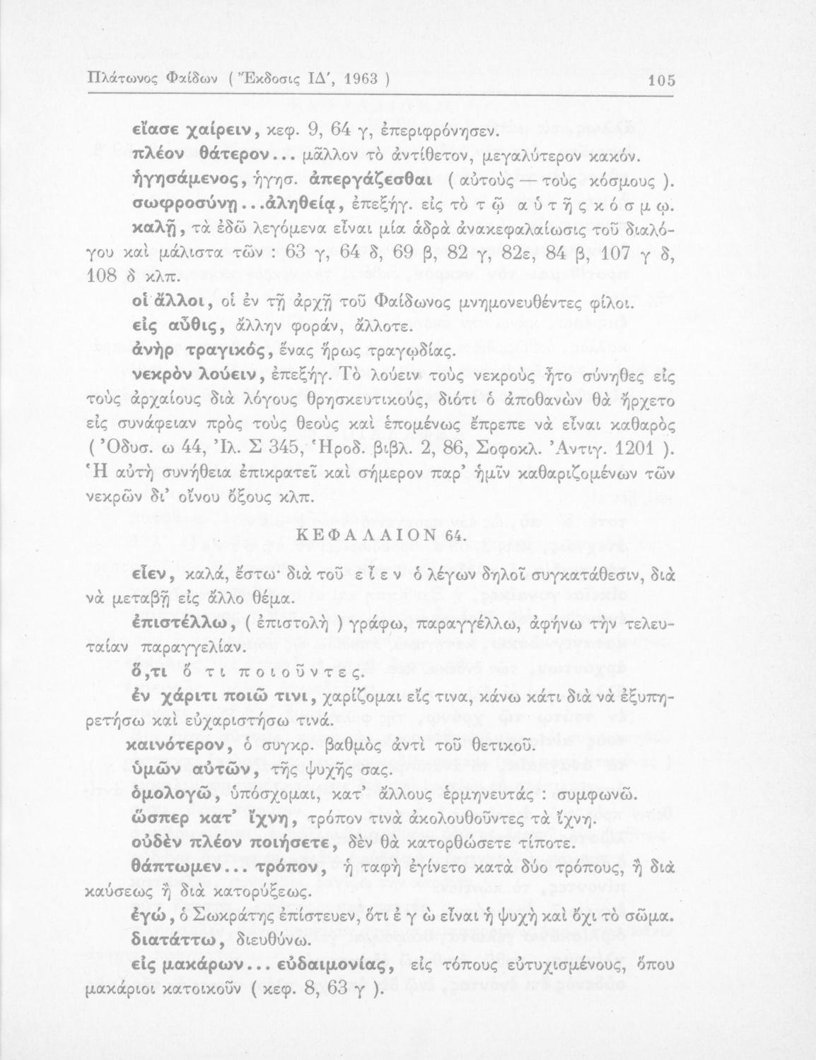 Σχολικό εγχειρίδιο Αρχαίων Ελληνικών ΣΤ΄ Γυμνασίου που περιέχει αποσπάσματα από το έργο του Πλάτωνα Φαίδων, λεξιλογικές παρατηρήσεις, και ερμηνευτικά, πραγματολογικά σχόλια και γραμματικές παρατηρήσεις.