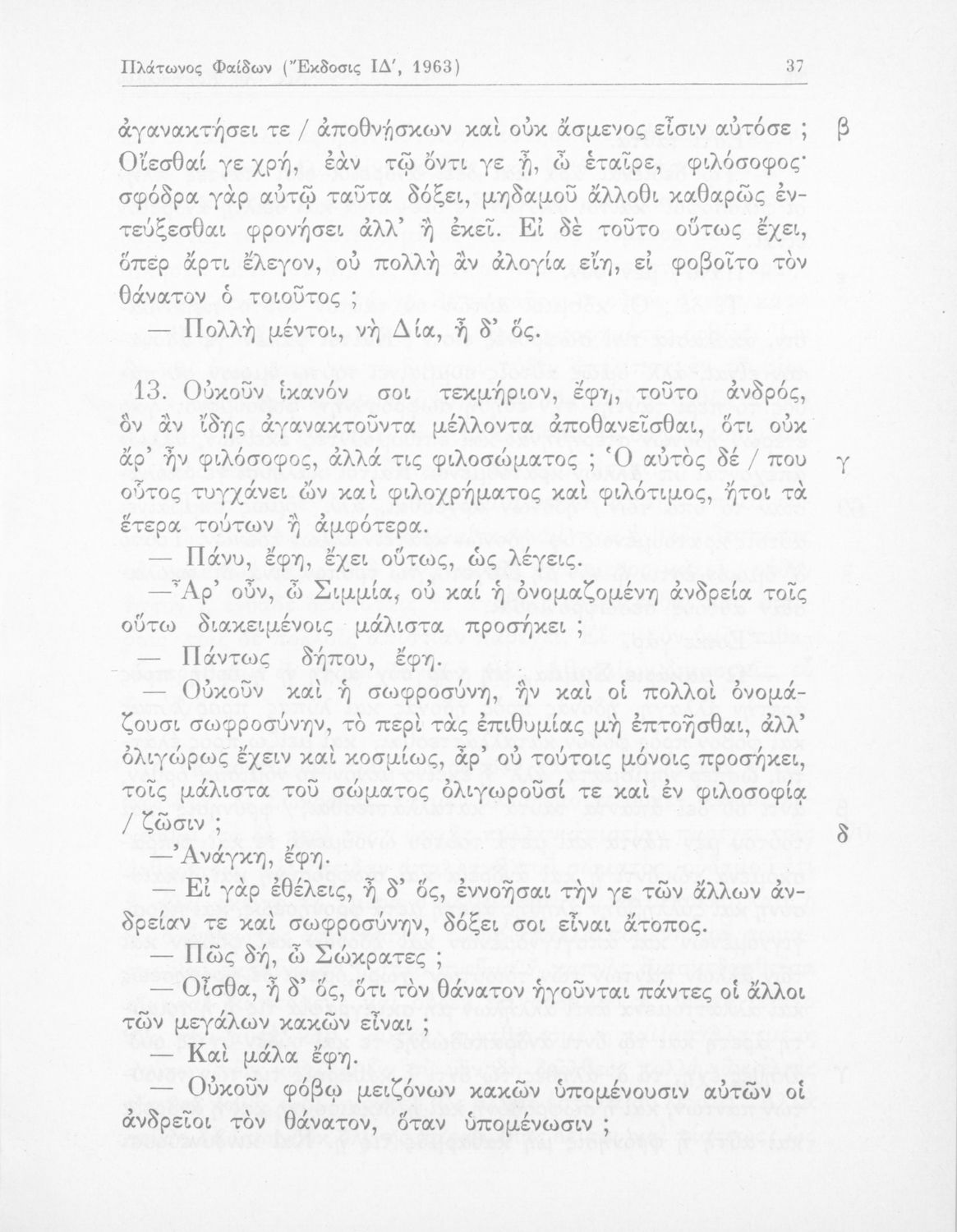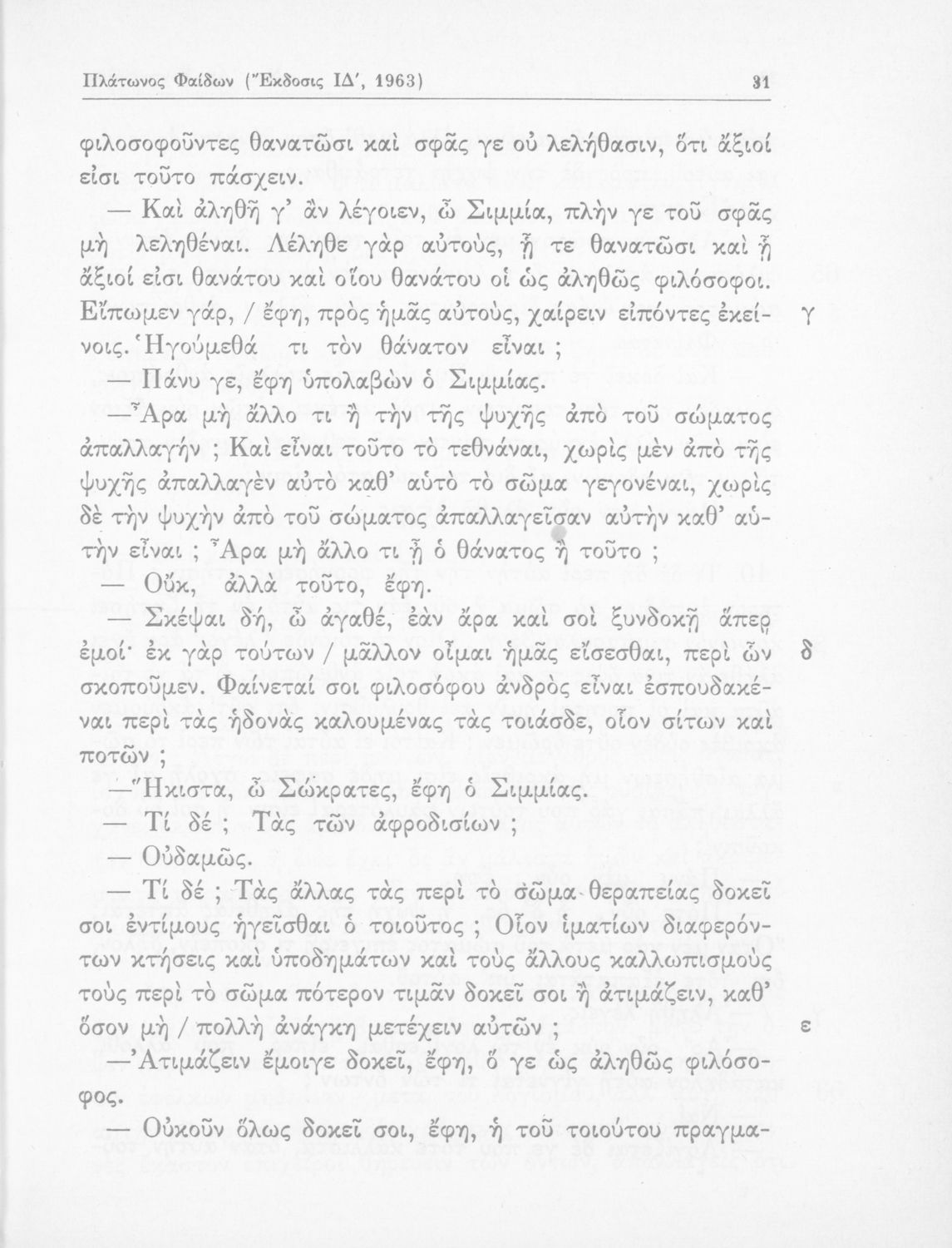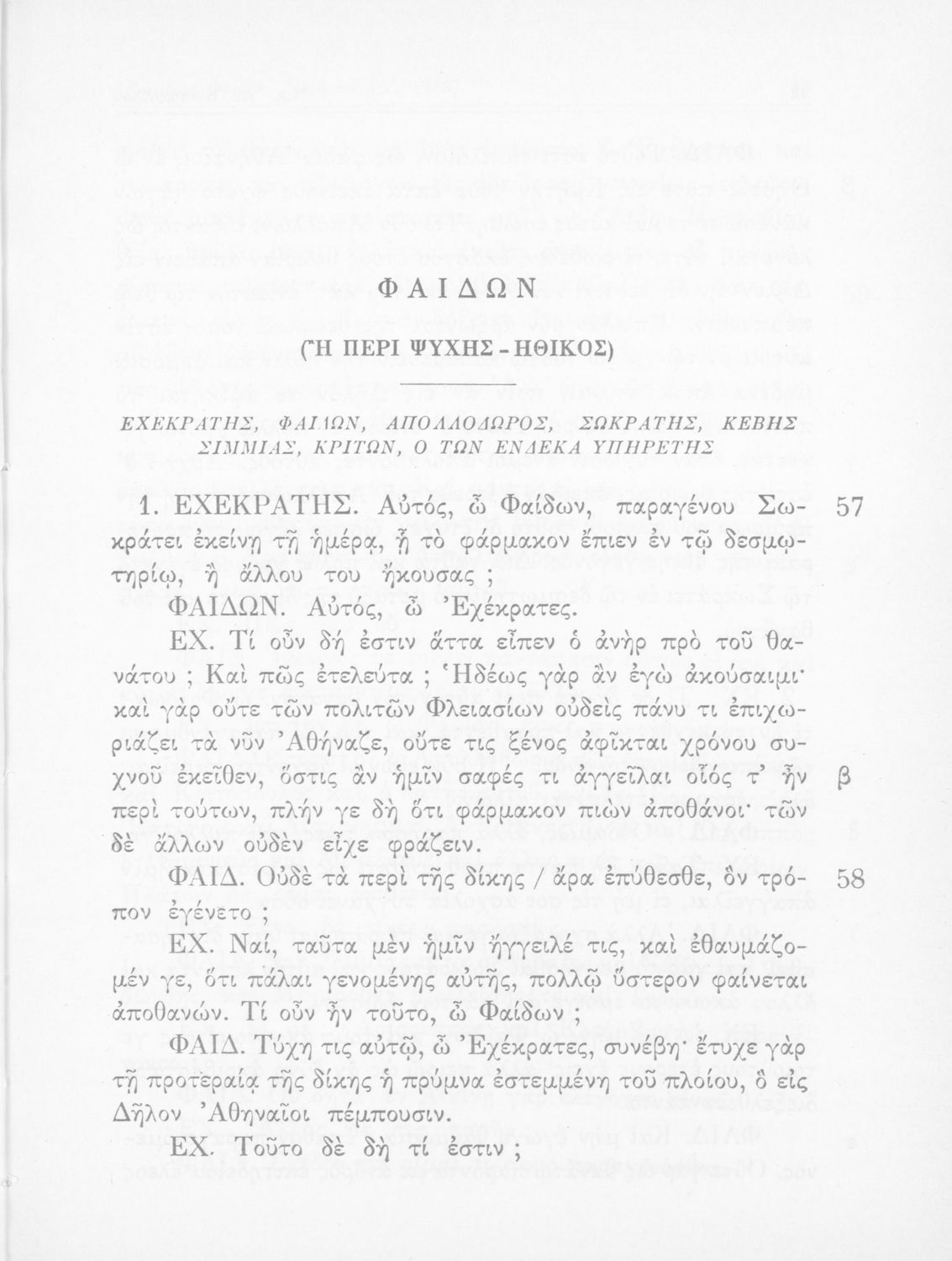 Σχολικό εγχειρίδιο Αρχαίων Ελληνικών. Το βιβλίο περιλαμβάνει εισαγωγή σχετικά με τη ζωή και το έργο του Πλάτωνα και αναφέρεται σε φιλοσόφους της εποχής. Παραθέτεται το κείμενο "Φαίδων : Η περί ψυχής ηθικός" το