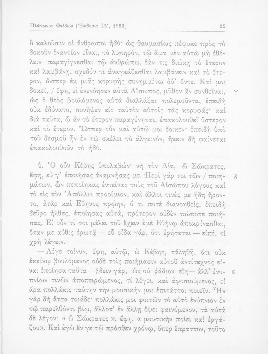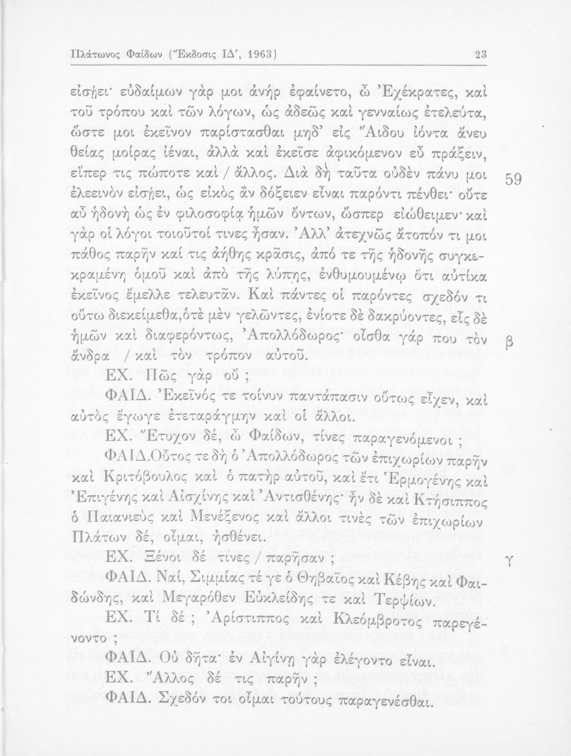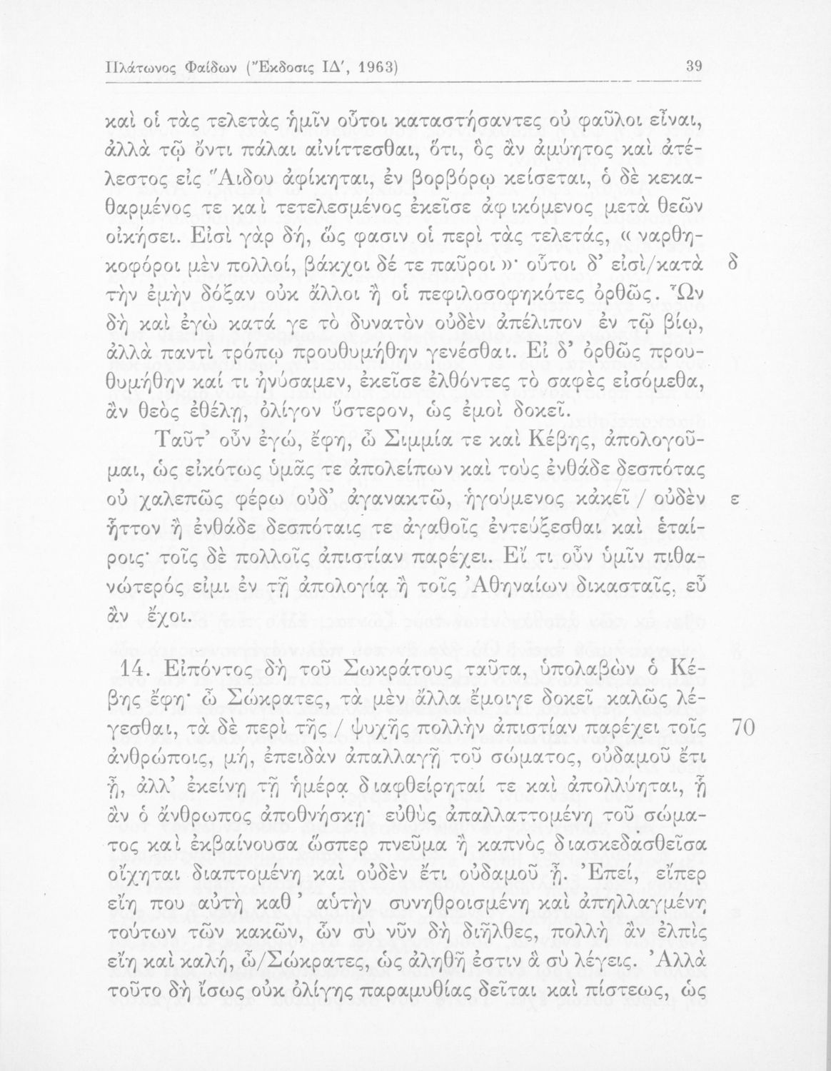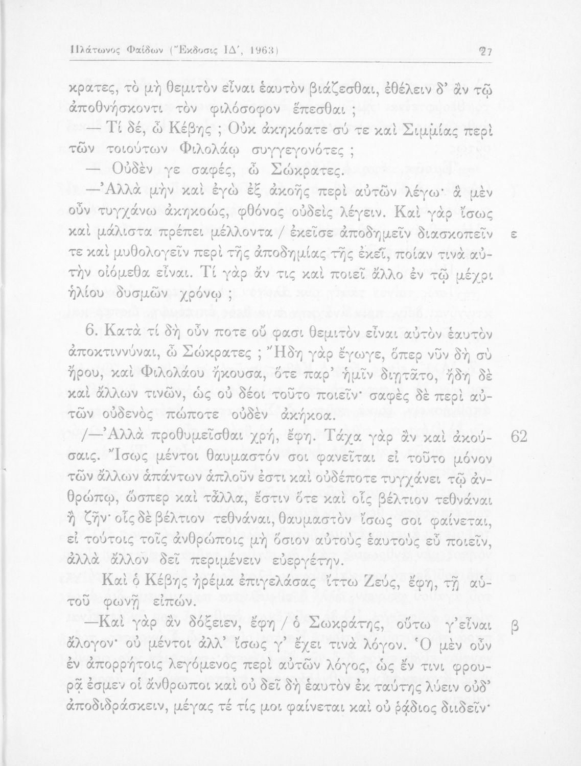 Σχολικό εγχειρίδιο Αρχαίων Ελληνικών ΣΤ΄ Γυμνασίου που περιέχει αποσπάσματα από το έργο του Πλάτωνα Φαίδων, λεξιλογικές παρατηρήσεις, και ερμηνευτικά, πραγματολογικά σχόλια και γραμματικές παρατηρήσεις.