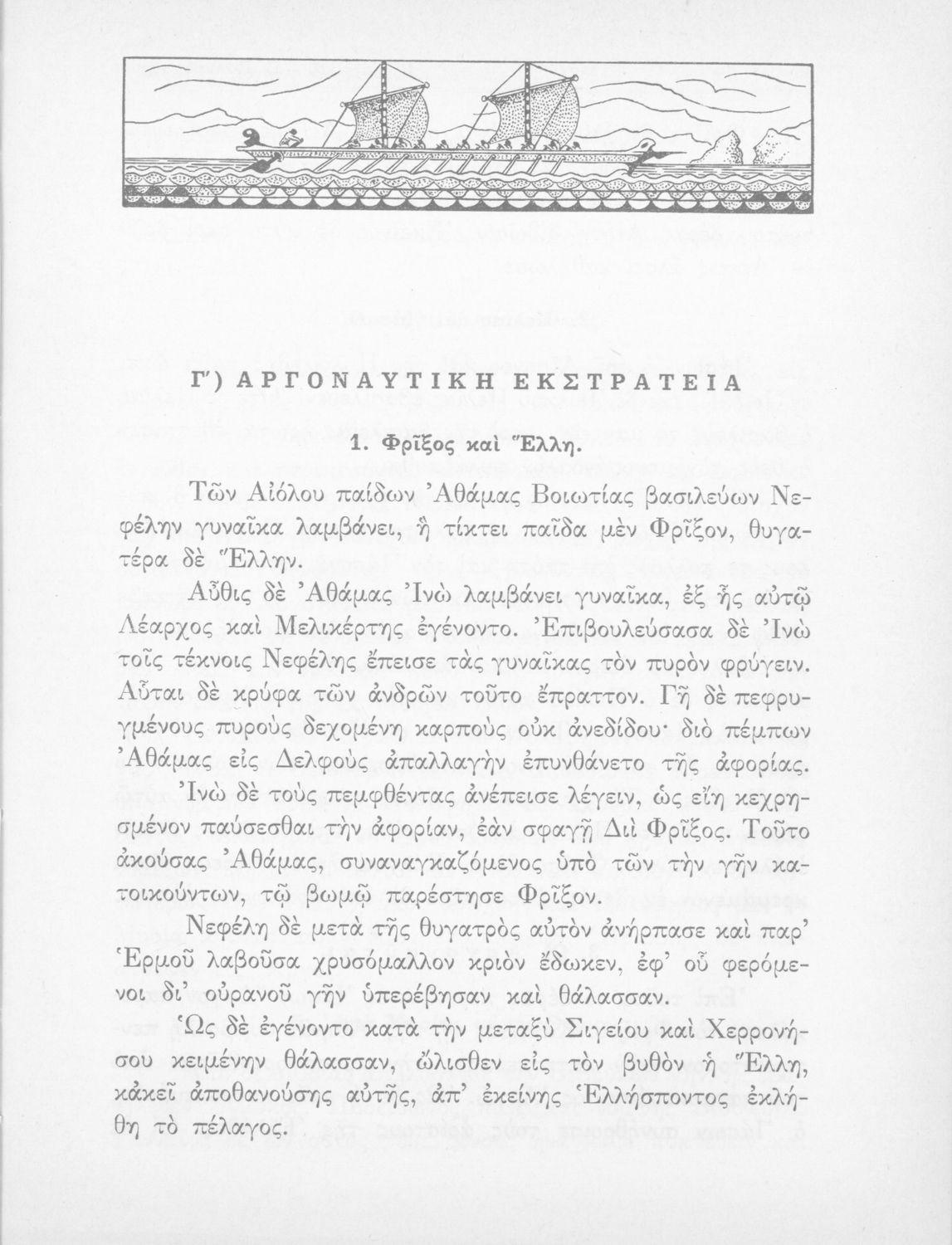 Σχολικό εγχειρίδιο Αρχαίων Ελληνικών Α΄ Γυμνασίου που περιέχει αποσπάσματα από έργα αρχαίων Ελλήνων συγγραφέων, ερμηνευτικά και πραγματολογικά σχόλια και γραμματικές παρατηρήσεις.