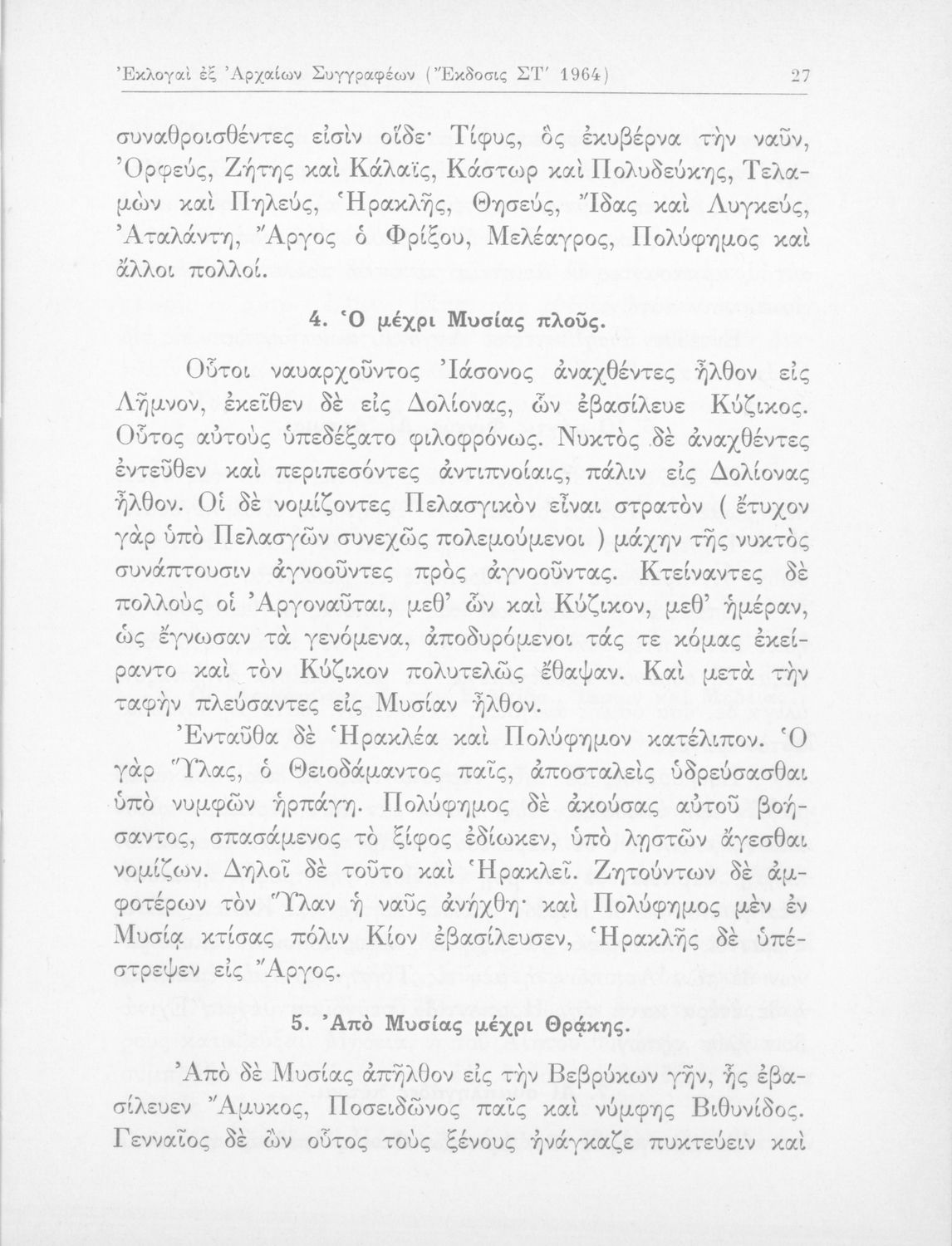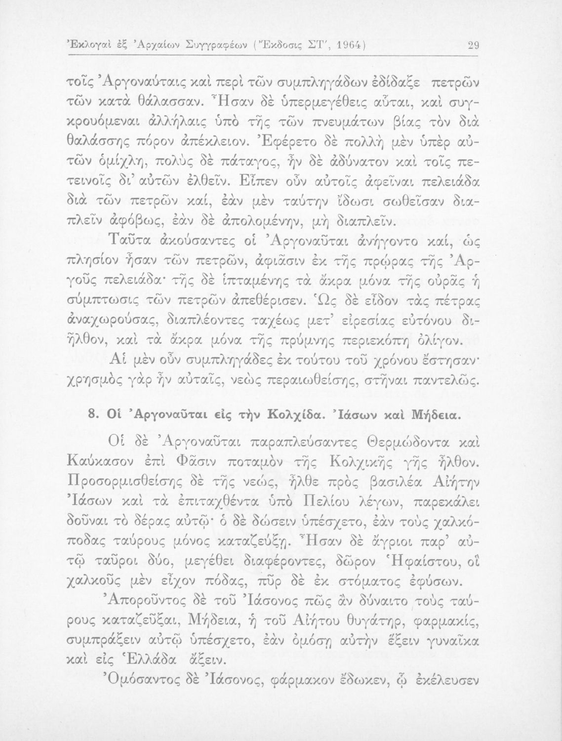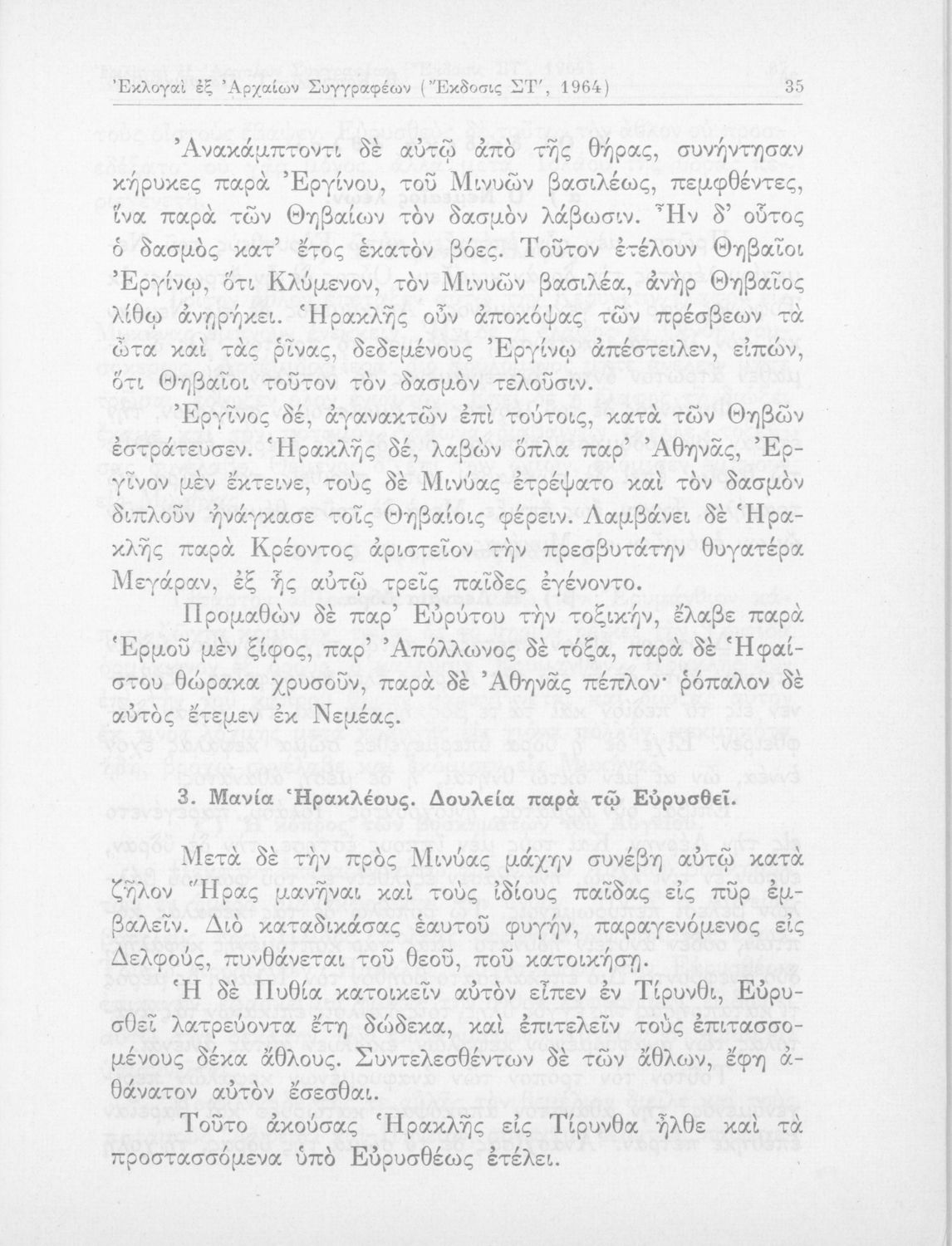 Σχολικό εγχειρίδιο Αρχαίων Ελληνικών Β΄ και Γ΄ Γυμνασίου που περιέχει αποσπάσματα από έργα αρχαίων Ελλήνων συγγραφέων, ερμηνευτικά και πραγματολογικά σχόλια και γραμματικές παρατηρήσεις.