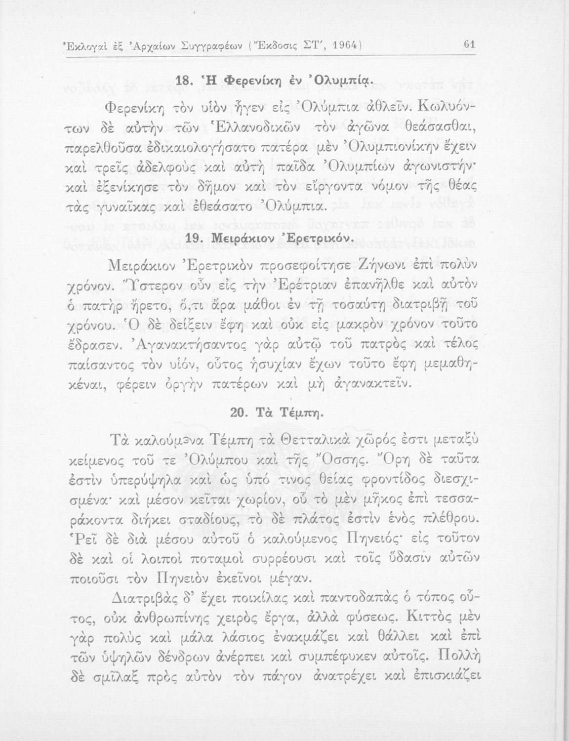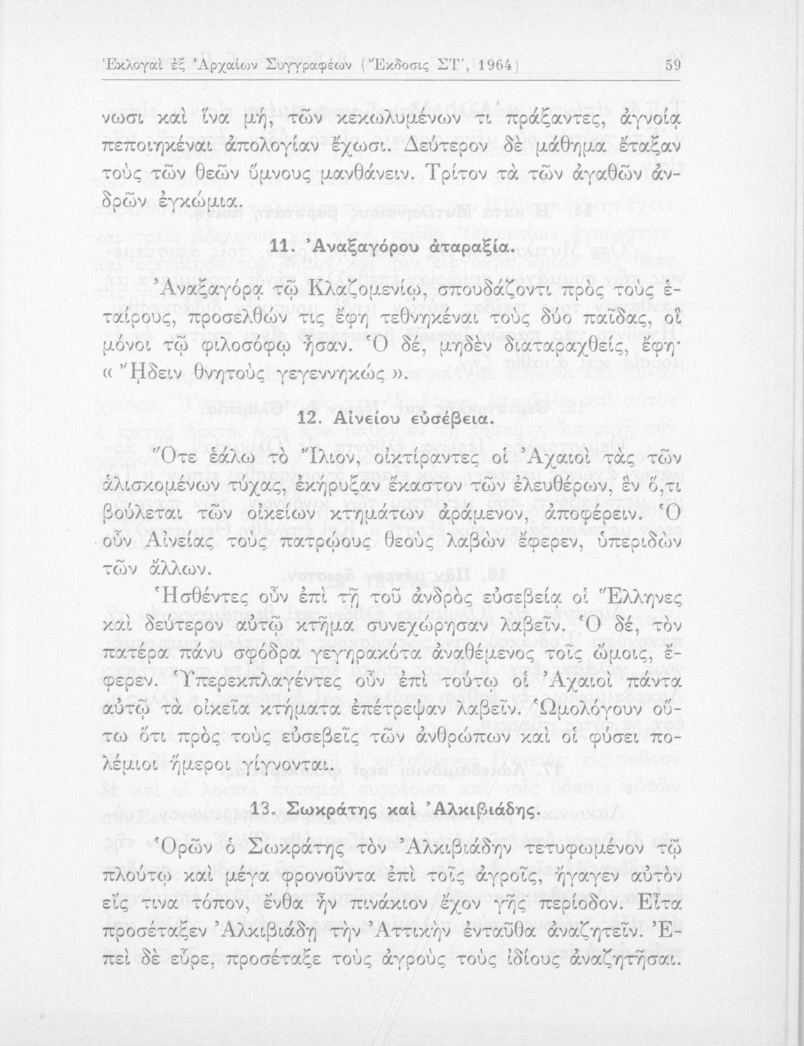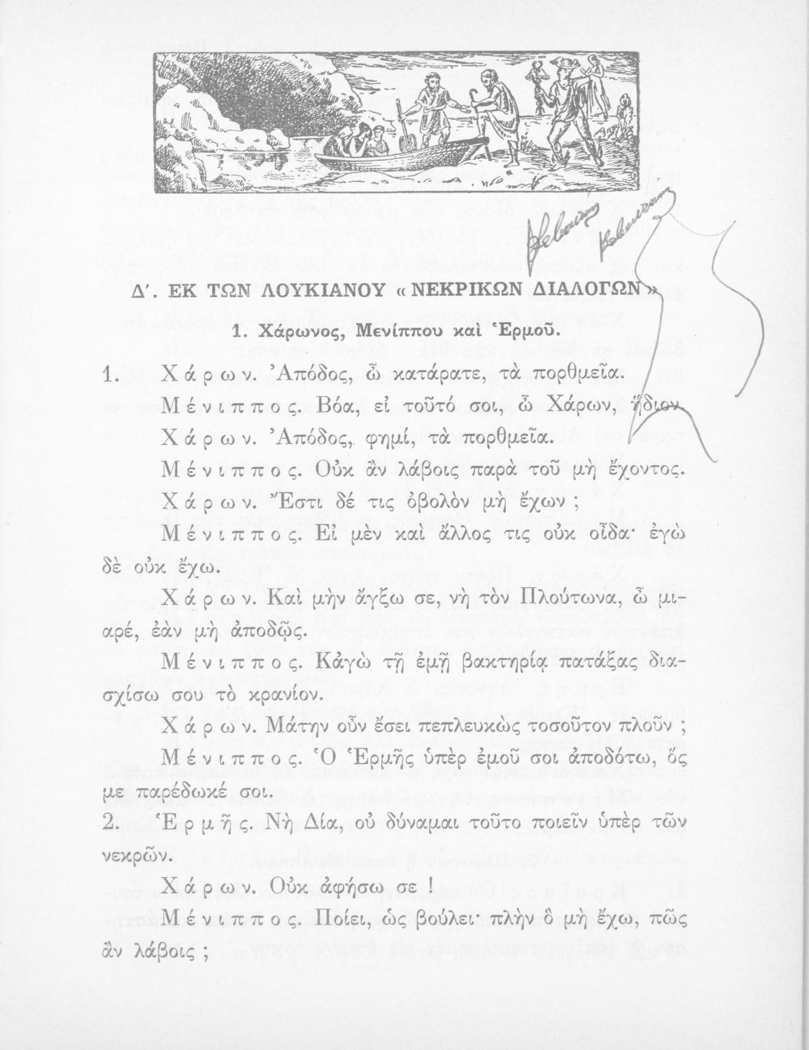 Σχολικό εγχειρίδιο Αρχαίων Ελληνικών Β΄ και Γ΄ Γυμνασίου που περιέχει αποσπάσματα από έργα αρχαίων Ελλήνων συγγραφέων, ερμηνευτικά και πραγματολογικά σχόλια και γραμματικές παρατηρήσεις.