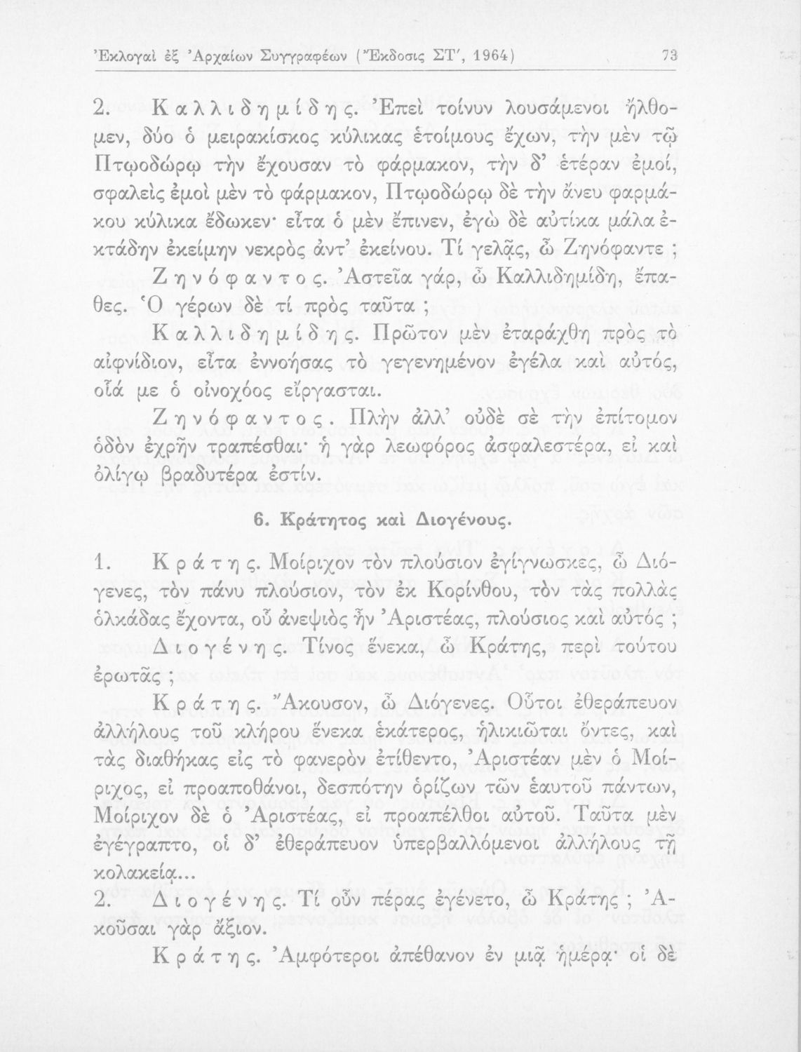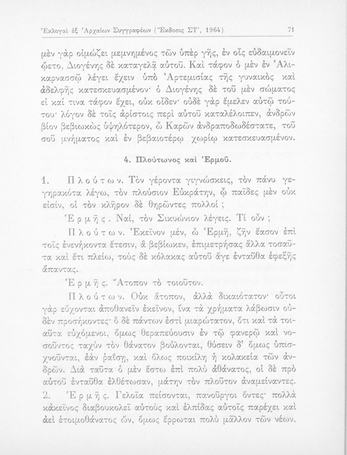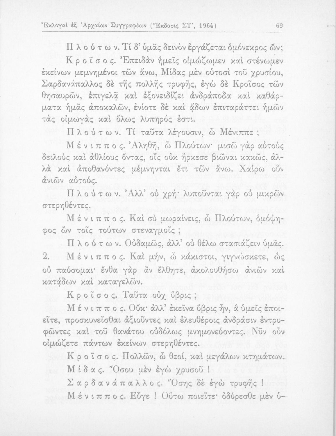 Σχολικό εγχειρίδιο Αρχαίων Ελληνικών Β΄ και Γ΄ Γυμνασίου που περιέχει αποσπάσματα από έργα αρχαίων Ελλήνων συγγραφέων, ερμηνευτικά και πραγματολογικά σχόλια και γραμματικές παρατηρήσεις.