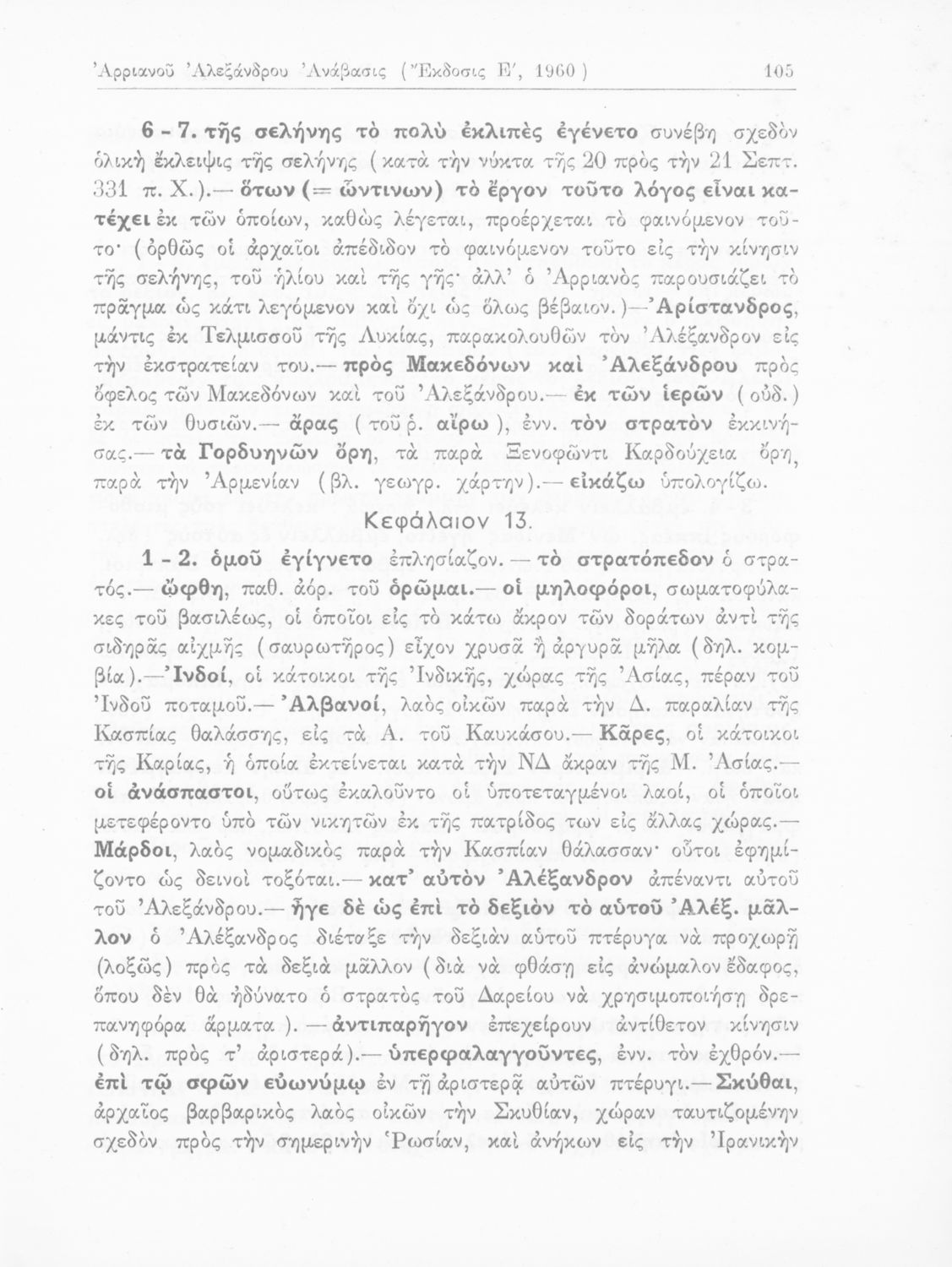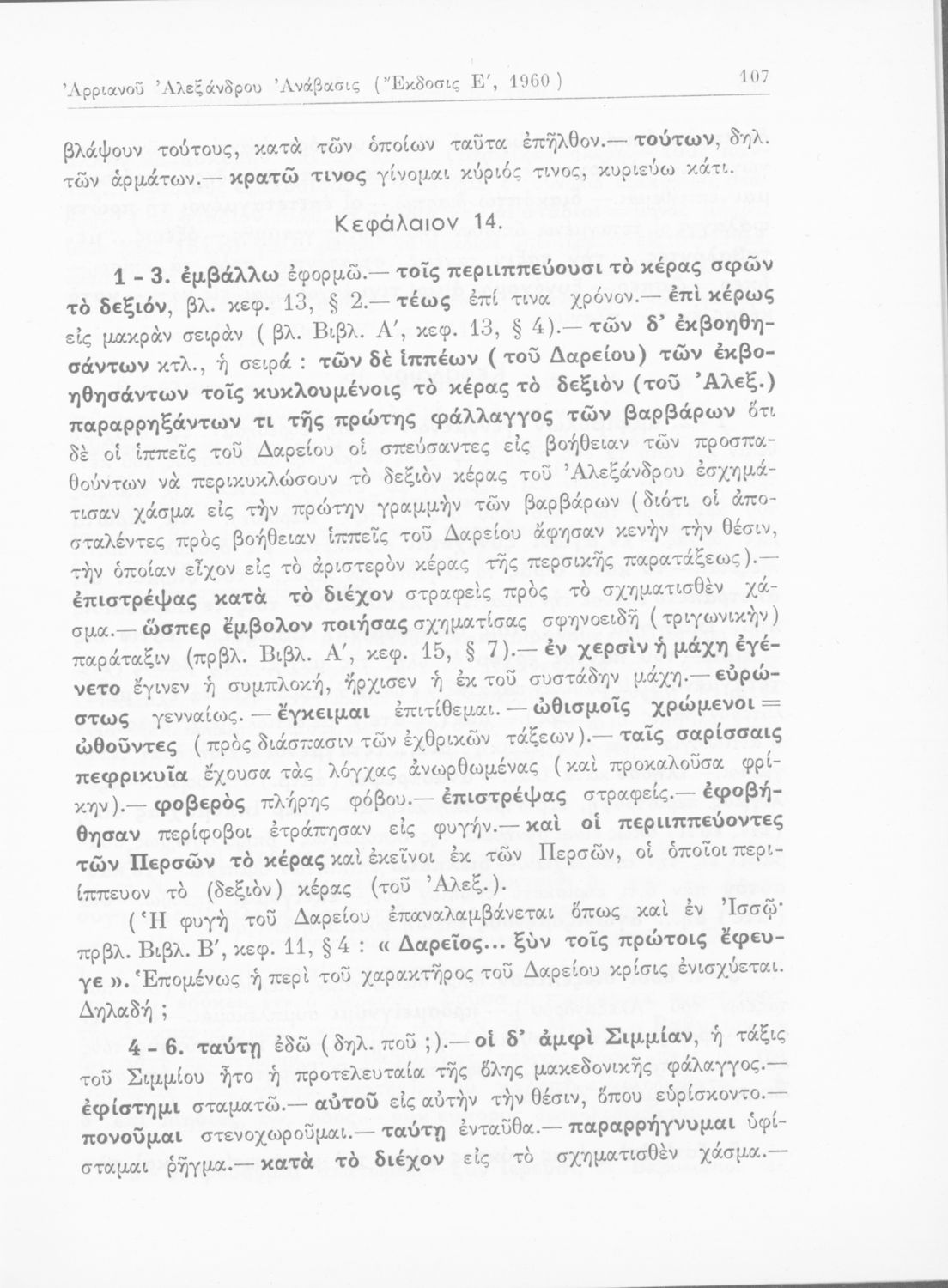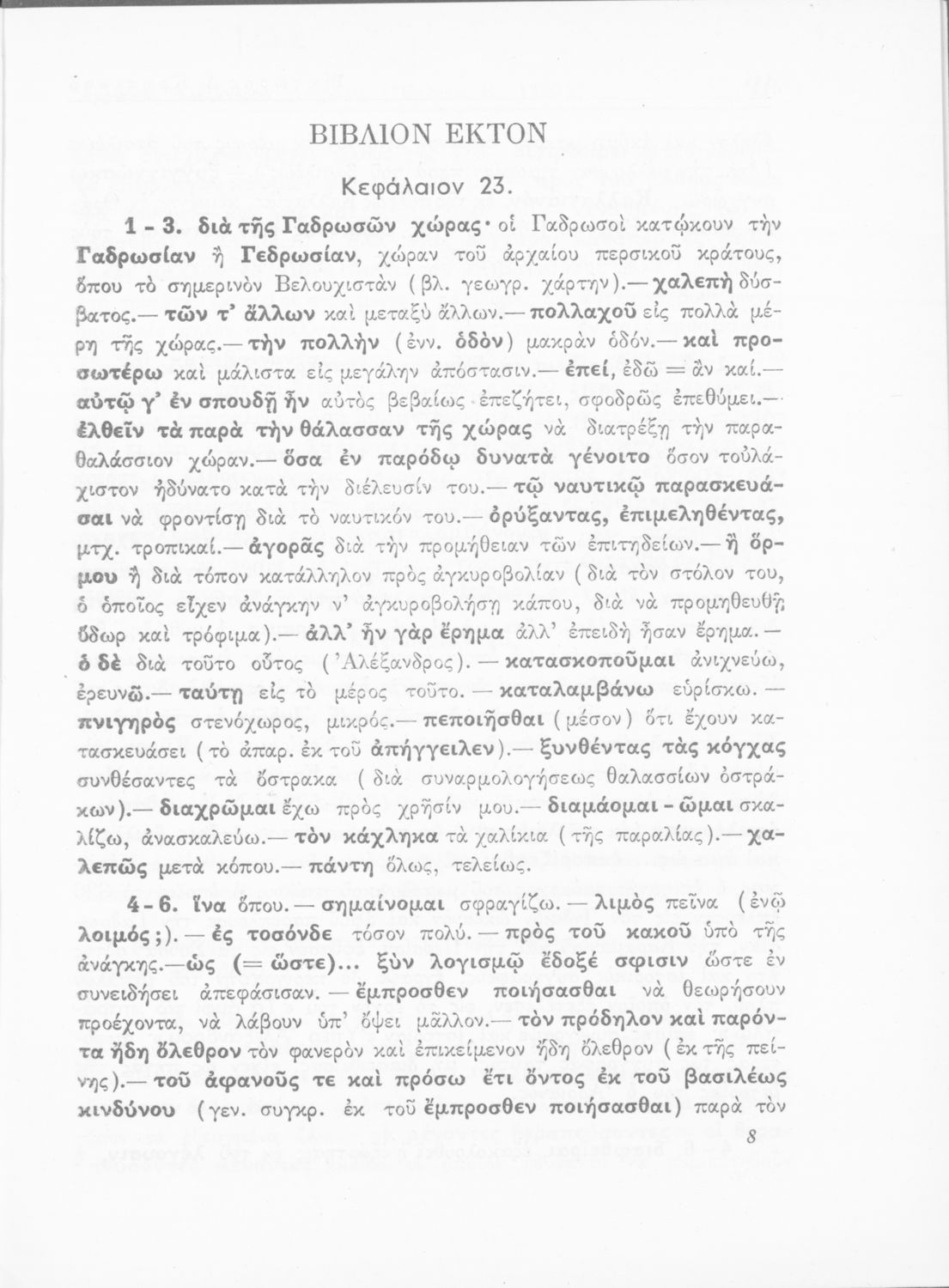 Σχολικό εγχειρίδιο Αρχαίων Ελληνικών Γ΄ Γυμνασίου που περιλαμβάνει αποσπάσματα από το έργο του Αρριανού Αλέξανδρου Ανάβασις και του Ηρόδοτου Ιστορίαι, ερμηνευτικές και λεξιλογικές παρατηρήσεις καθώς και τοπογραφικούς πίνακες και χάρτες..