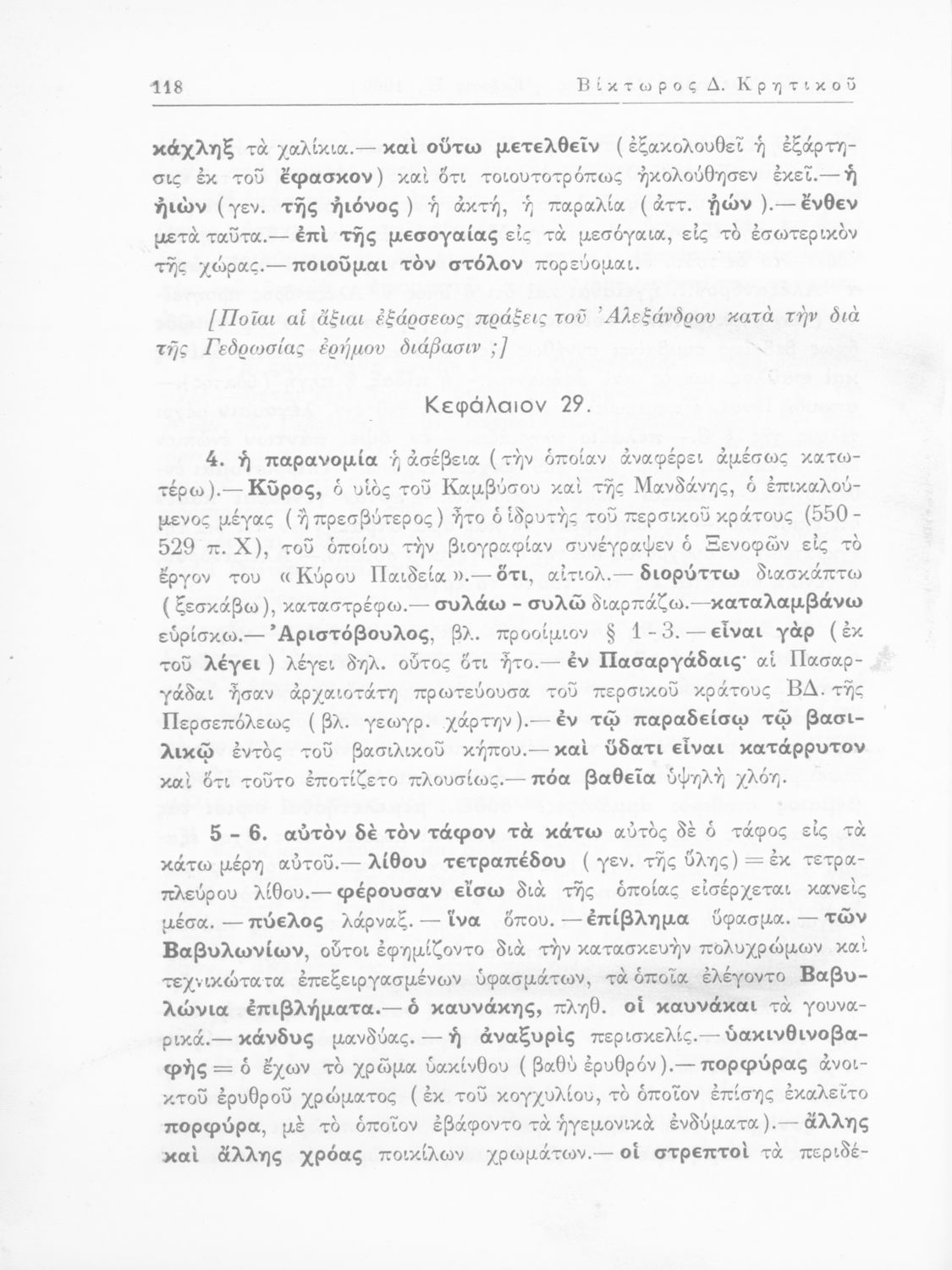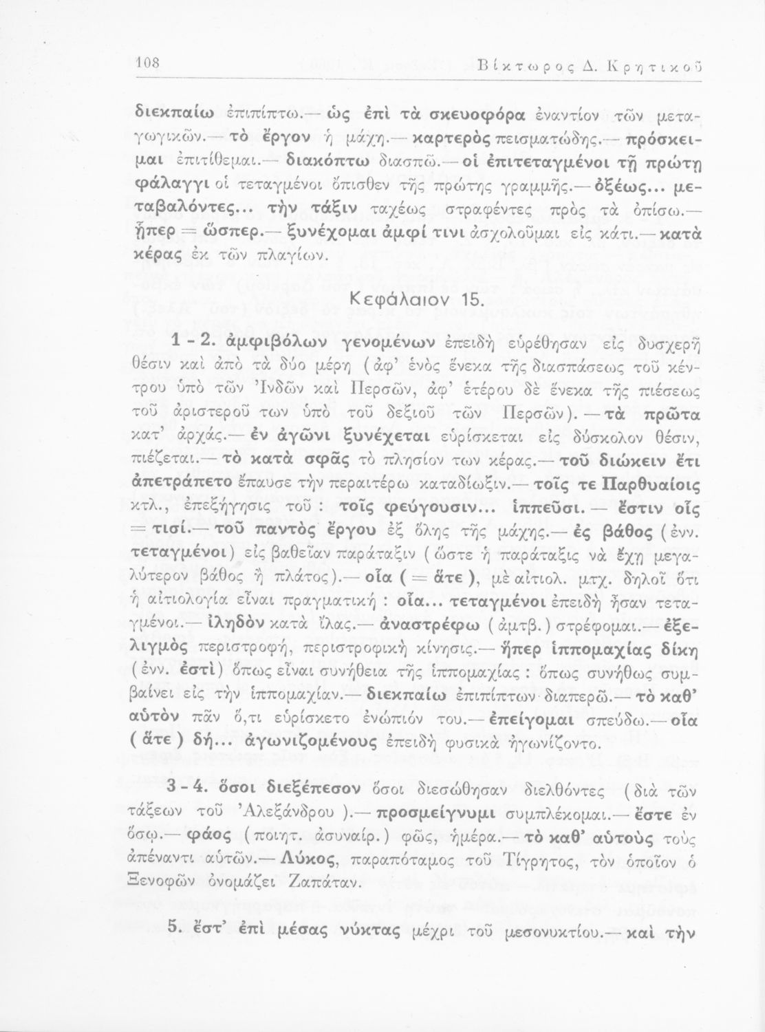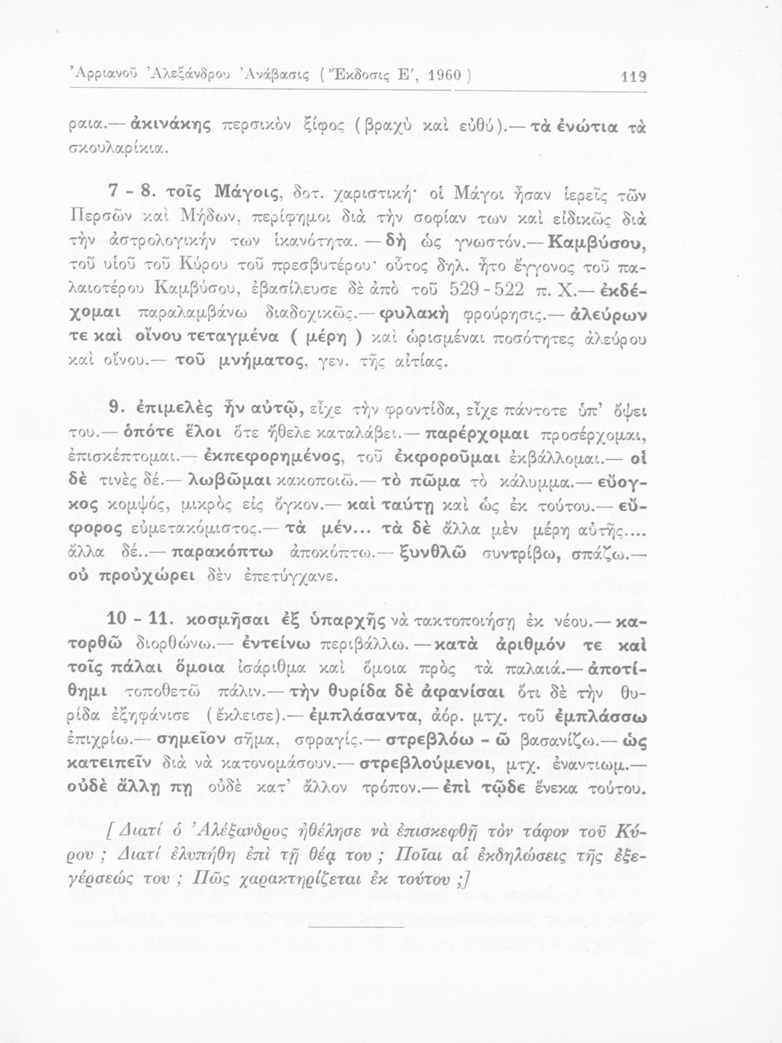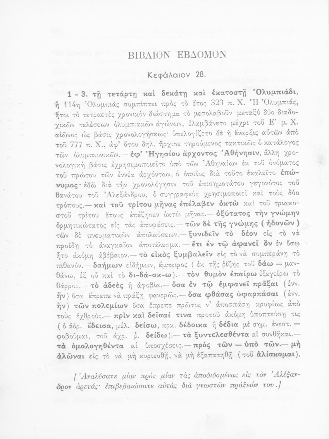 Σχολικό εγχειρίδιο Αρχαίων Ελληνικών Γ΄ Γυμνασίου που περιλαμβάνει αποσπάσματα από το έργο του Αρριανού Αλέξανδρου Ανάβασις και του Ηρόδοτου Ιστορίαι, ερμηνευτικές και λεξιλογικές παρατηρήσεις καθώς και τοπογραφικούς πίνακες και χάρτες..
