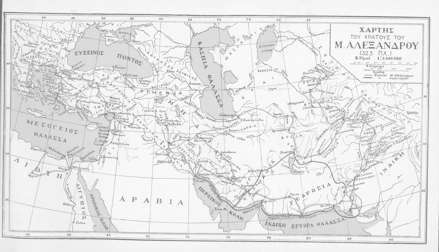 Σχολικό εγχειρίδιο Αρχαίων Ελληνικών Γ΄ Γυμνασίου που περιλαμβάνει αποσπάσματα από το έργο του Αρριανού Αλέξανδρου Ανάβασις και του Ηρόδοτου Ιστορίαι, ερμηνευτικές και λεξιλογικές παρατηρήσεις καθώς και τοπογραφικούς πίνακες και χάρτες..