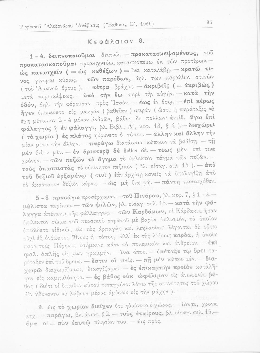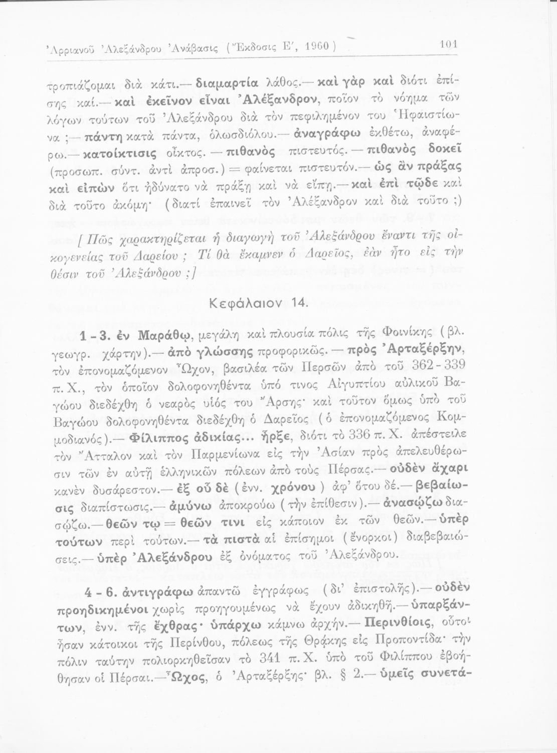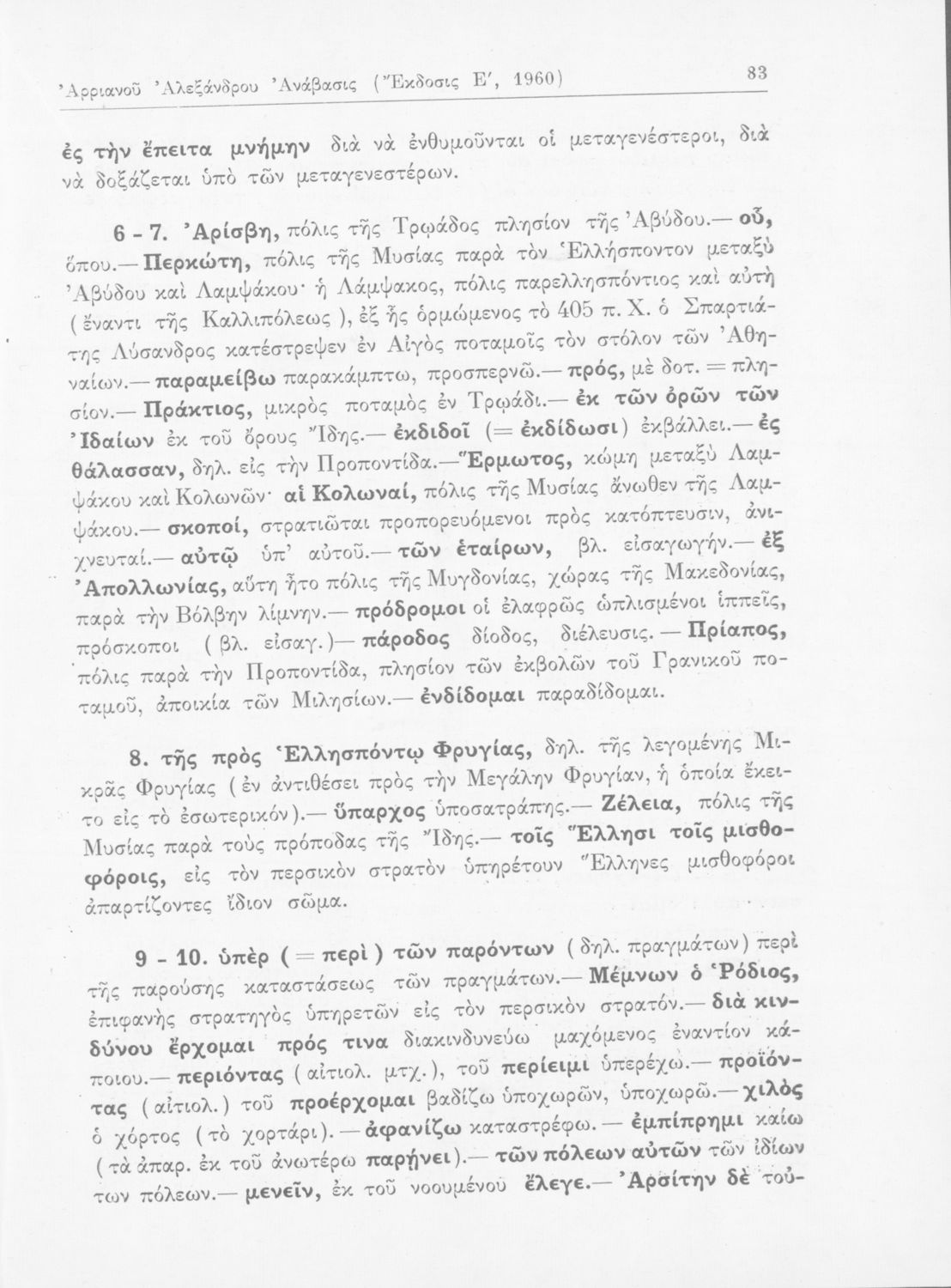 Σχολικό εγχειρίδιο Αρχαίων Ελληνικών Γ΄ Γυμνασίου που περιλαμβάνει αποσπάσματα από το έργο του Αρριανού Αλέξανδρου Ανάβασις και του Ηρόδοτου Ιστορίαι, ερμηνευτικές και λεξιλογικές παρατηρήσεις καθώς και τοπογραφικούς πίνακες και χάρτες..