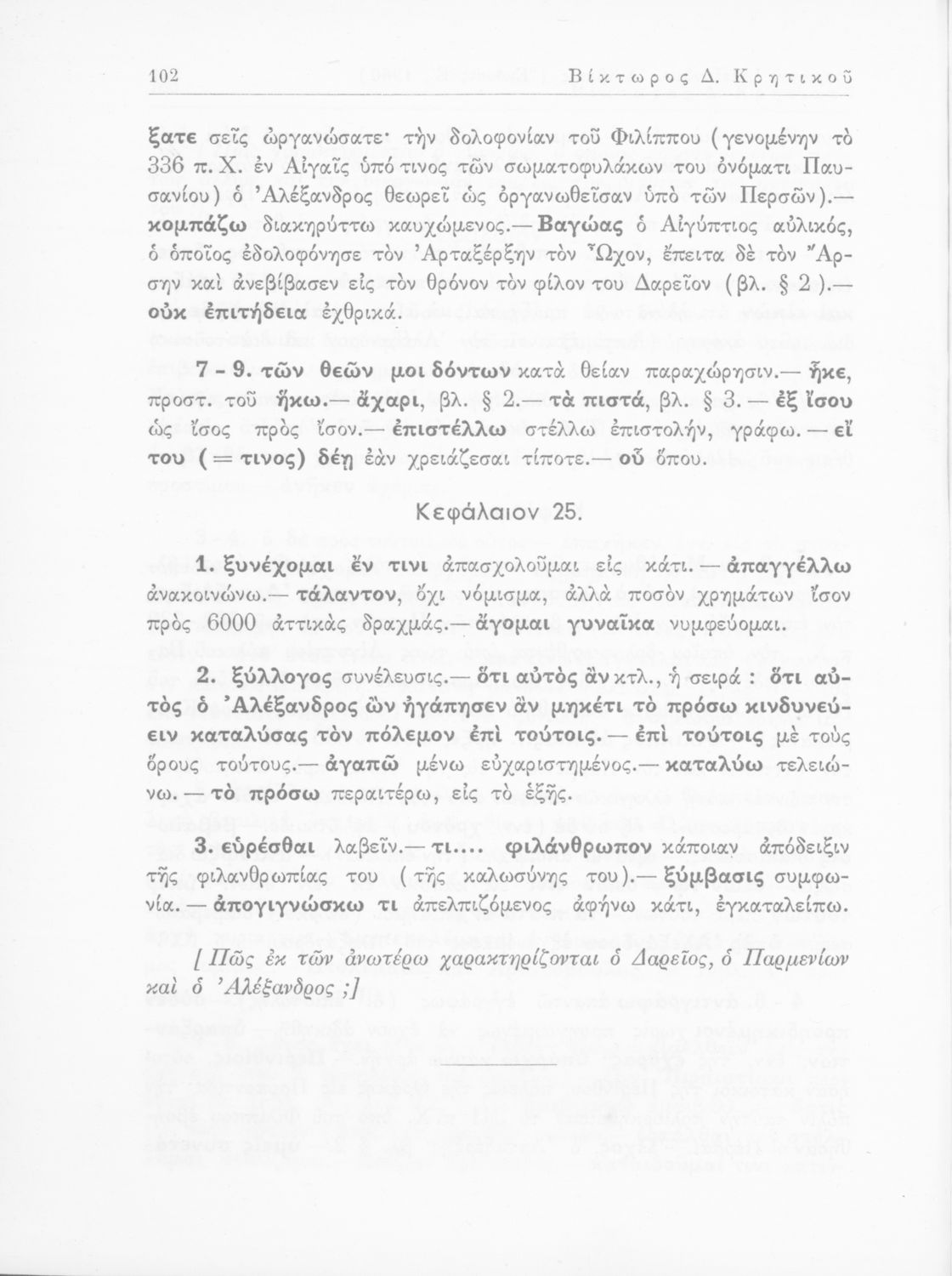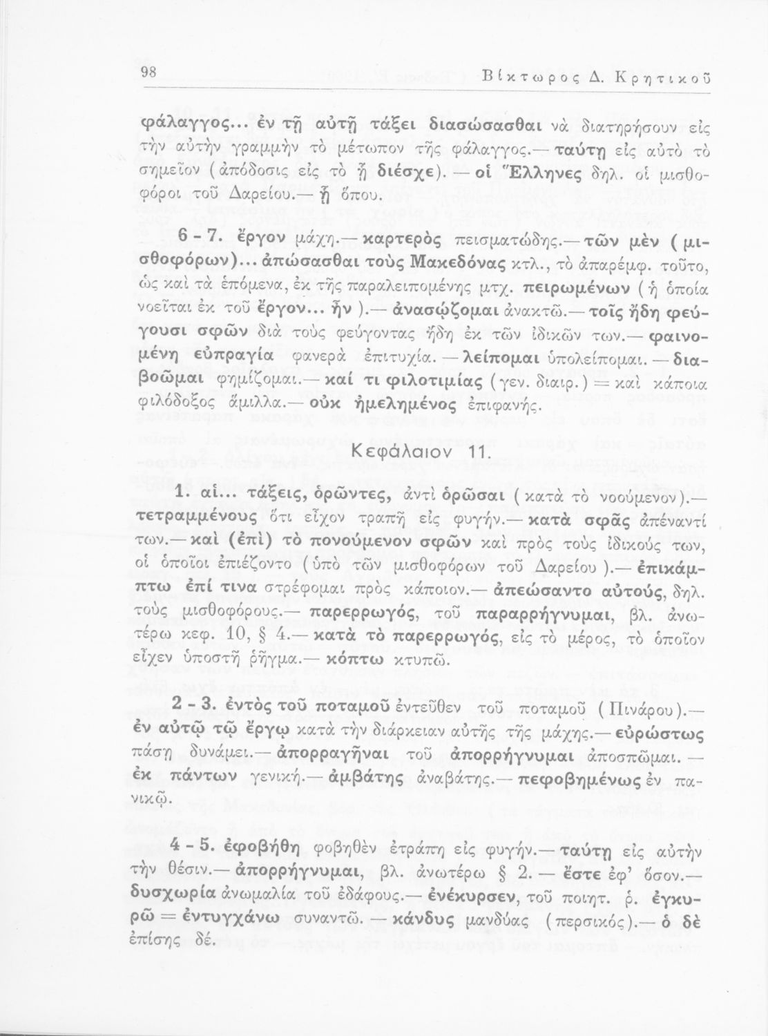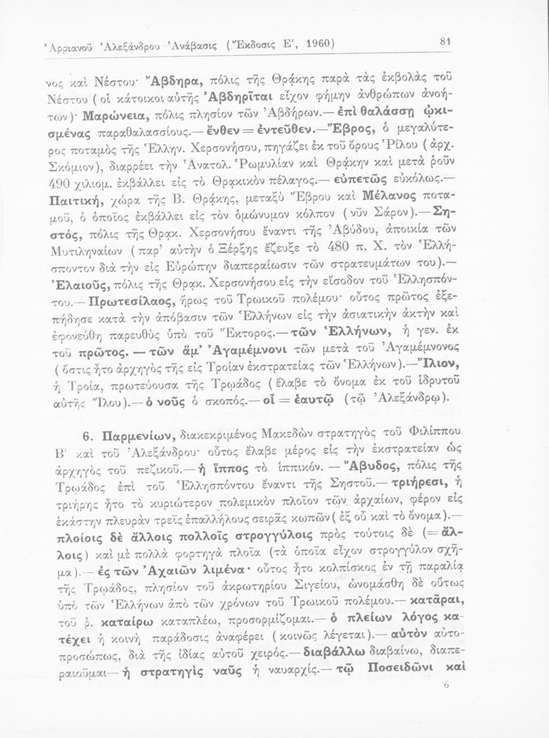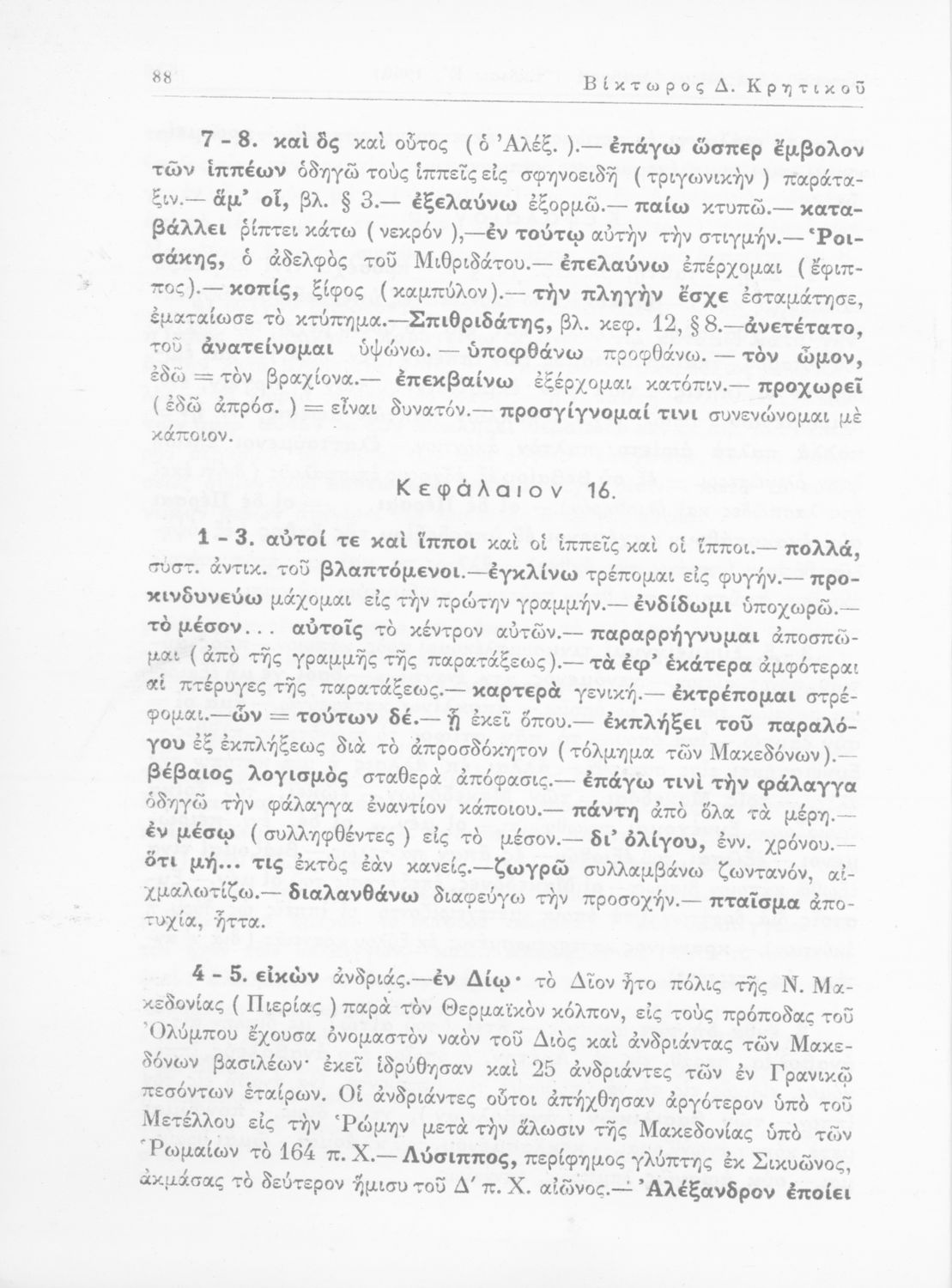 Σχολικό εγχειρίδιο Αρχαίων Ελληνικών Γ΄ Γυμνασίου που περιλαμβάνει αποσπάσματα από το έργο του Αρριανού Αλέξανδρου Ανάβασις και του Ηρόδοτου Ιστορίαι, ερμηνευτικές και λεξιλογικές παρατηρήσεις καθώς και τοπογραφικούς πίνακες και χάρτες..