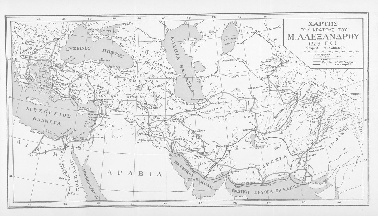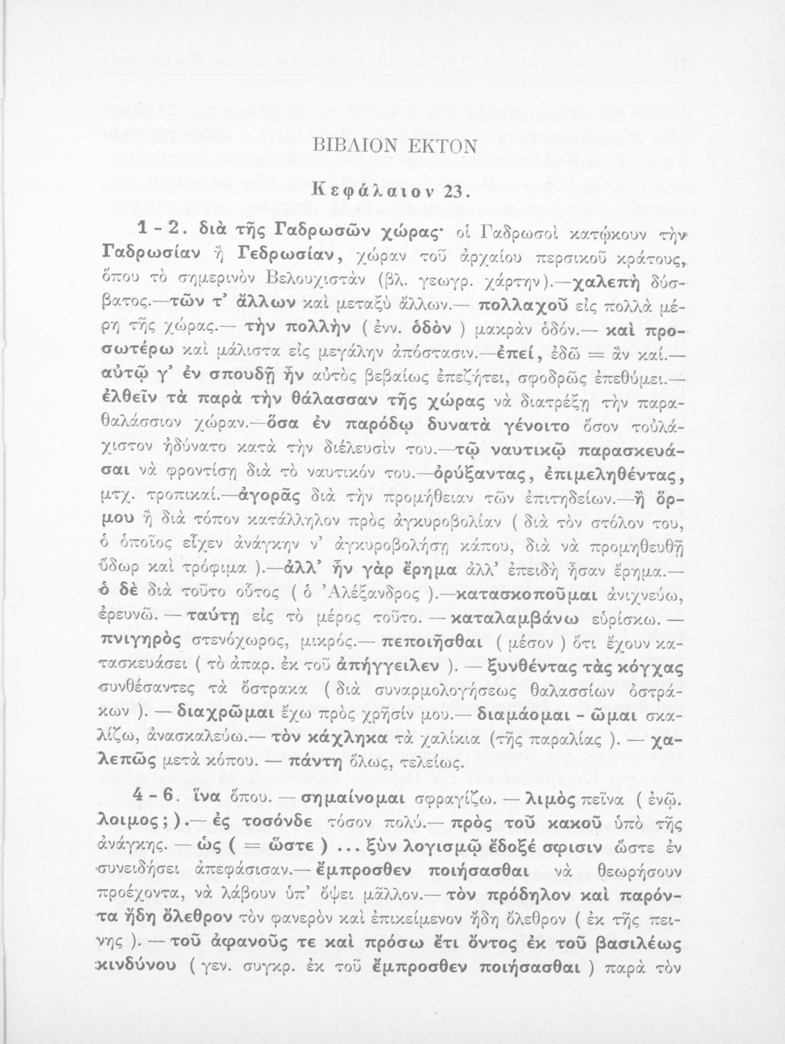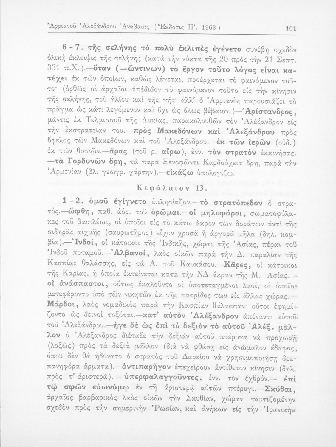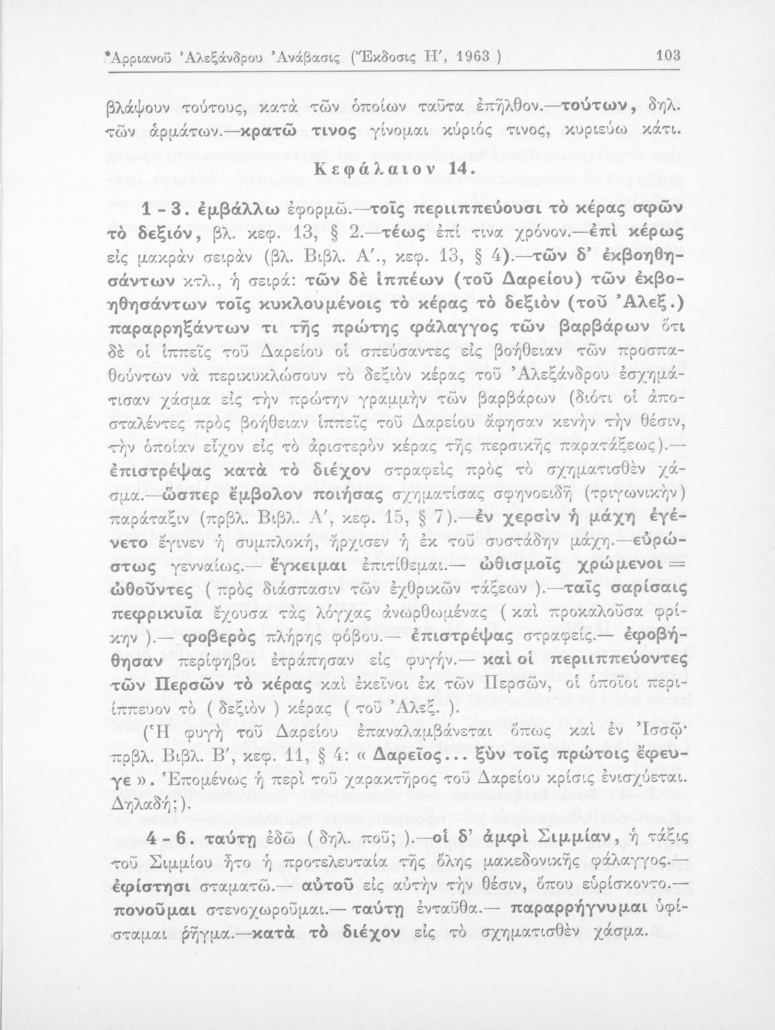 Σχολικό εγχειρίδιο Αρχαίων Ελληνικών που περιλαμβάνει αποσπάσματα από το έργο του Αρριανού Αλέξανδρου Ανάβασις και του Ηρόδοτου Ιστορίαι, ερμηνευτικές και λεξιλογικές παρατηρήσεις καθώς και τοπογραφικούς πίνακες και χάρτες..