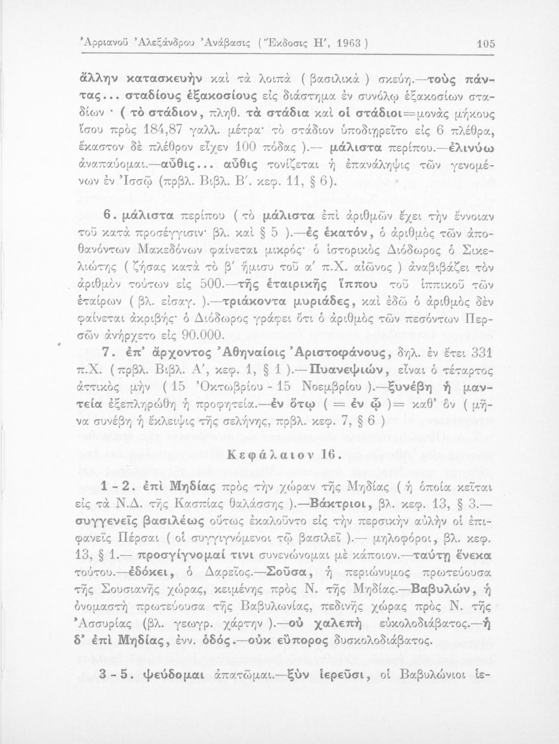 Σχολικό εγχειρίδιο Αρχαίων Ελληνικών που περιλαμβάνει αποσπάσματα από το έργο του Αρριανού Αλέξανδρου Ανάβασις και του Ηρόδοτου Ιστορίαι, ερμηνευτικές και λεξιλογικές παρατηρήσεις καθώς και τοπογραφικούς ...