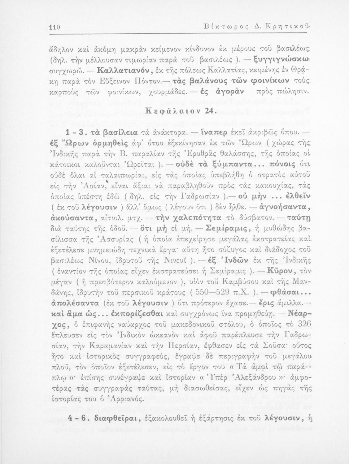 Αρριανός (Lucius Flavius Arrianus), Ηρόδοτος, Βίκτωρος Δ. Κρητικός, Κυριάκος Κοσμάς (σχόλια)