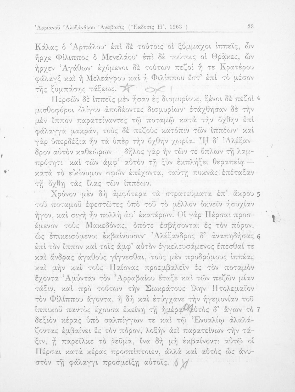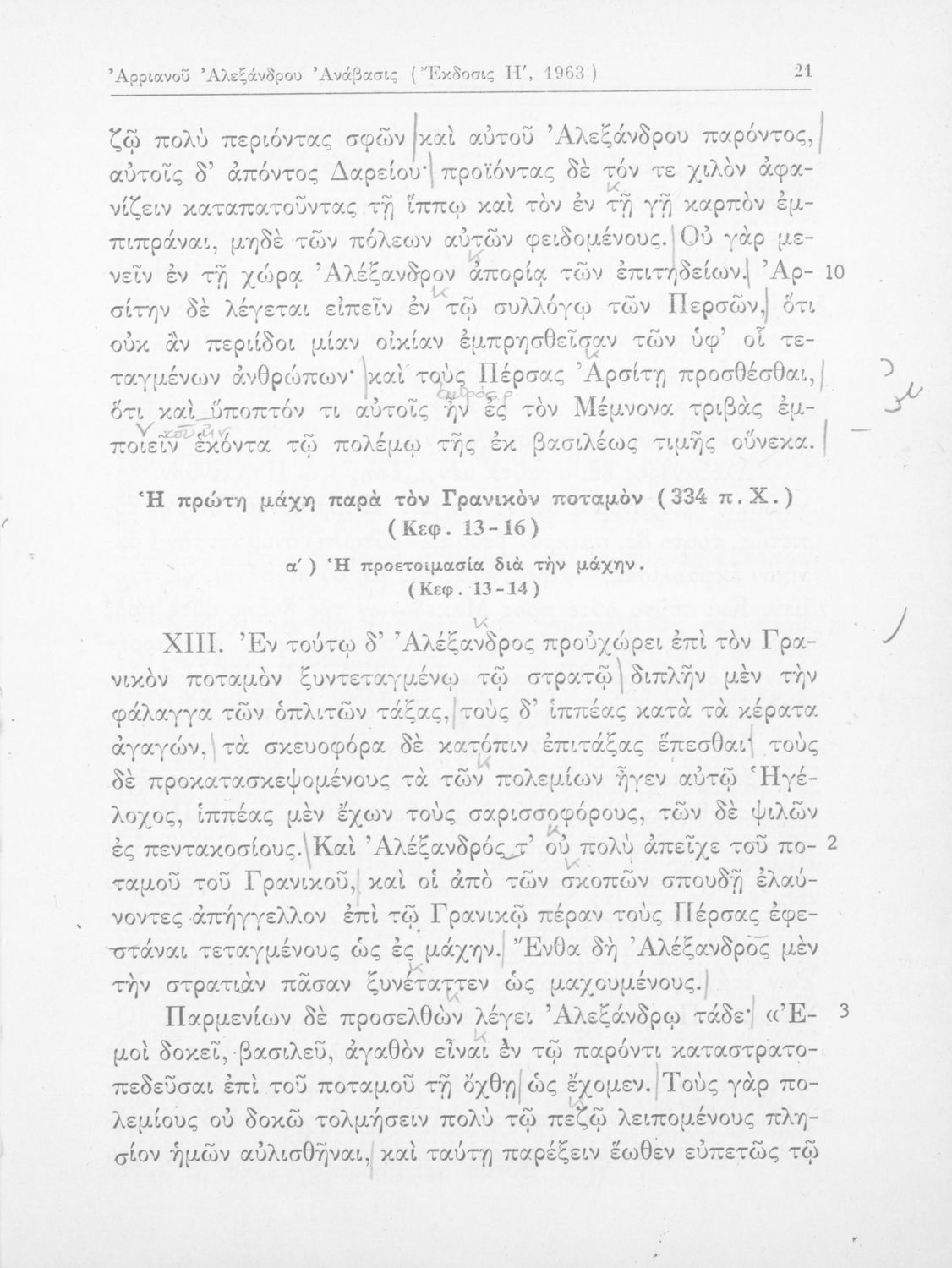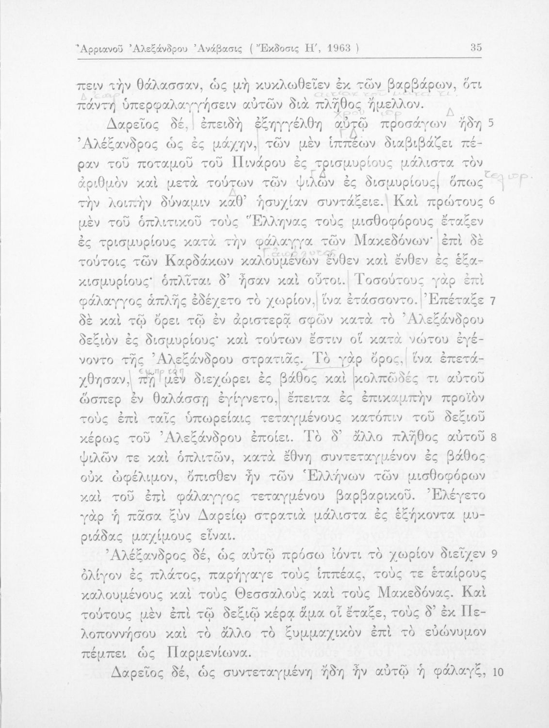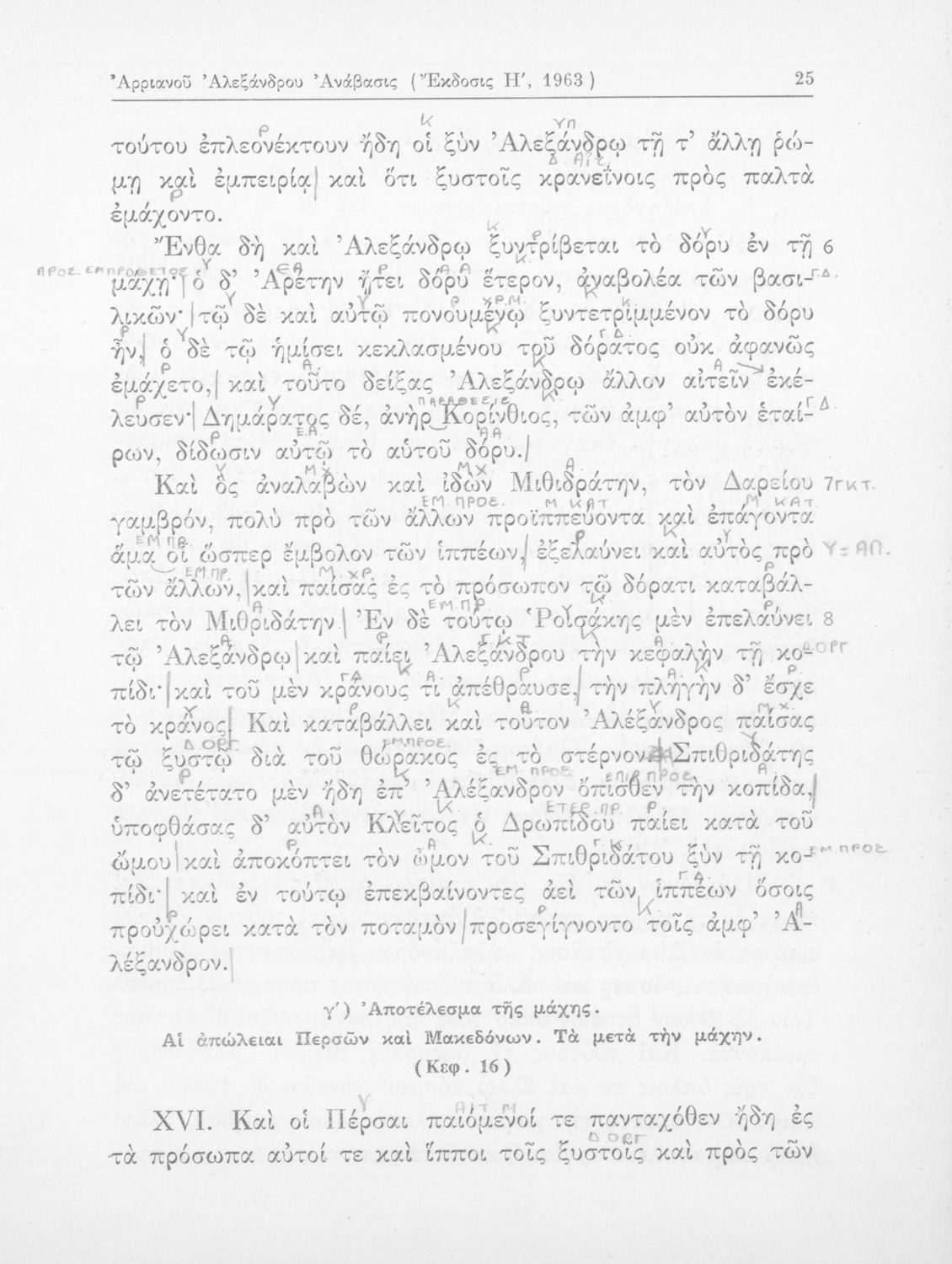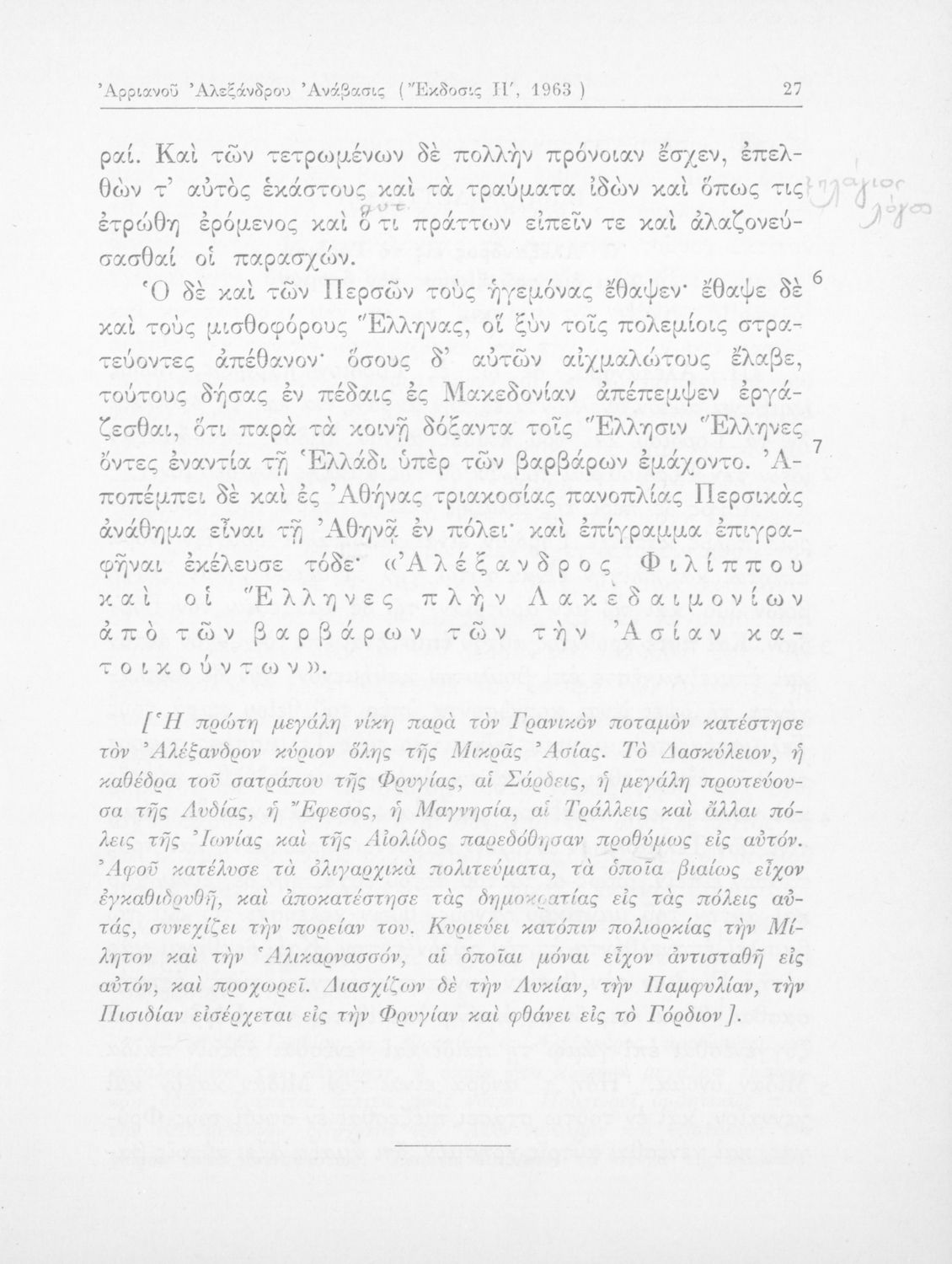 Σχολικό εγχειρίδιο Αρχαίων Ελληνικών που περιλαμβάνει αποσπάσματα από το έργο του Αρριανού Αλέξανδρου Ανάβασις και του Ηρόδοτου Ιστορίαι, ερμηνευτικές και λεξιλογικές παρατηρήσεις καθώς και τοπογραφικούς πίνακες και χάρτες..