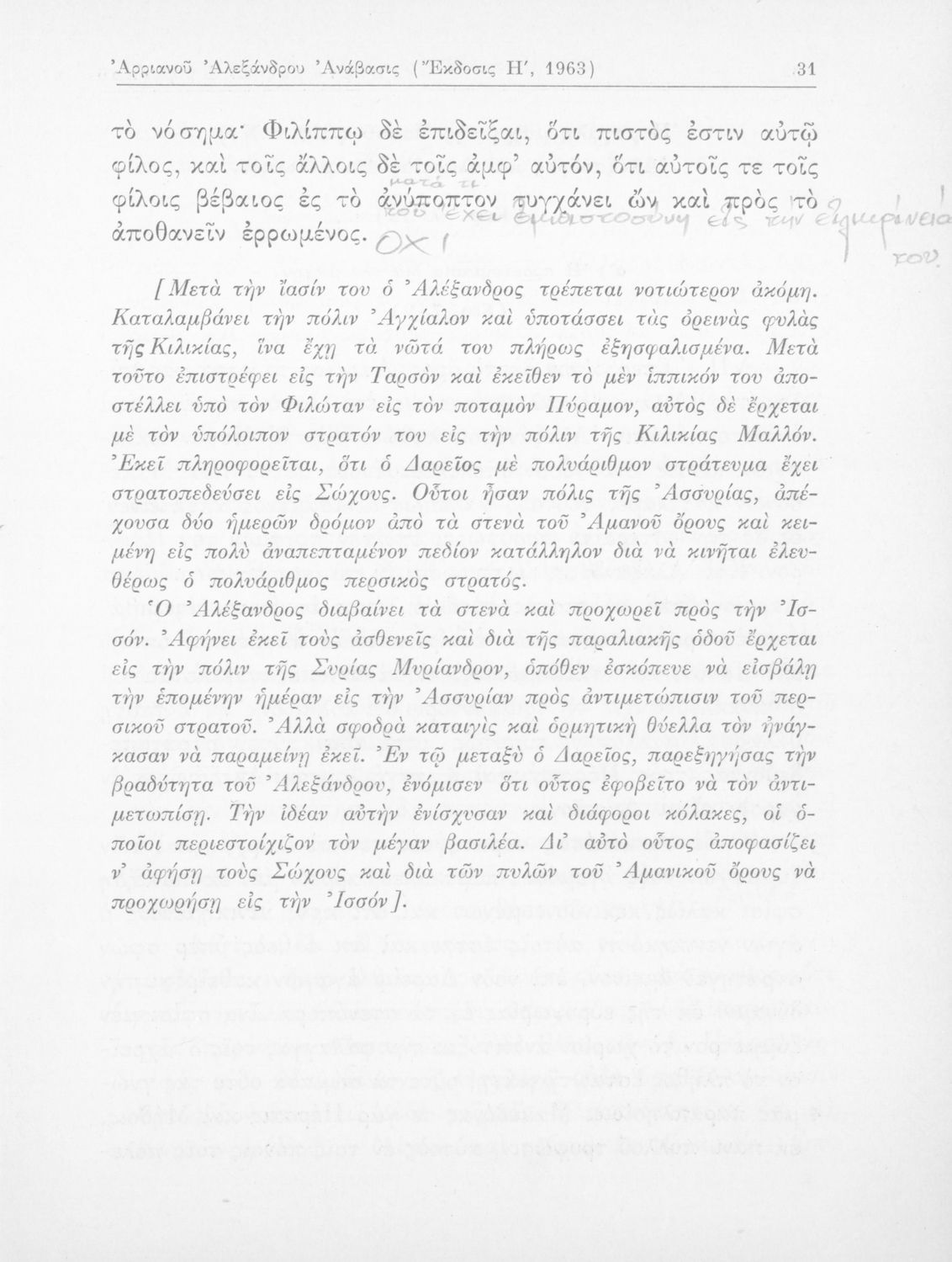520 ## _aΣχολικό εγχειρίδιο Αρχαίων Ελληνικών που περιλαμβάνει αποσπάσματα από το έργο του Αρριανού Αλέξανδρου Ανάβασις και του Ηρόδοτου Ιστορίαι, ερμηνευτικές και λεξιλογικές παρατηρήσεις καθώς και τοπογραφικούς πίνακες και χάρτες..