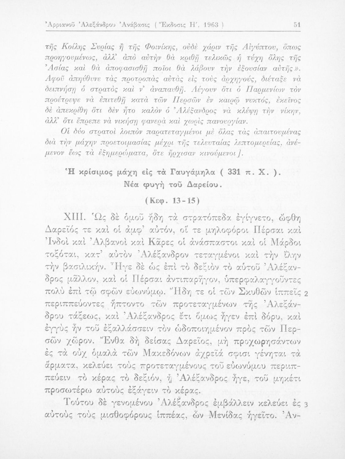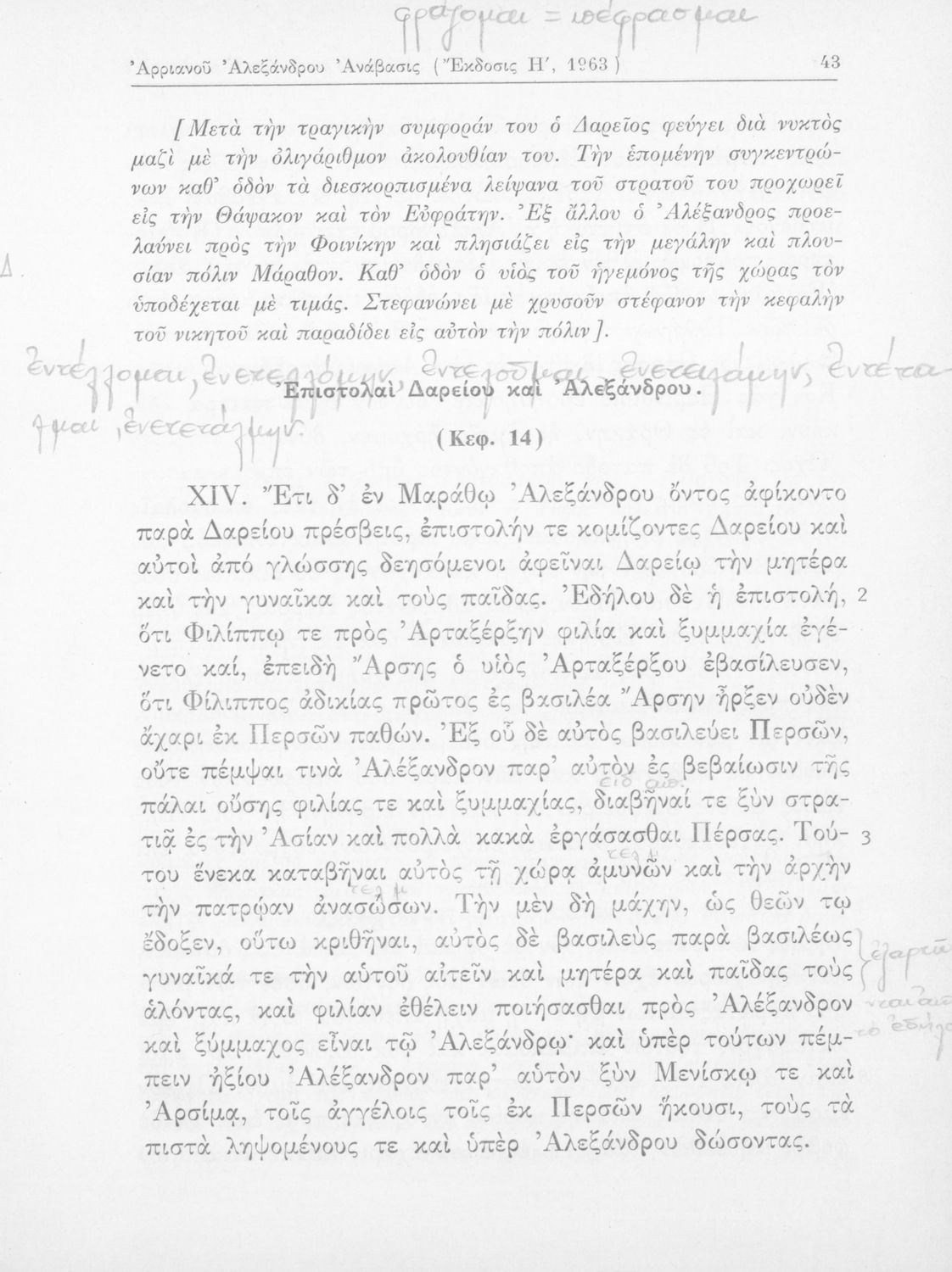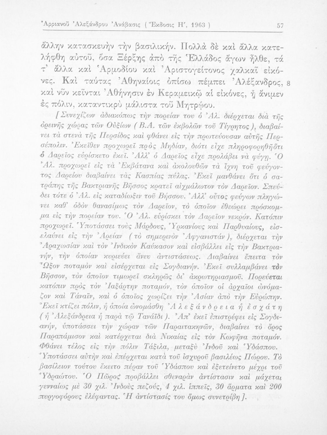 Σχολικό εγχειρίδιο Αρχαίων Ελληνικών που περιλαμβάνει αποσπάσματα από το έργο του Αρριανού Αλέξανδρου Ανάβασις και του Ηρόδοτου Ιστορίαι, ερμηνευτικές και λεξιλογικές παρατηρήσεις καθώς και τοπογραφικούς πίνακες και χάρτες..