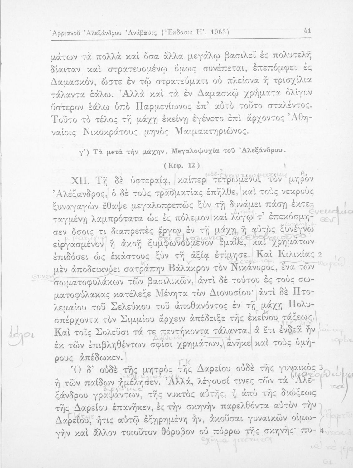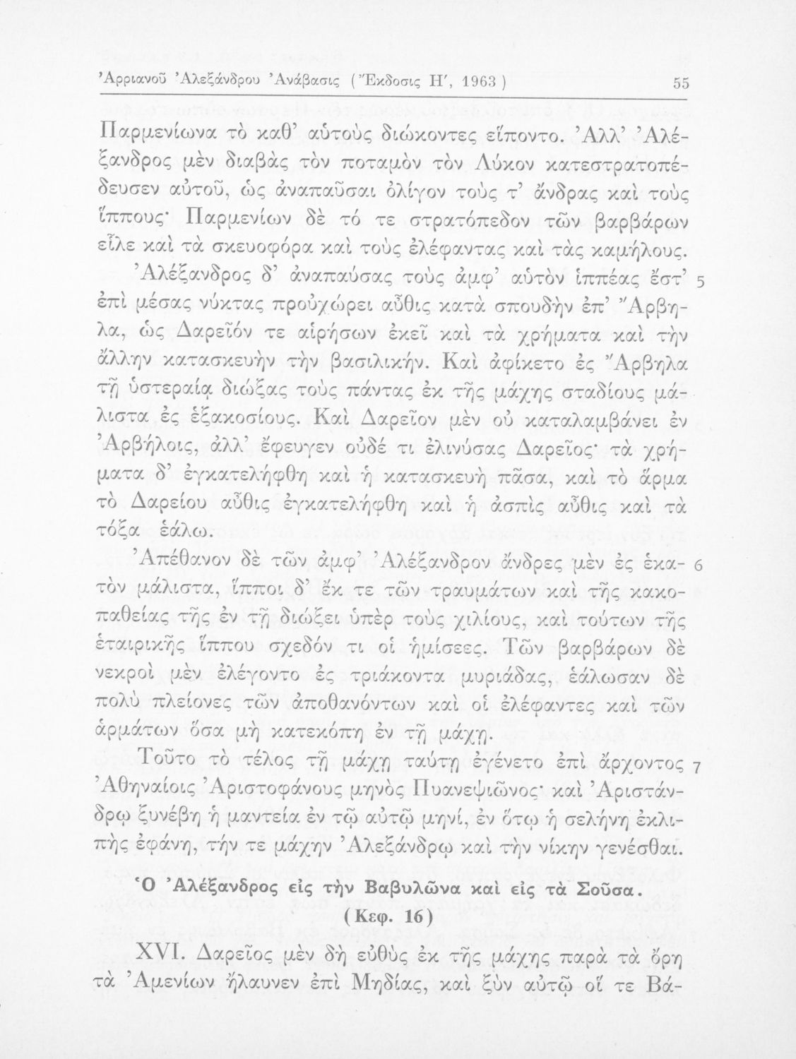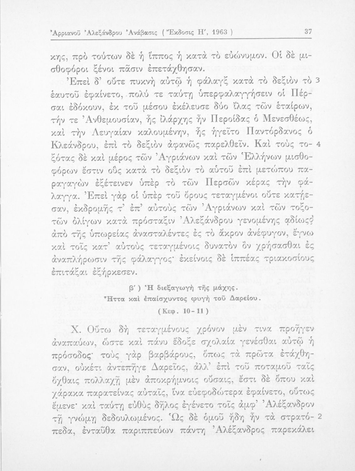 Σχολικό εγχειρίδιο Αρχαίων Ελληνικών που περιλαμβάνει αποσπάσματα από το έργο του Αρριανού Αλέξανδρου Ανάβασις και του Ηρόδοτου Ιστορίαι, ερμηνευτικές και λεξιλογικές παρατηρήσεις καθώς και τοπογραφικούς πίνακες και χάρτες..
