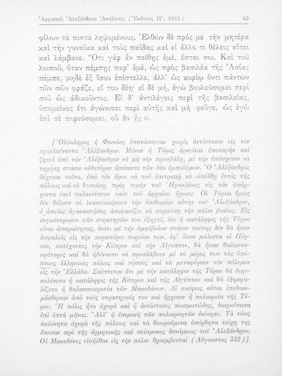 Σχολικό εγχειρίδιο Αρχαίων Ελληνικών που περιλαμβάνει αποσπάσματα από το έργο του Αρριανού Αλέξανδρου Ανάβασις και του Ηρόδοτου Ιστορίαι, ερμηνευτικές και λεξιλογικές παρατηρήσεις καθώς και τοπογραφικούς ...