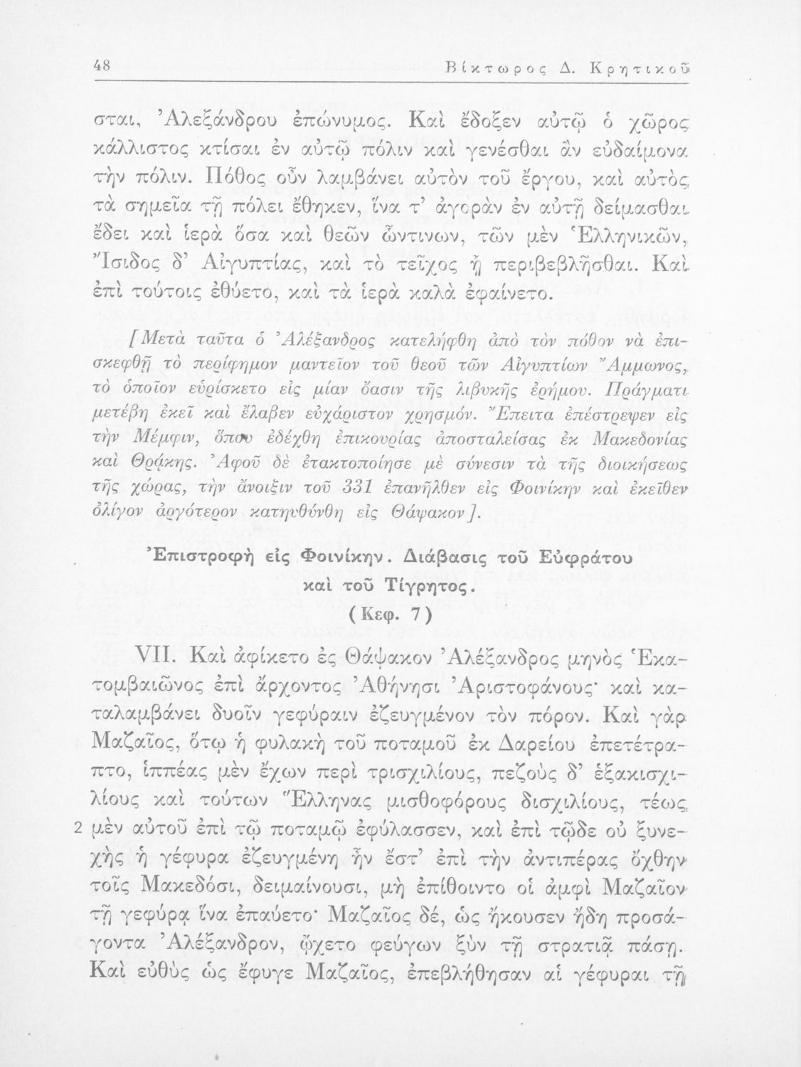 Αρριανός (Lucius Flavius Arrianus), Βίκτωρ Δ. Κρητικός (εισαγωγή, ερμηνευτικές σημειώσεις)