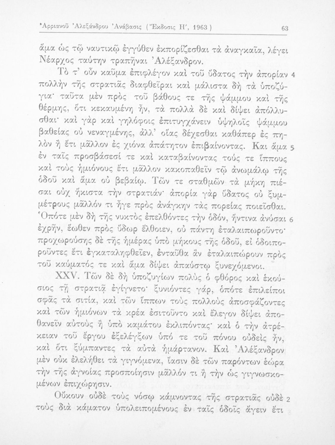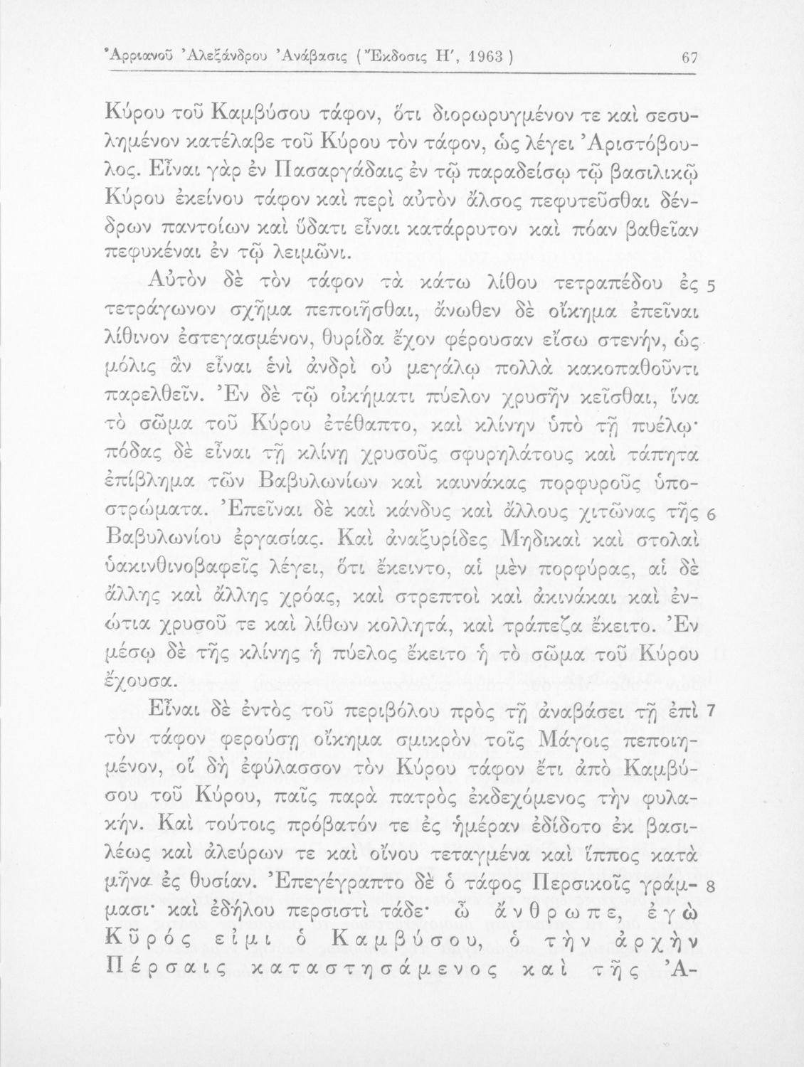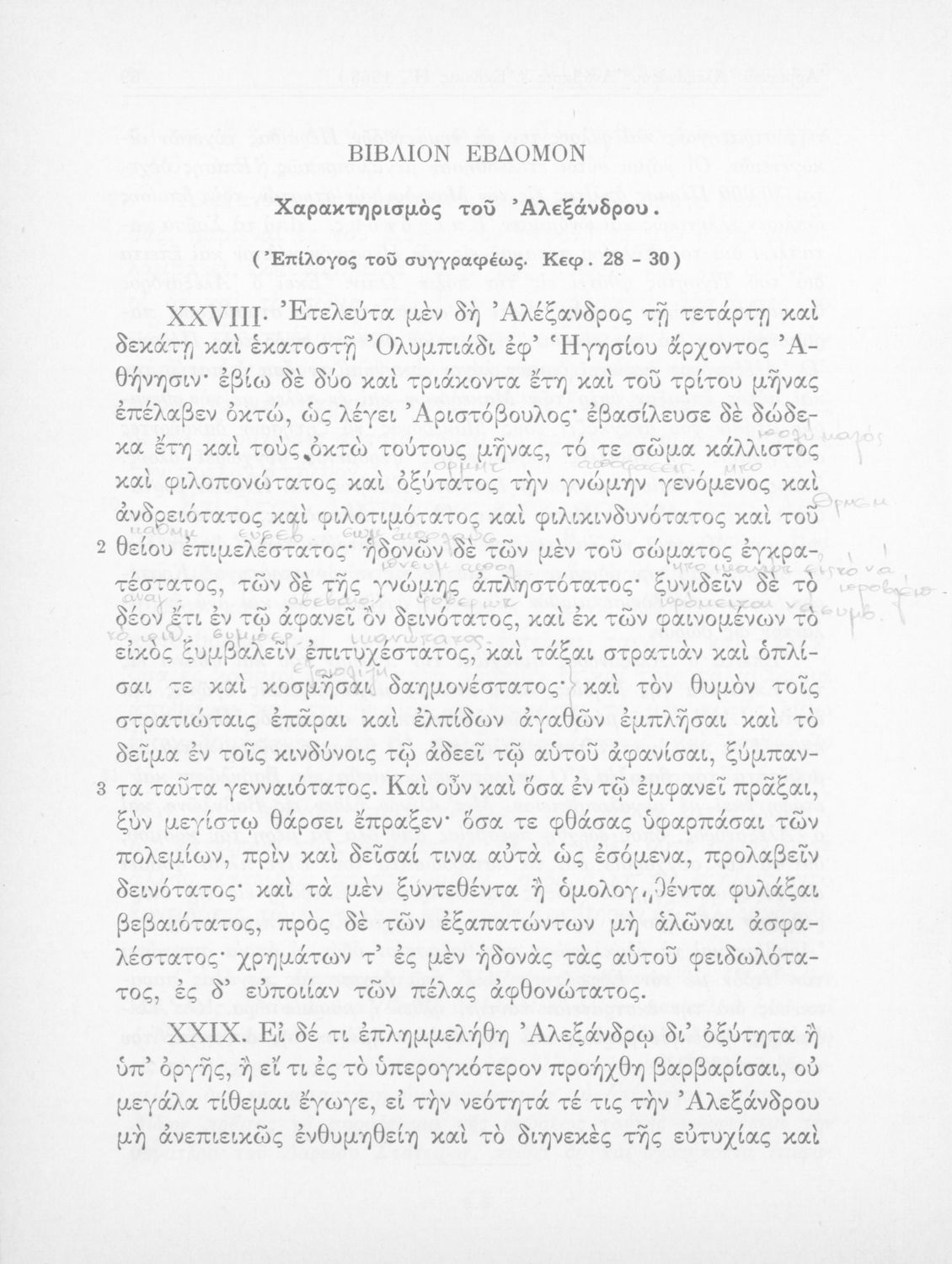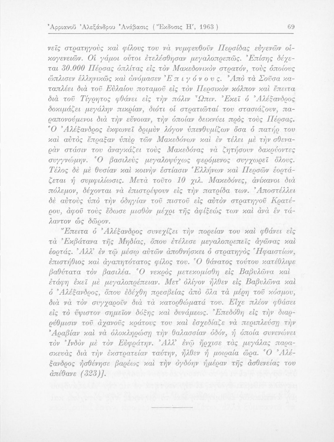 Σχολικό εγχειρίδιο Αρχαίων Ελληνικών που περιλαμβάνει αποσπάσματα από το έργο του Αρριανού Αλέξανδρου Ανάβασις και του Ηρόδοτου Ιστορίαι, ερμηνευτικές και λεξιλογικές παρατηρήσεις καθώς και τοπογραφικούς πίνακες και χάρτες..