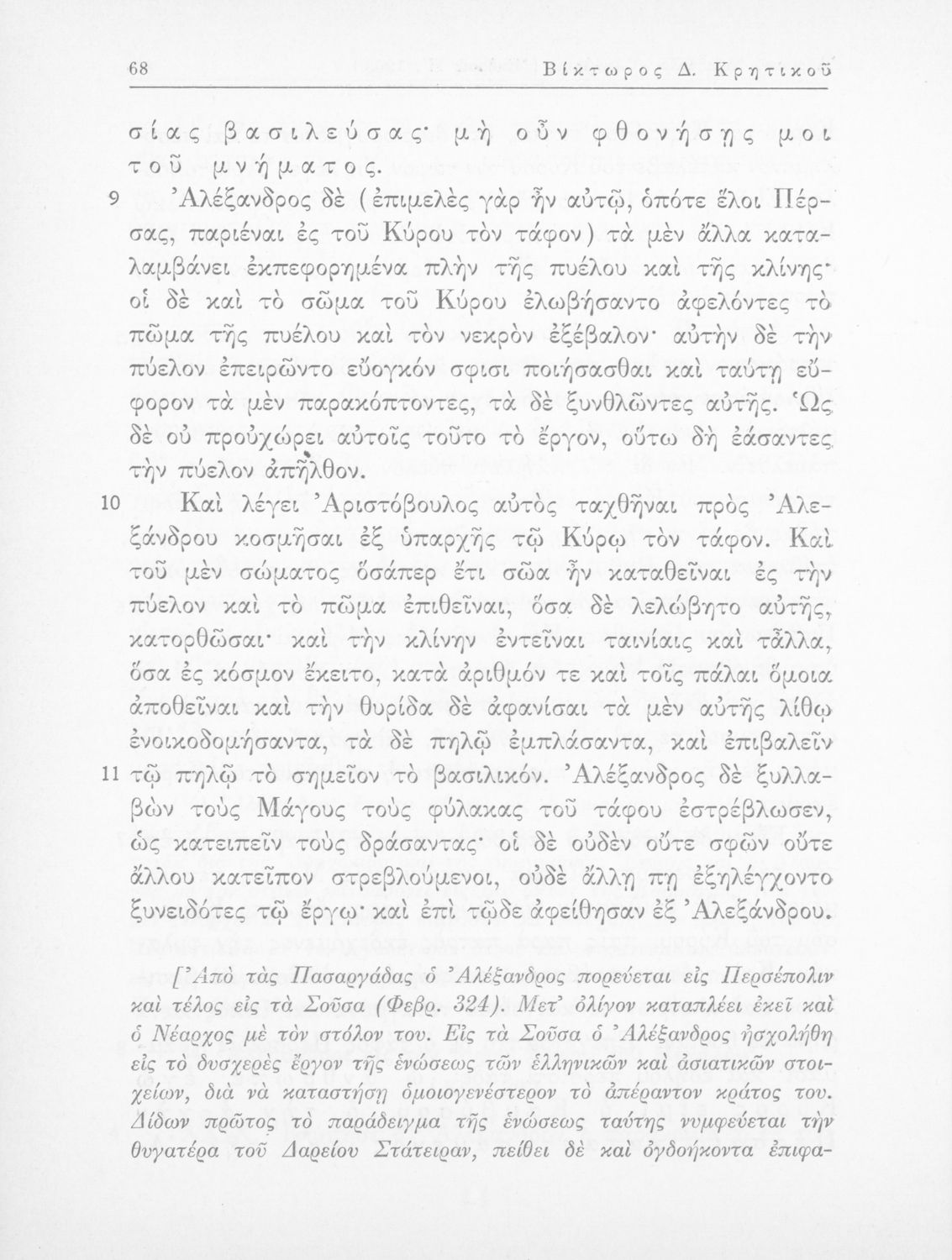 Αρριανός (Lucius Flavius Arrianus), Ηρόδοτος, Βίκτωρος Δ. Κρητικός, Κυριάκος Κοσμάς (σχόλια)